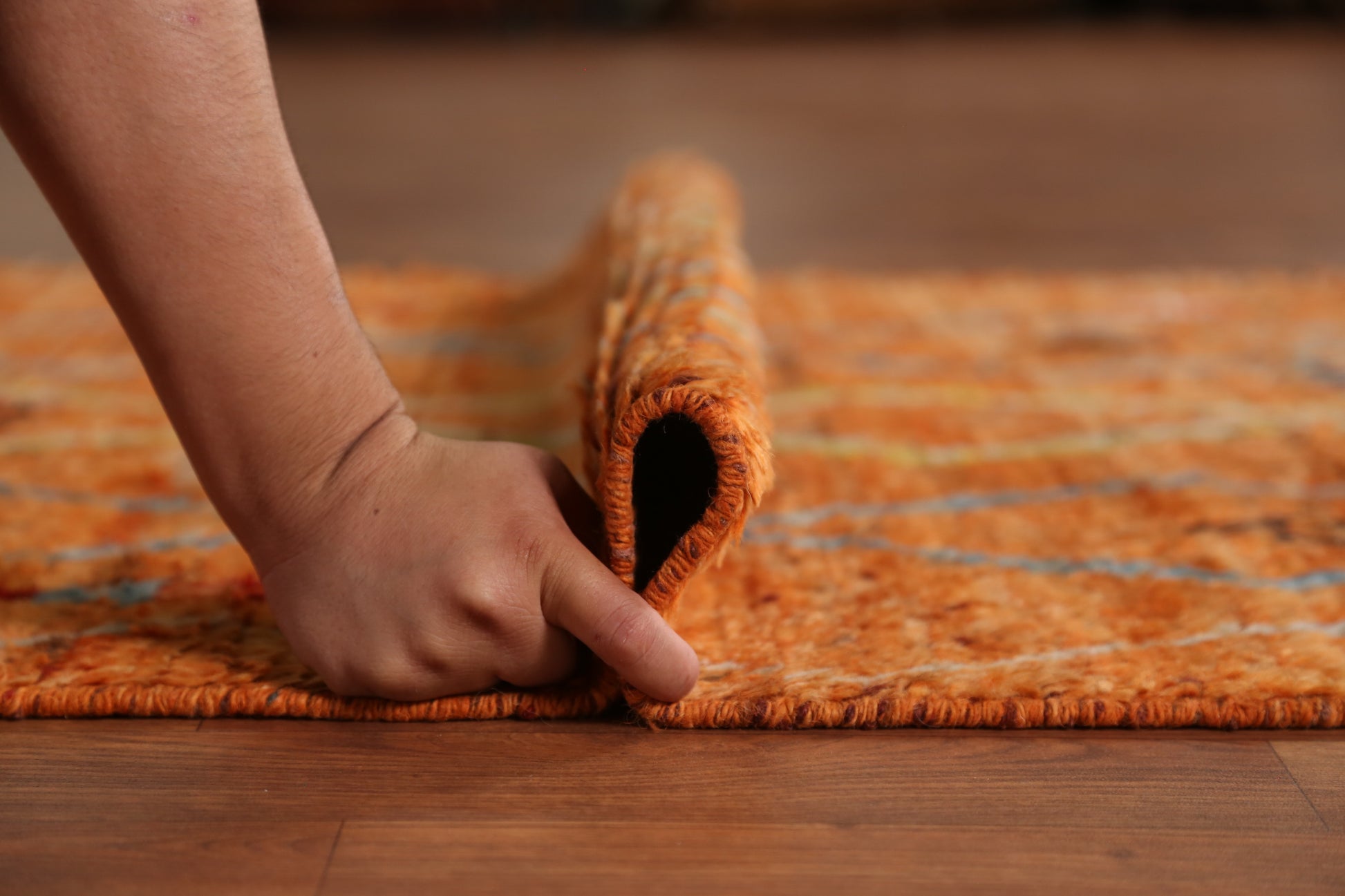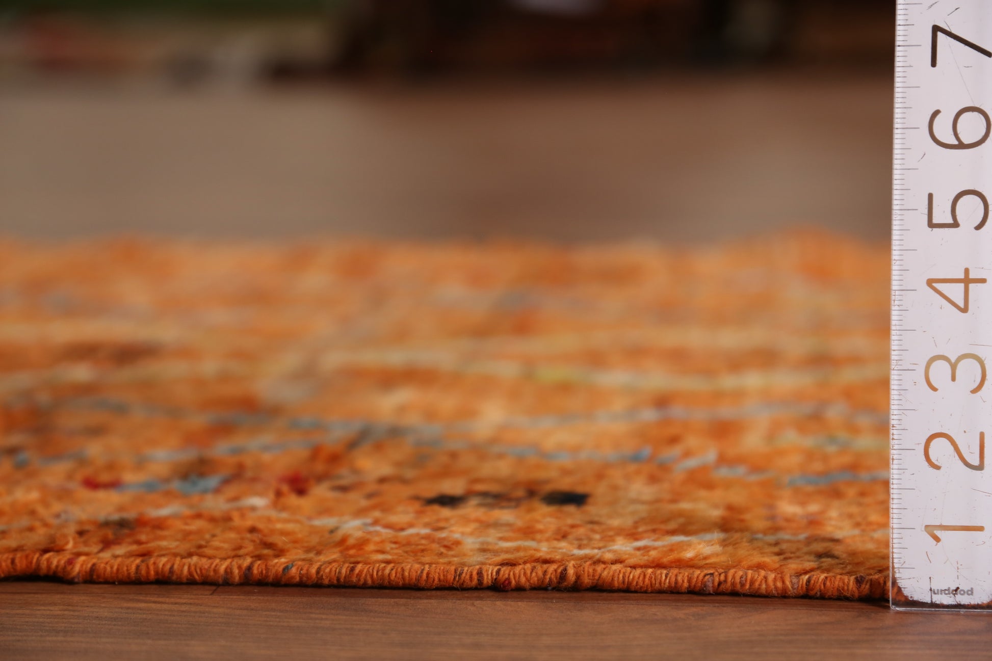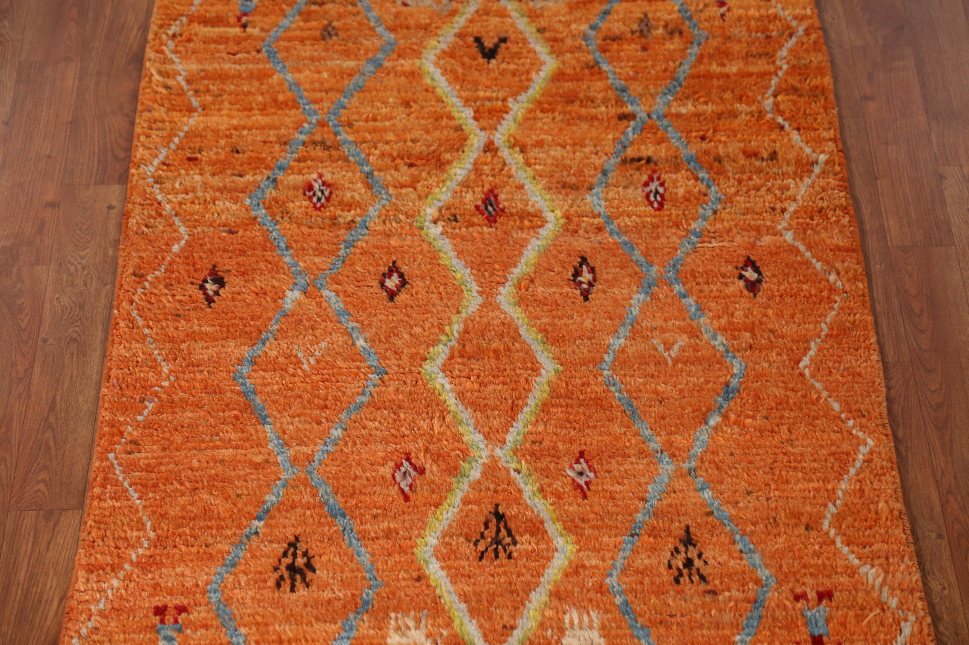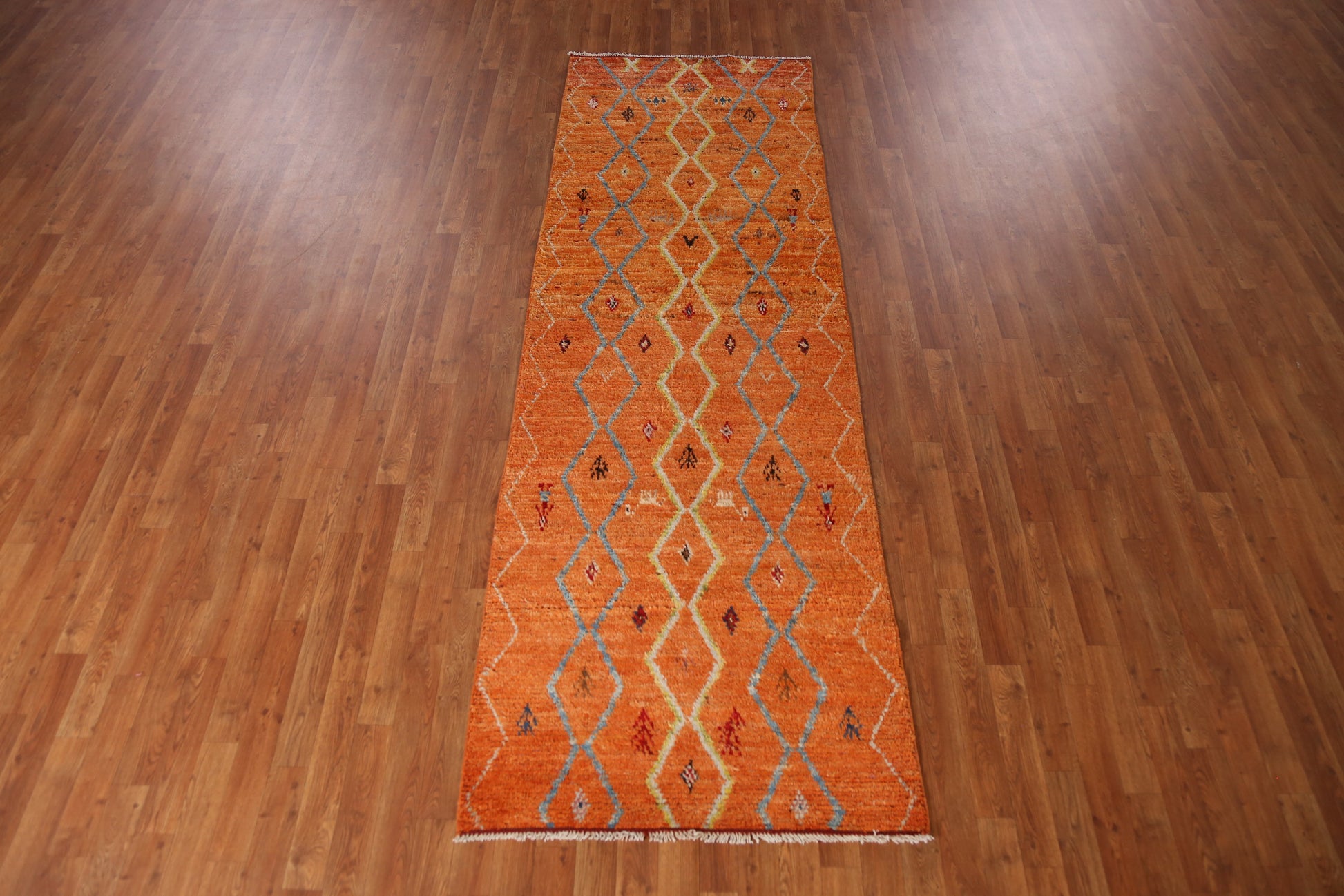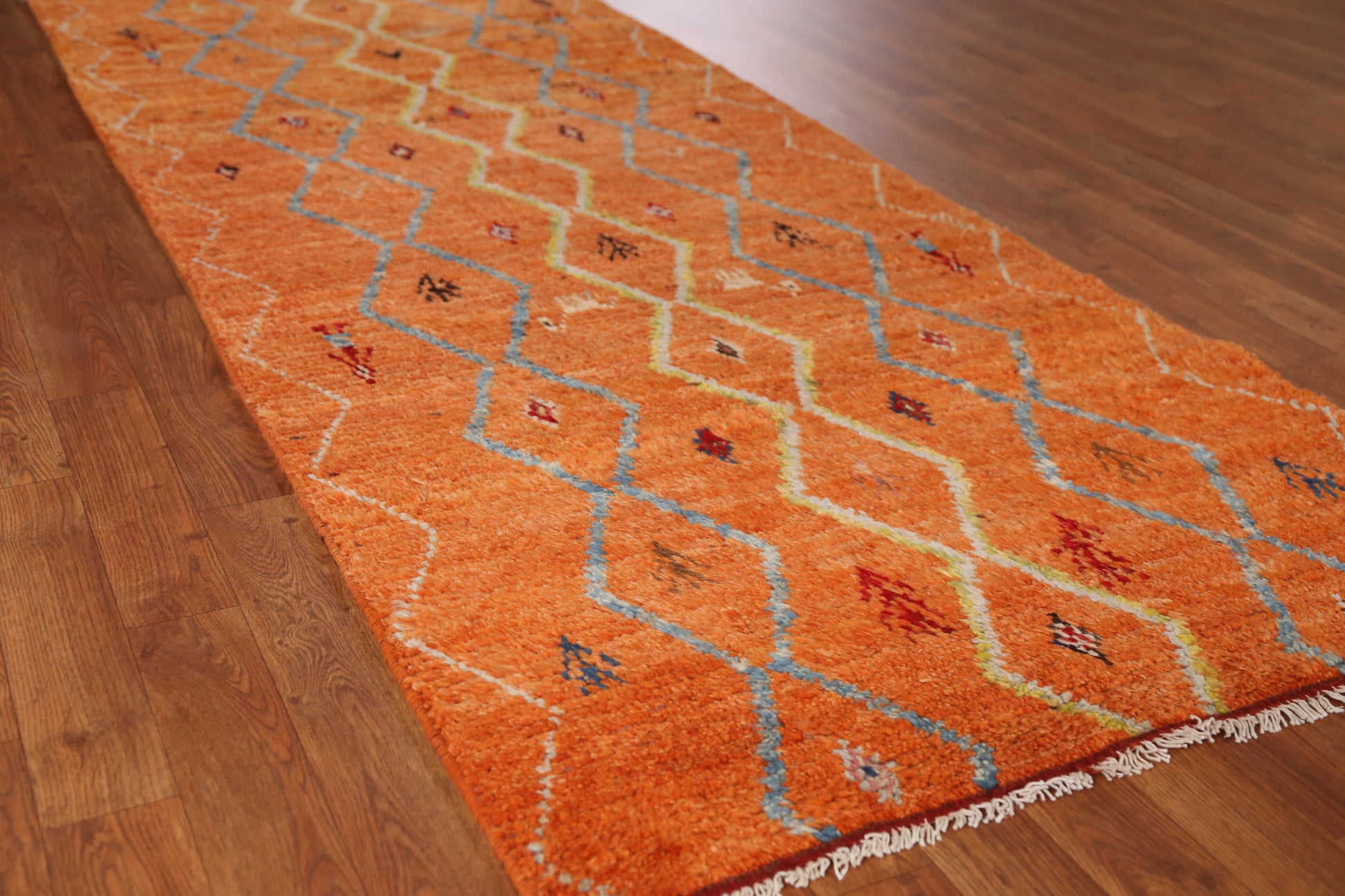 Orange Wool Moroccan Oriental Runner Rug 3x10