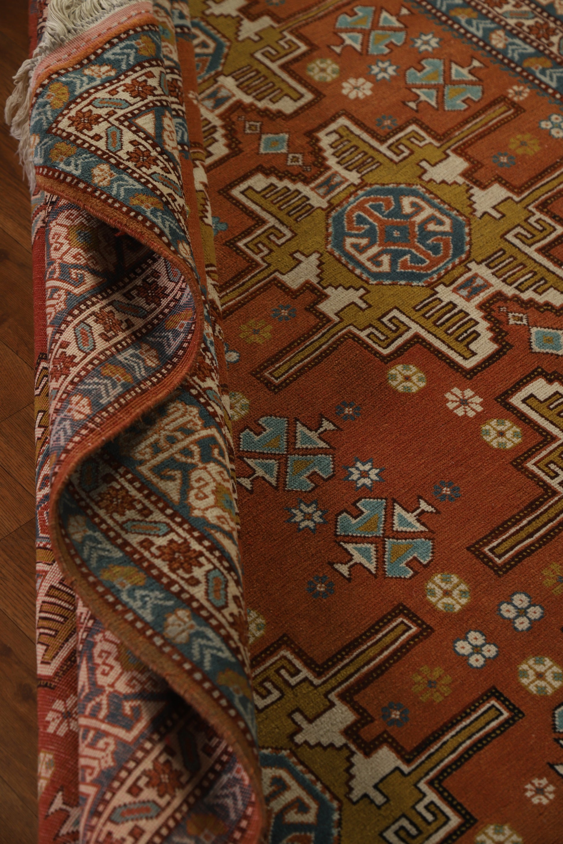 A Beautiful Genuine Persia ( Persia ) Sumak rug is Hand Knotted by skillful weavers in Persia ( Persia ) with 100% Wool Material. This rug is in Excellent condition. dimensions are 7' 6'' X 4' 10'' in foot and 229 X 147 in centimeter. the primary color is Oranges & Rust.