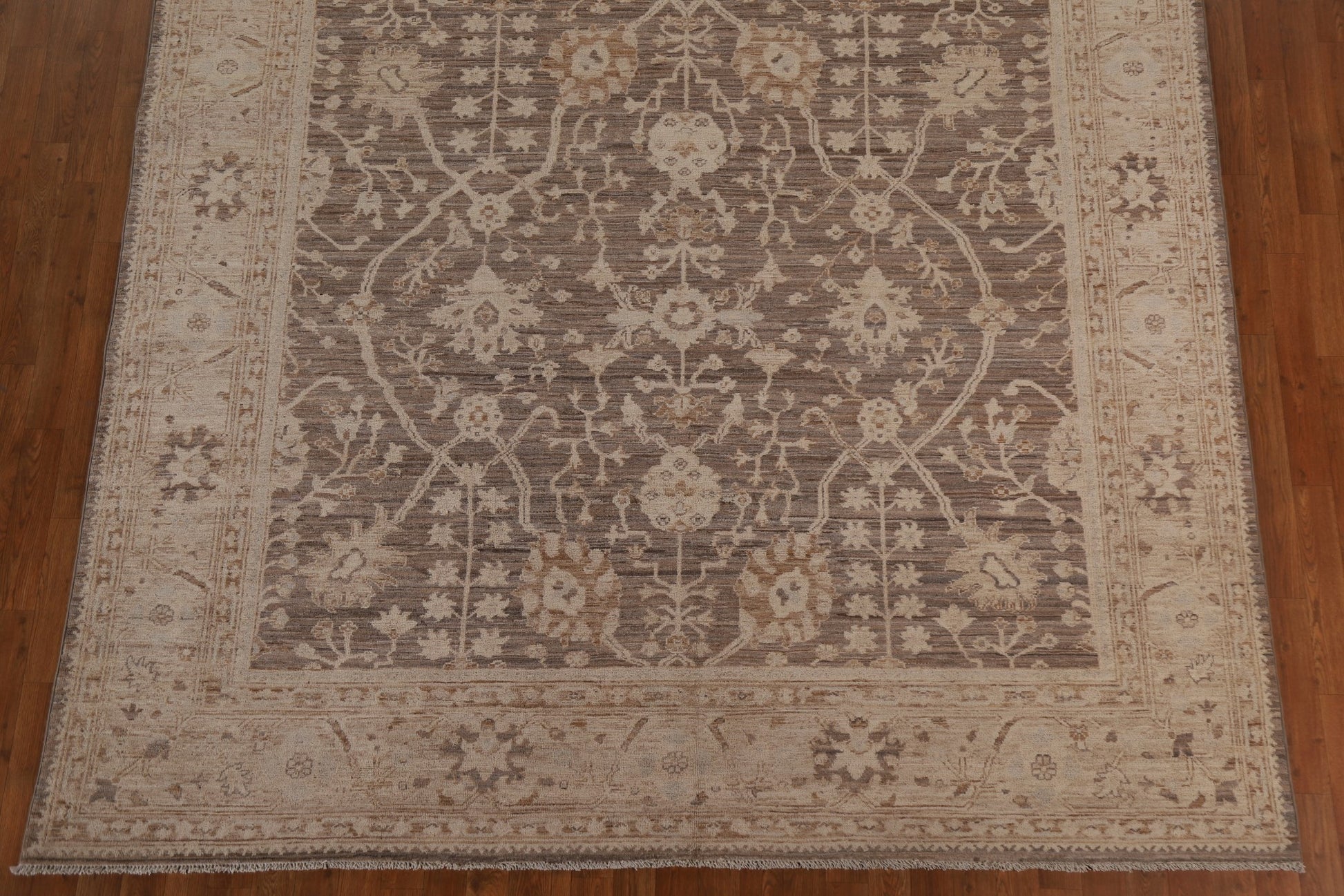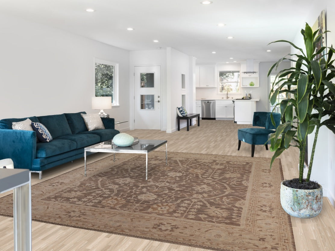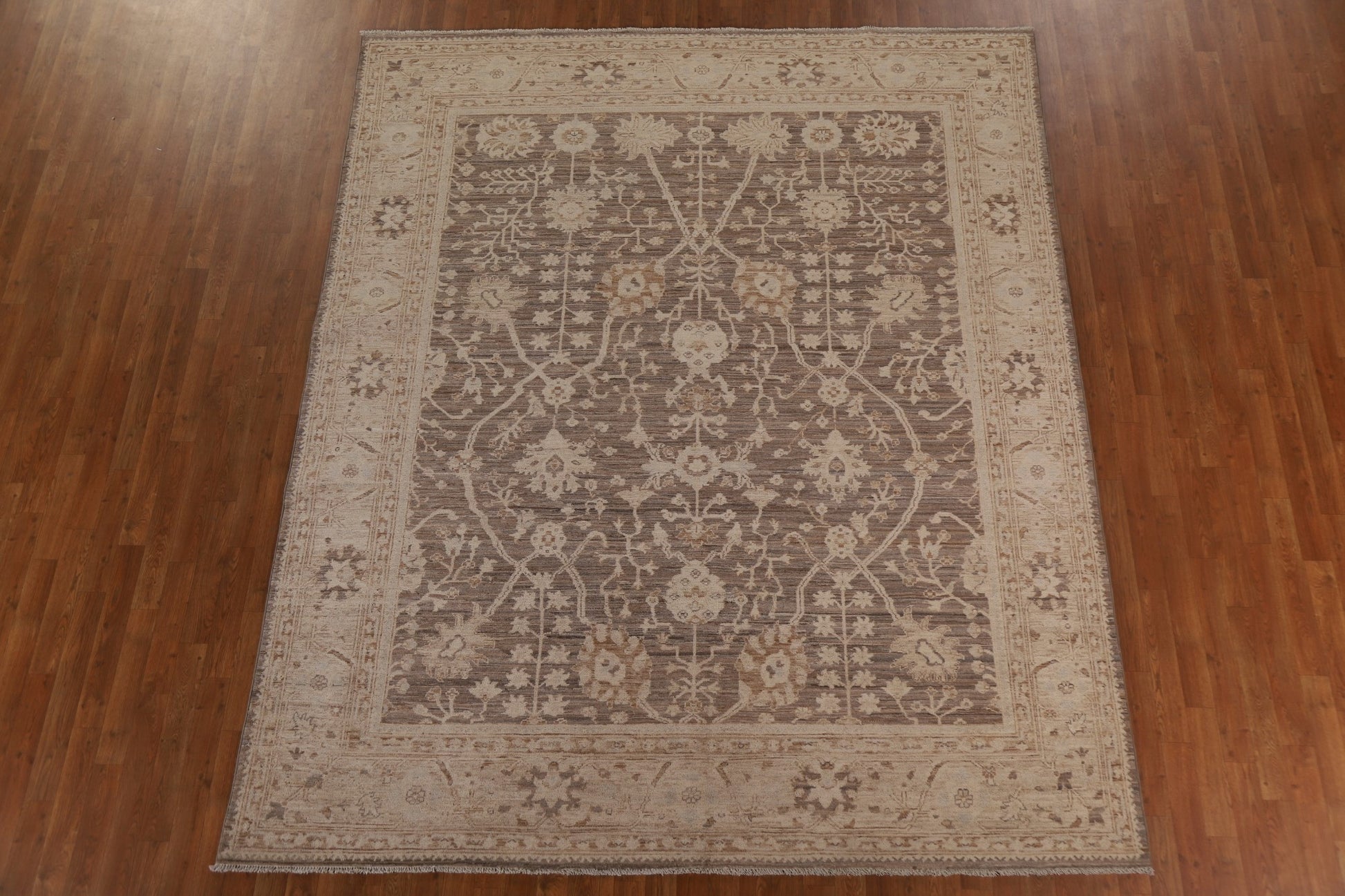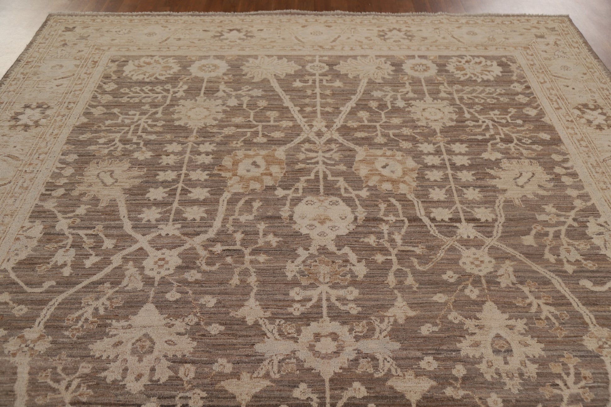 A Beautiful Genuine Turkey Oushak rug is Hand Knotted by skillful weavers in Turkey with 100% Wool Material. This rug is in New, First Quality condition. dimensions are 9' 9'' X 8' 2'' in foot and 297 X 249 in centimeter. the primary color is Brown.