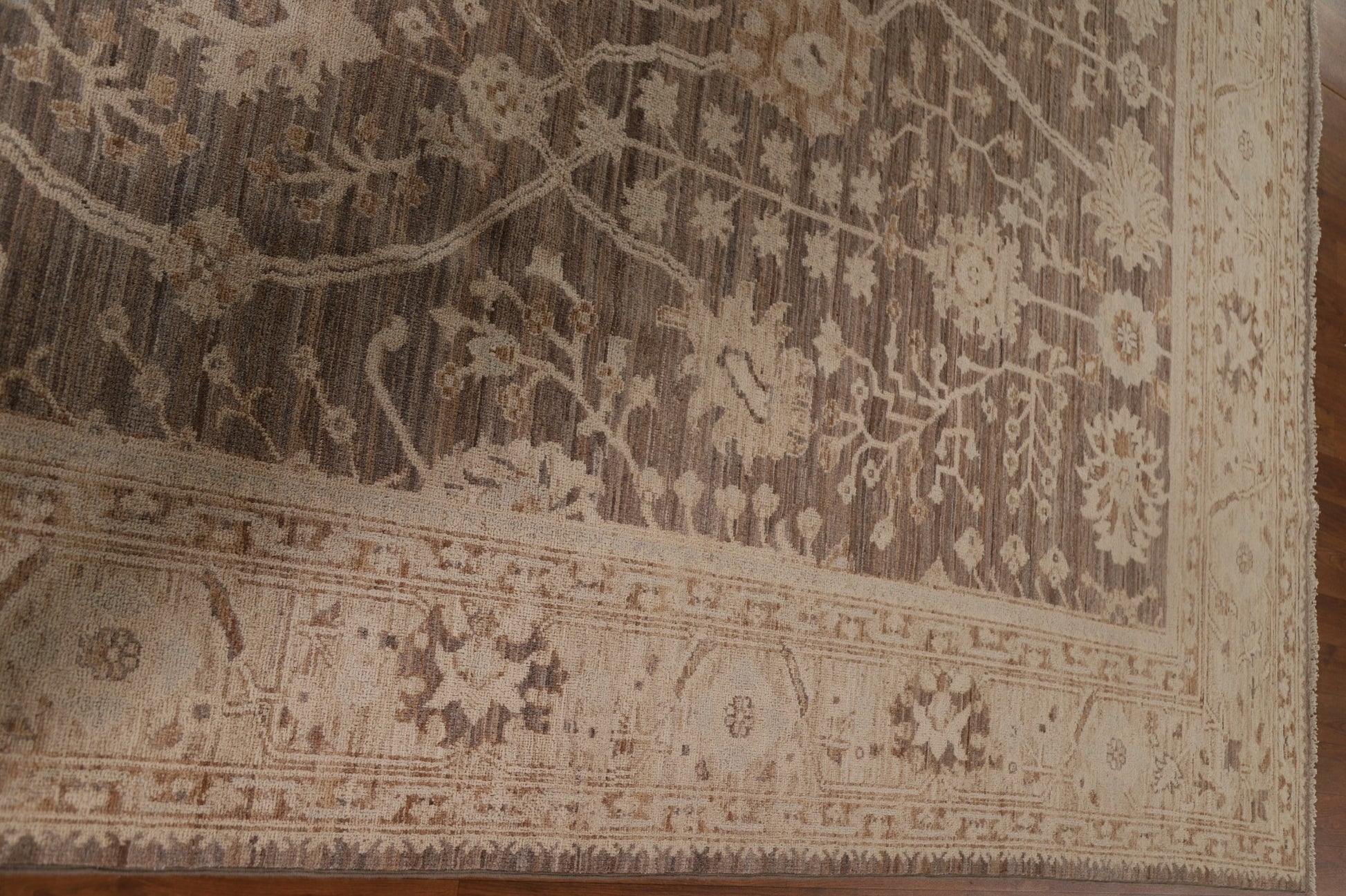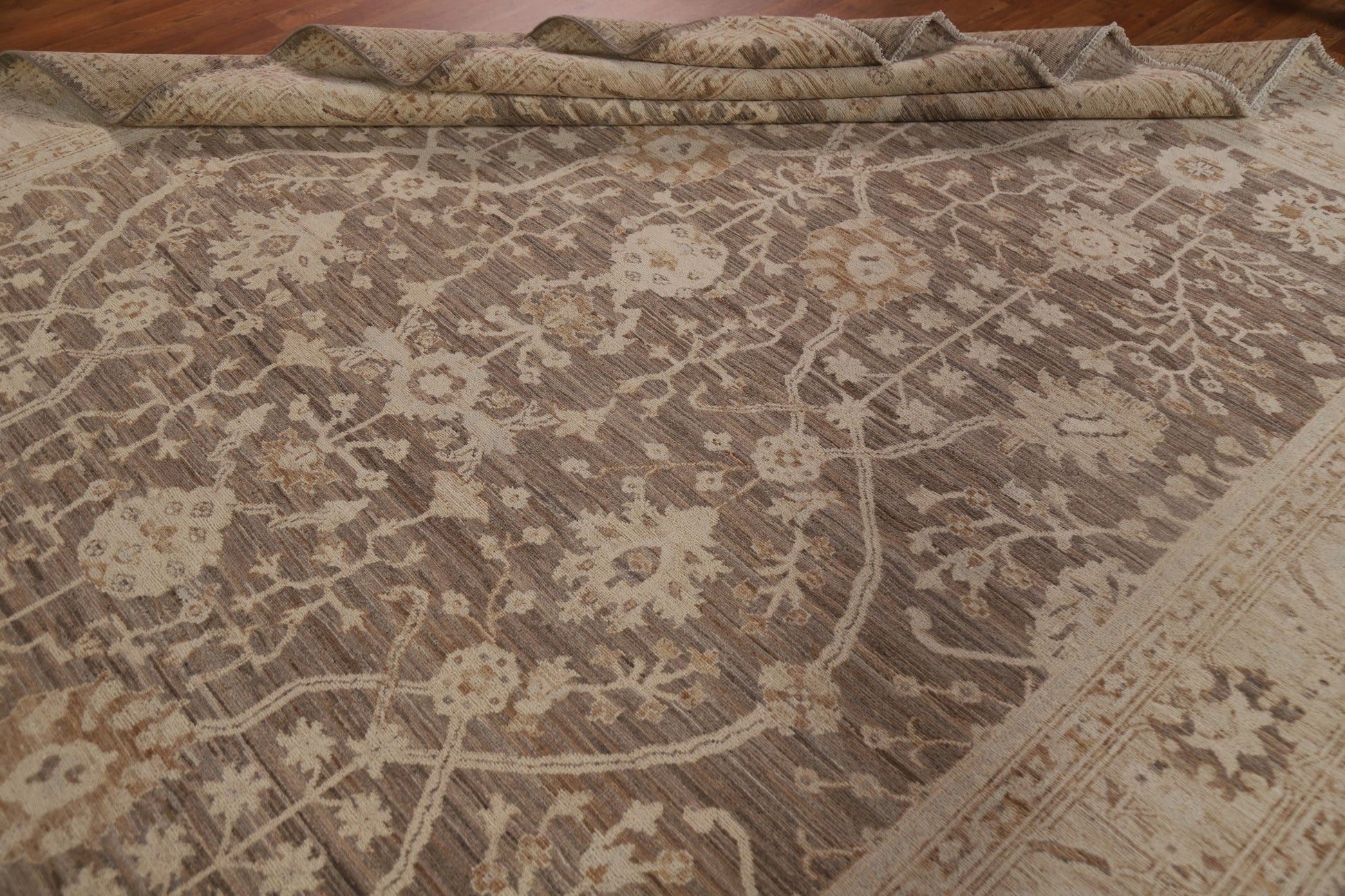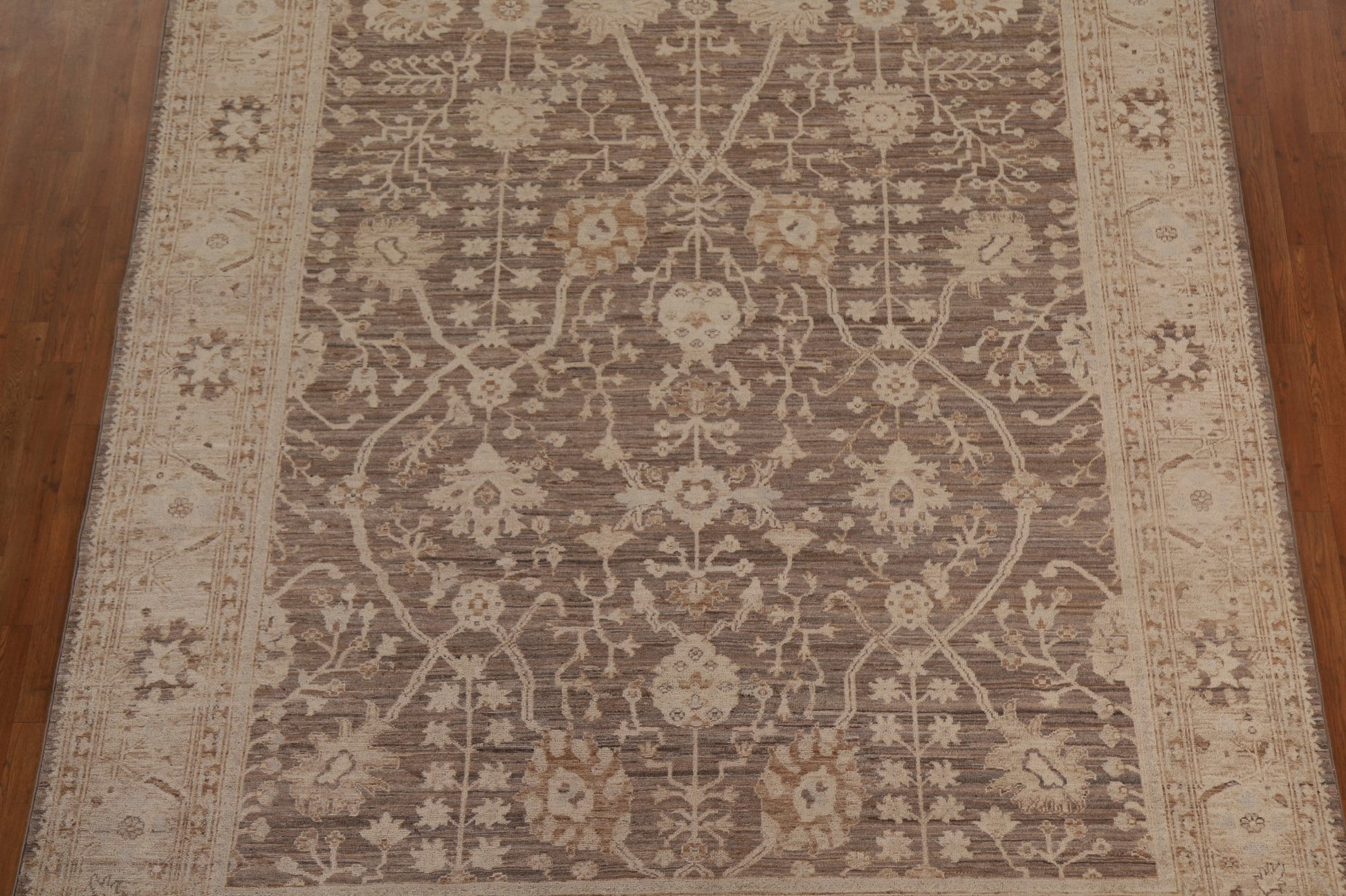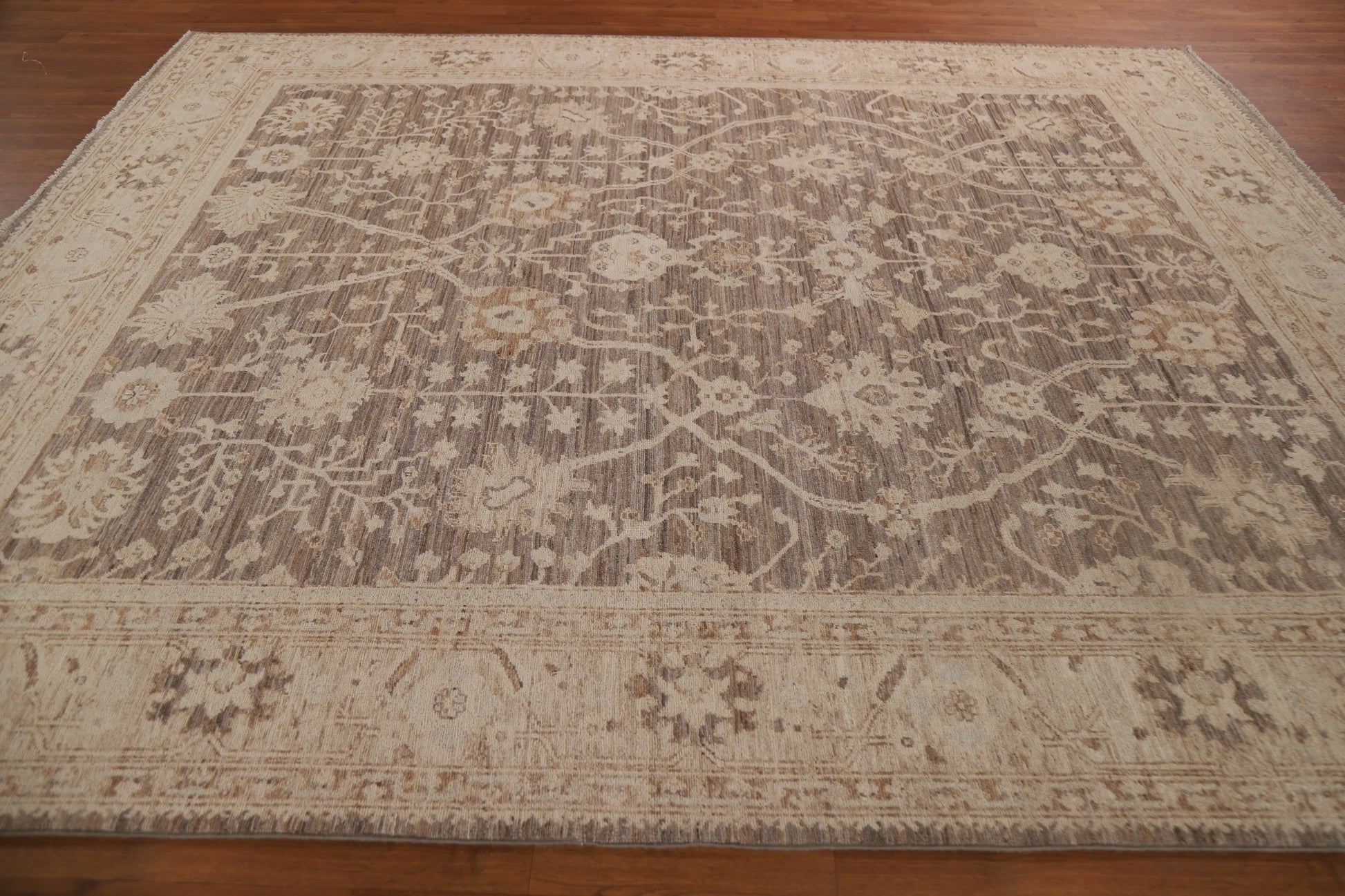 A Beautiful Genuine Turkey Oushak rug is Hand Knotted by skillful weavers in Turkey with 100% Wool Material. This rug is in New, First Quality condition. dimensions are 9' 9'' X 8' 2'' in foot and 297 X 249 in centimeter. the primary color is Brown.