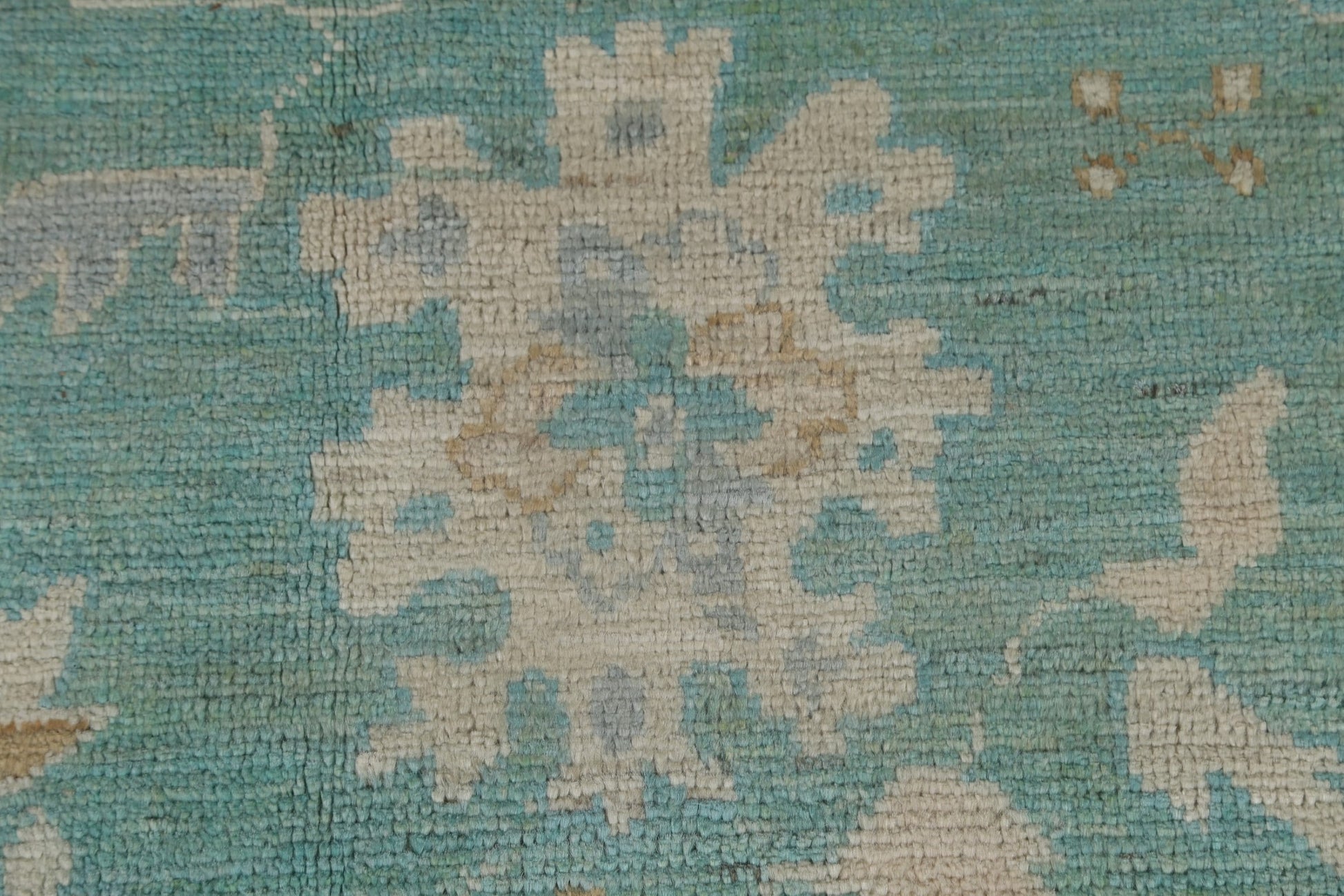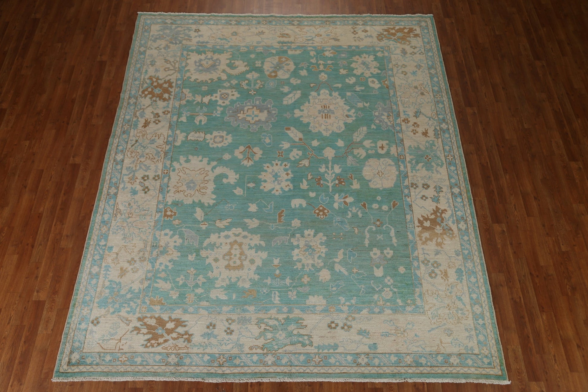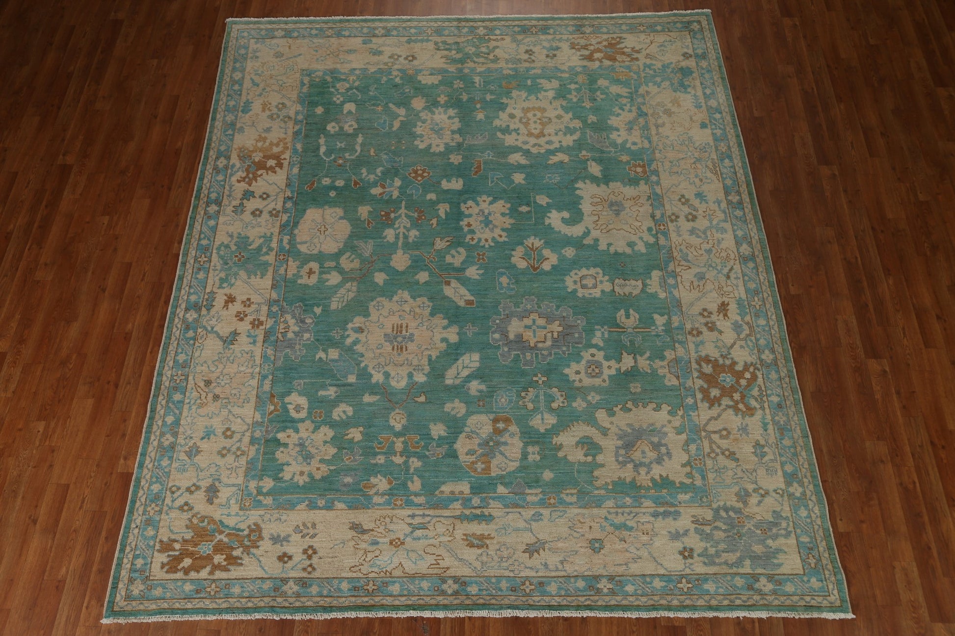 A Beautiful Genuine Turkey Oushak rug is Hand Knotted by skillful weavers in Turkey with 100% Wool Material. This rug is in New, First Quality condition. dimensions are 9' 9'' X 8' 5'' in foot and 297 X 257 in centimeter. the primary color is Green.