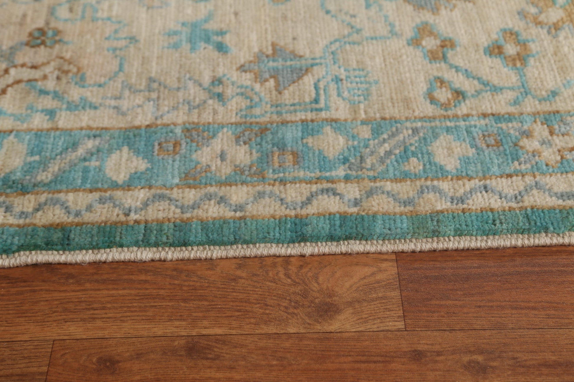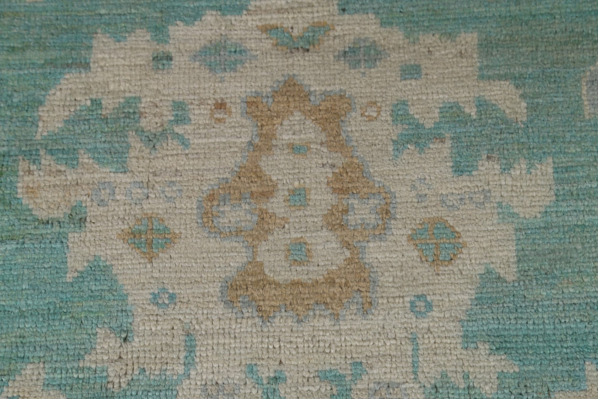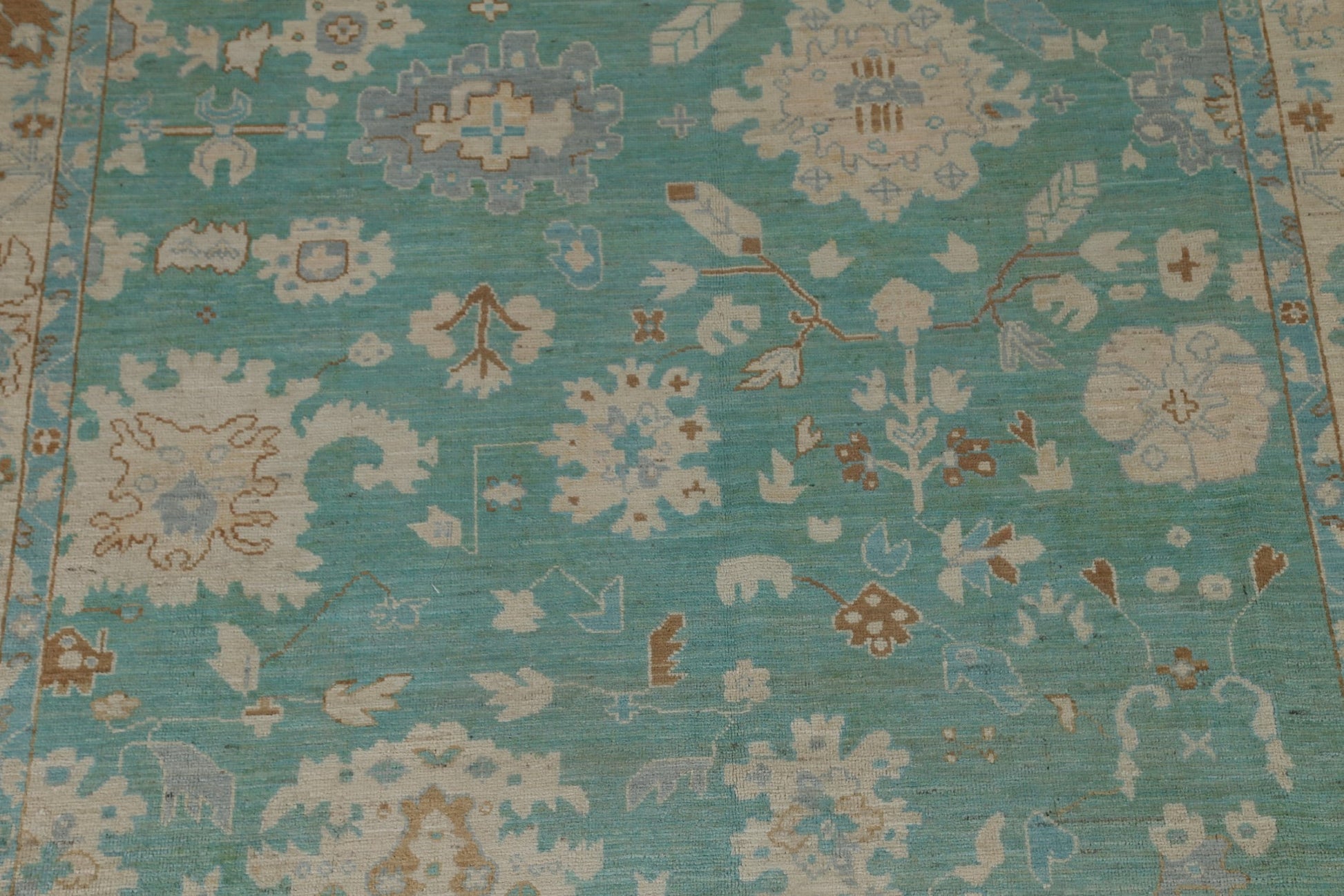A Beautiful Genuine Turkey Oushak rug is Hand Knotted by skillful weavers in Turkey with 100% Wool Material. This rug is in New, First Quality condition. dimensions are 9' 9'' X 8' 5'' in foot and 297 X 257 in centimeter. the primary color is Green.