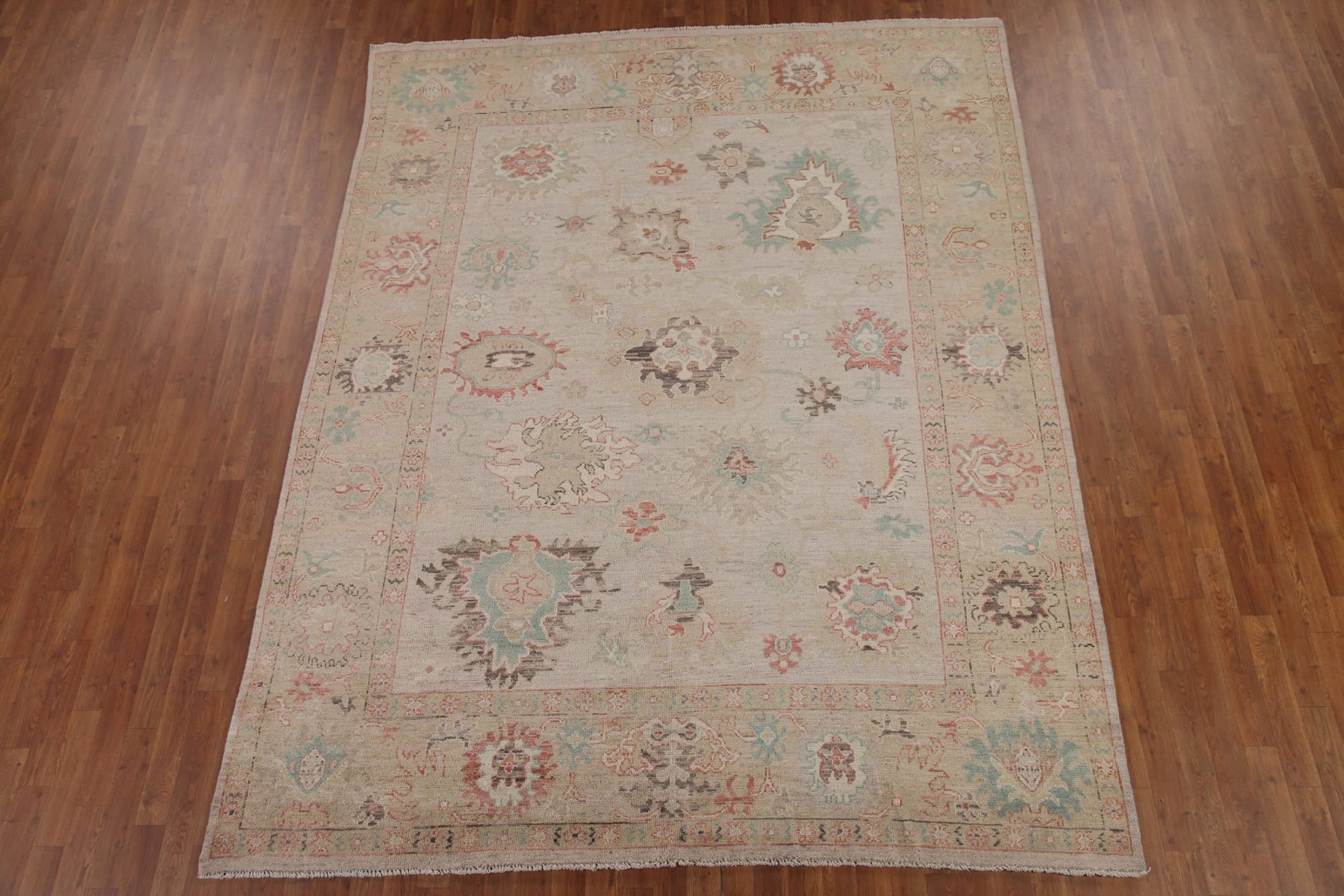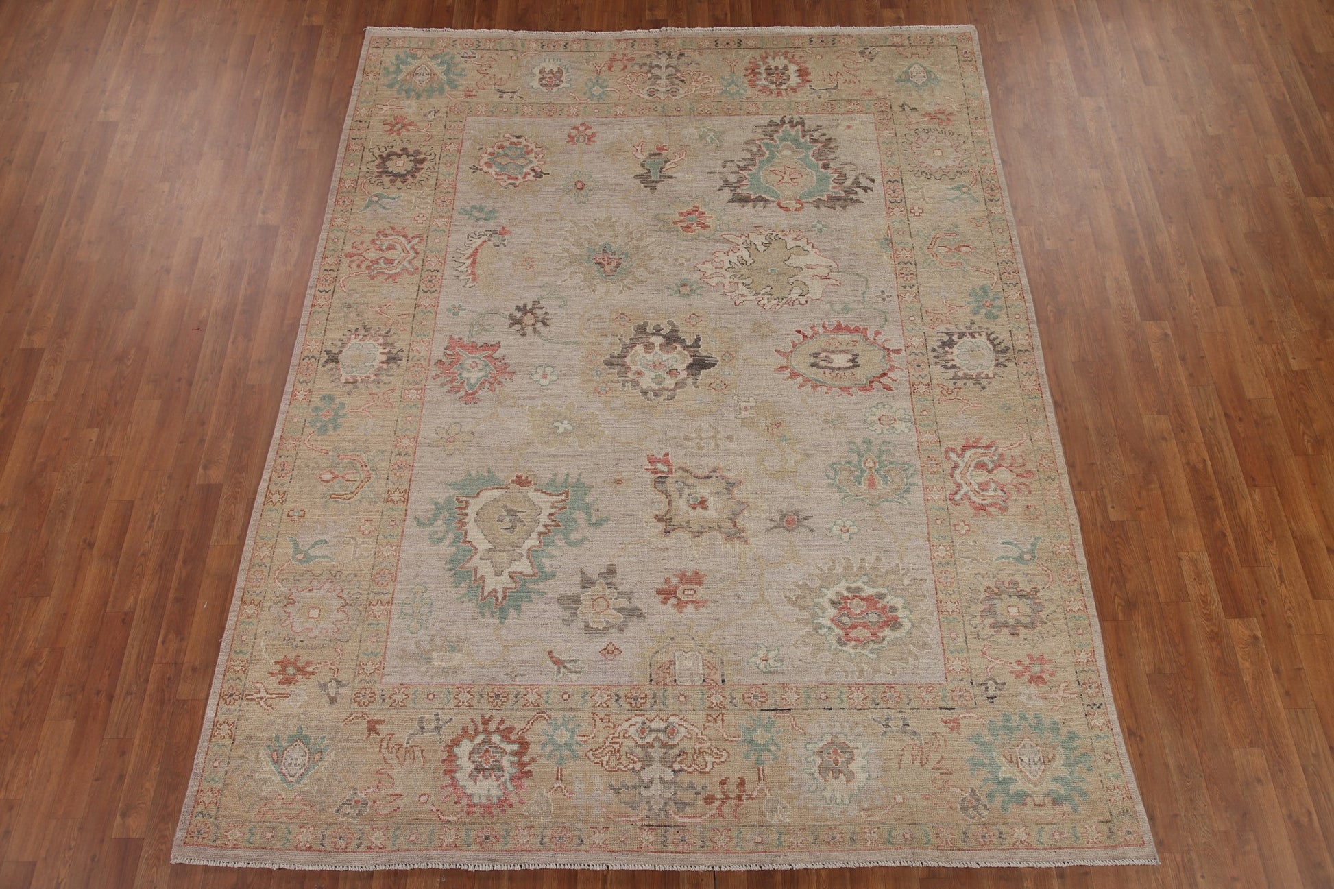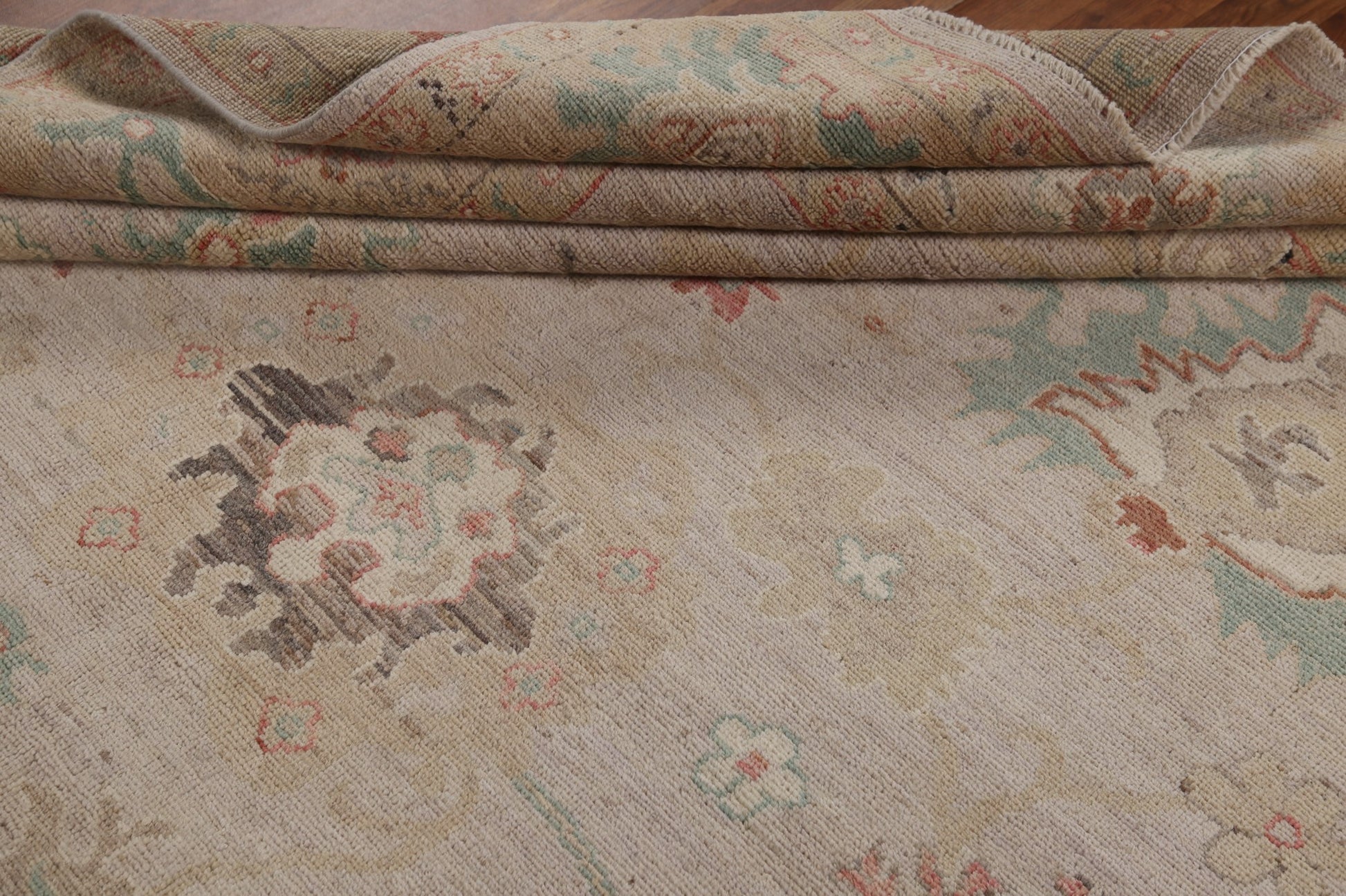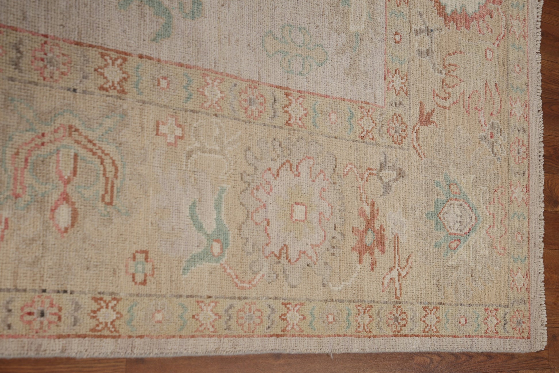 A Beautiful Genuine Turkey Oushak rug is Hand Knotted by skillful weavers in Turkey with 100% Wool Material. This rug is in New, First Quality condition. dimensions are 10' 0'' X 7' 9'' in foot and 305 X 236 in centimeter. the primary color is Beige & Ivories.