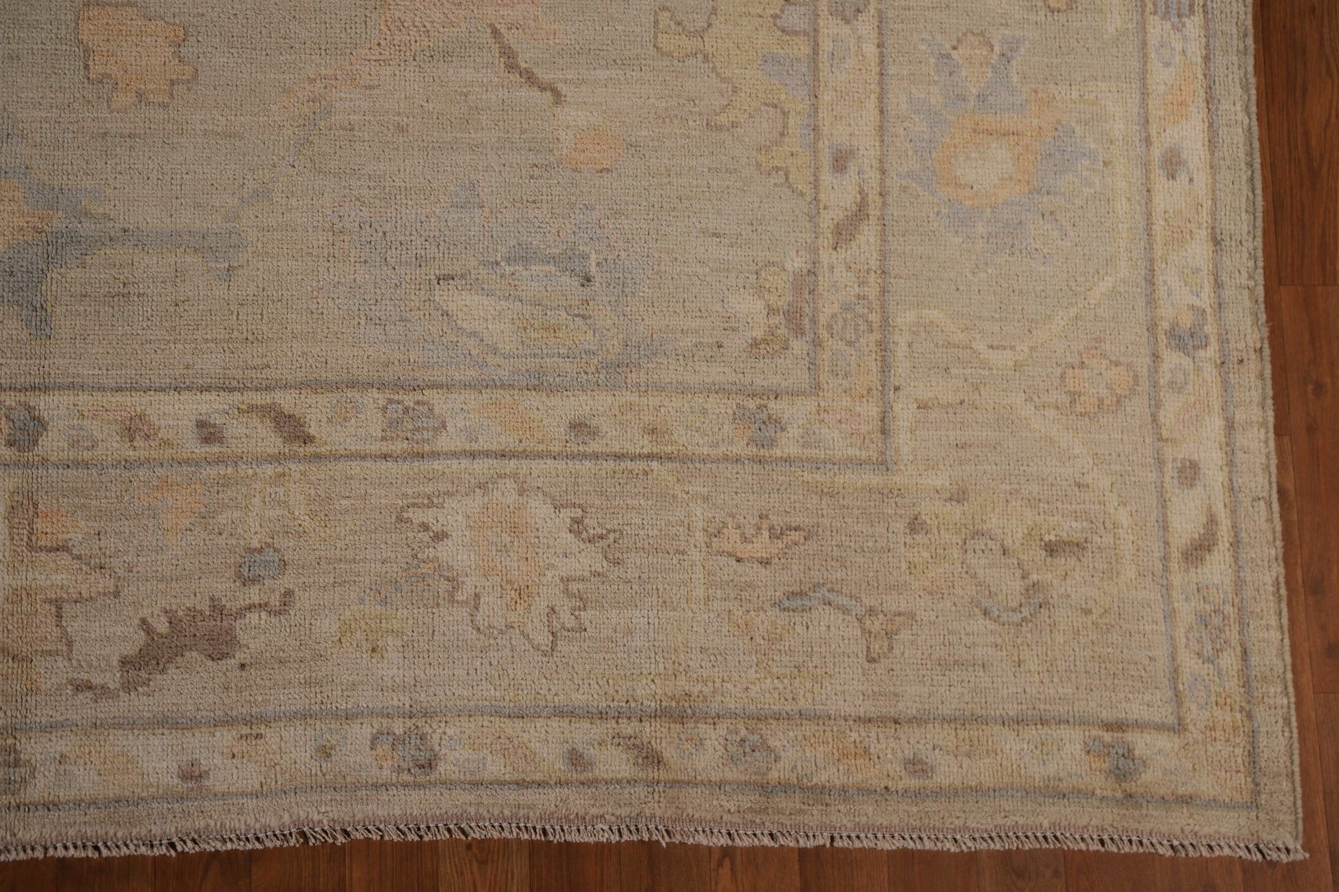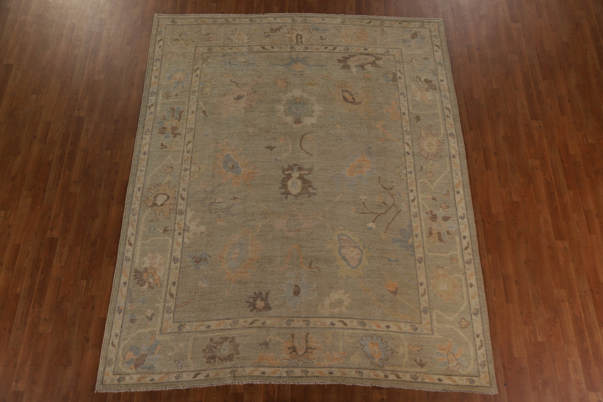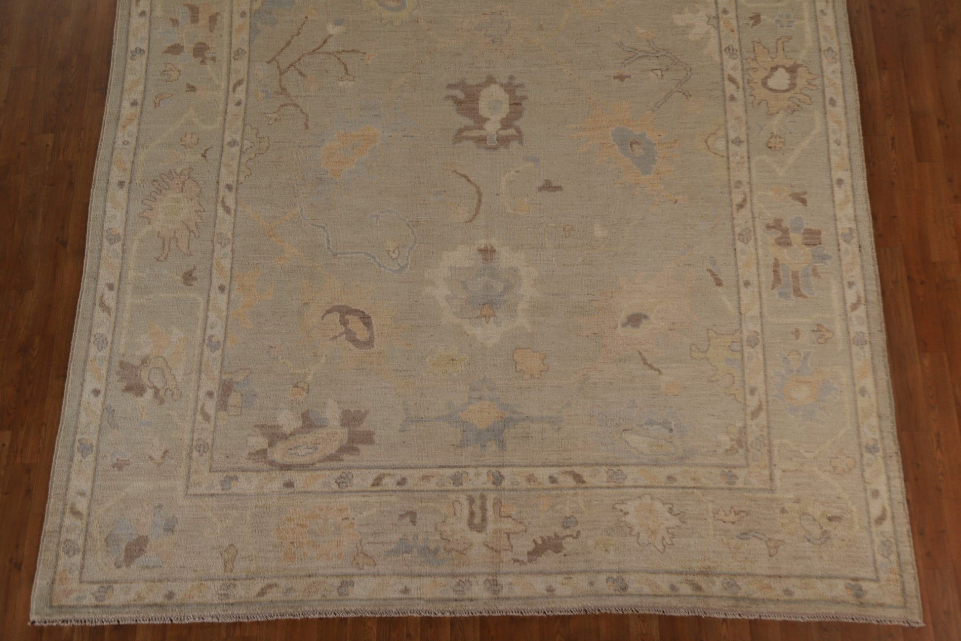 A Beautiful Genuine Turkey Oushak rug is Hand Knotted by skillful weavers in Turkey with 100% Wool Material. This rug is in New, First Quality condition. dimensions are 9' 11'' X 8' 1'' in foot and 302 X 246 in centimeter. the primary color is Brown.