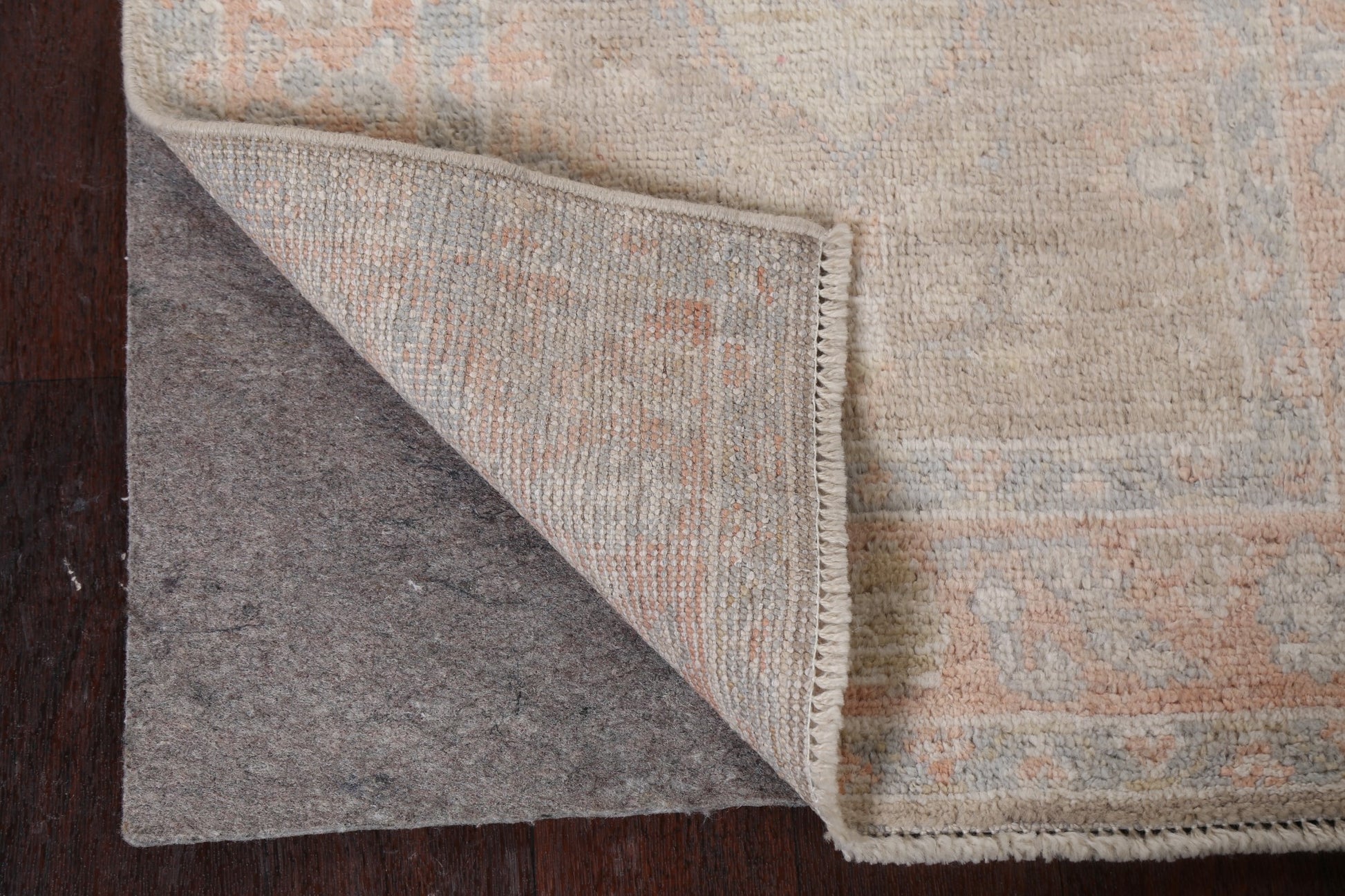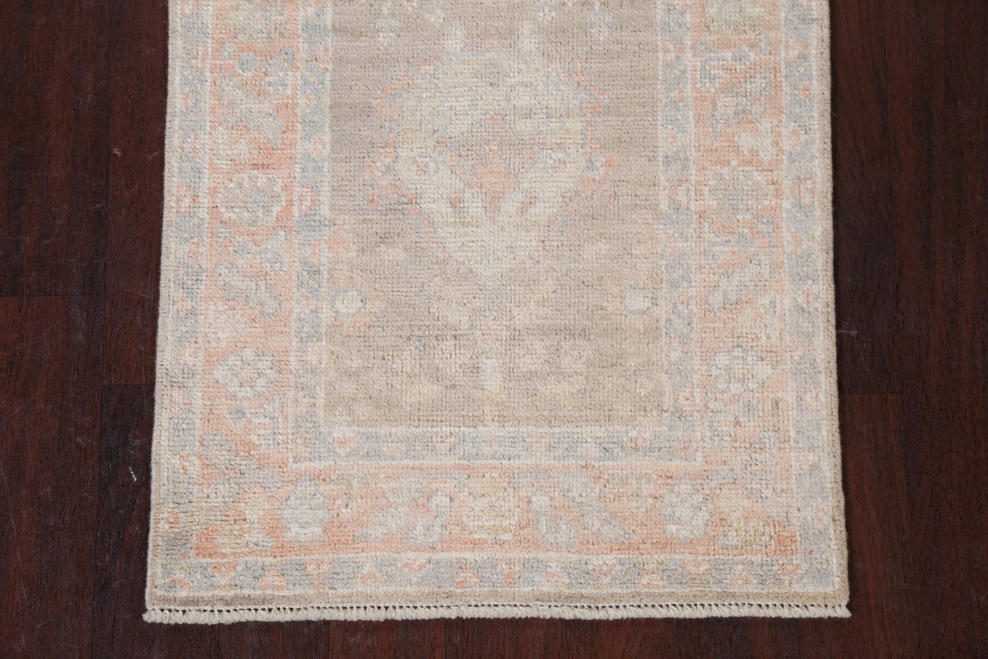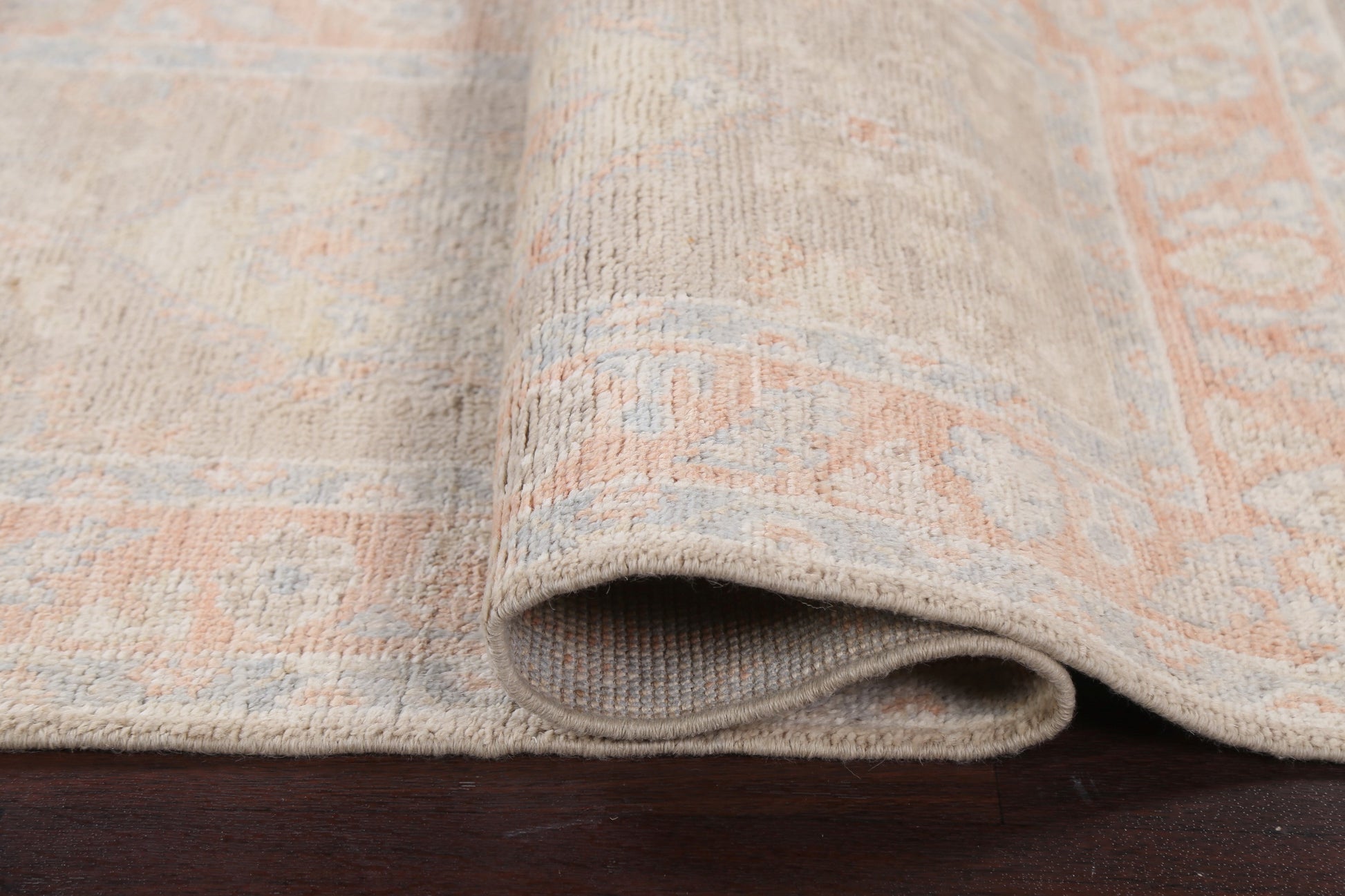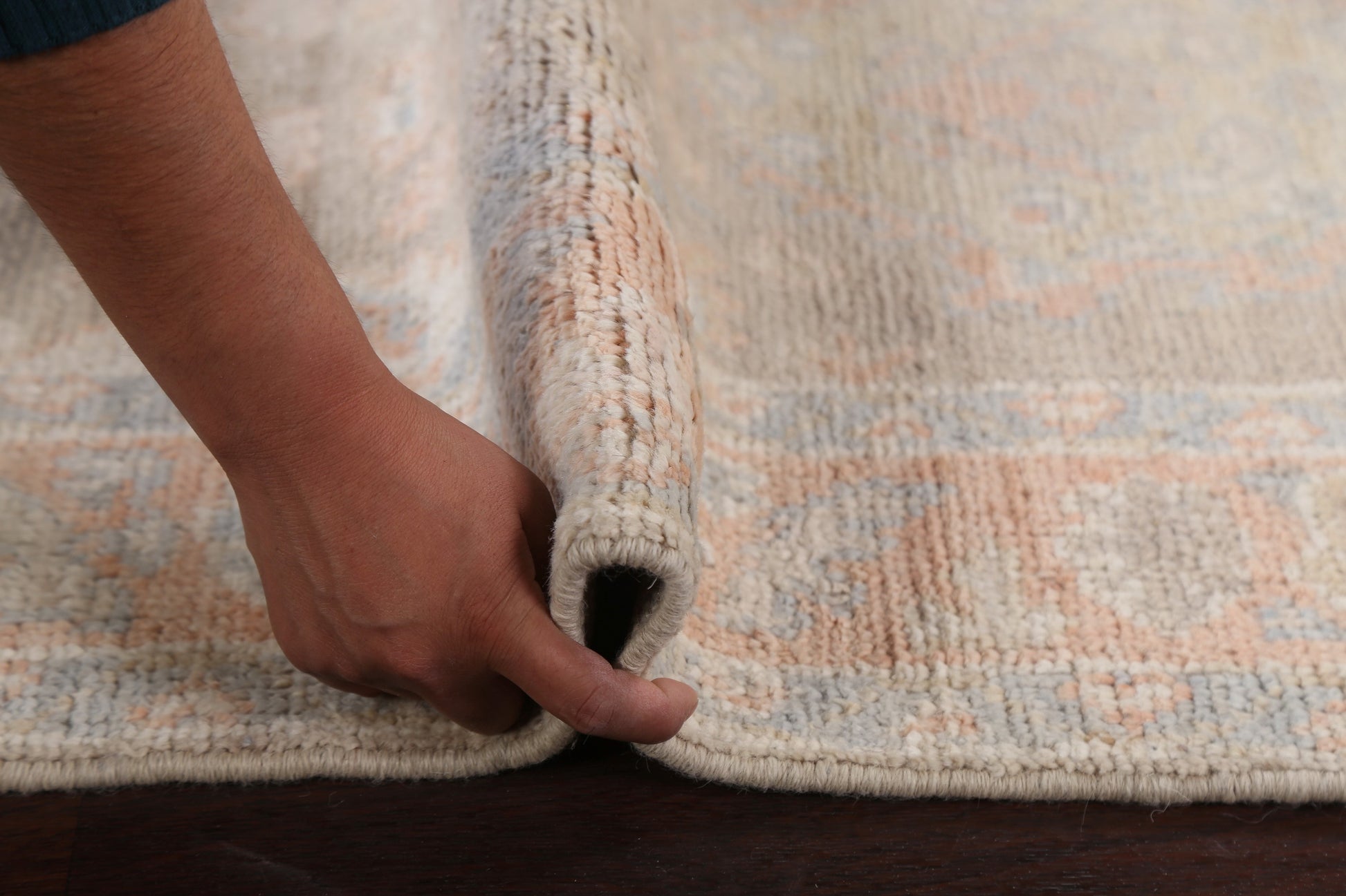 A Beautiful Genuine Turkey Oushak rug is Hand Knotted by skillful weavers in Turkey with 100% Wool Material. This rug is in New, First Quality condition. dimensions are 10' 1'' X 2' 5'' in foot and 307 X 74 in centimeter. the primary color is Beige & Ivories.