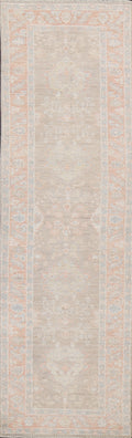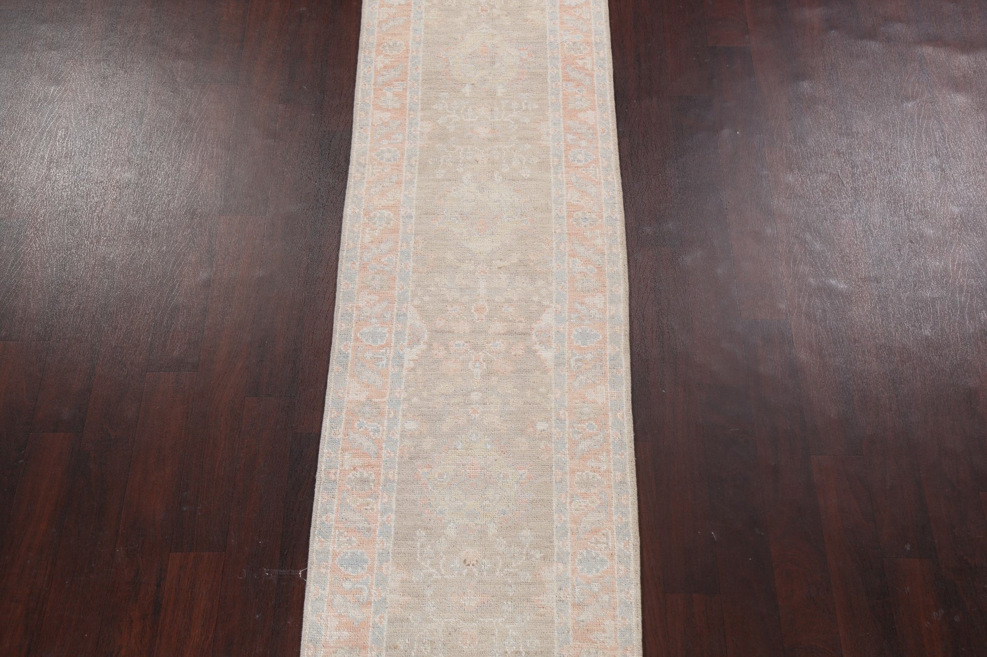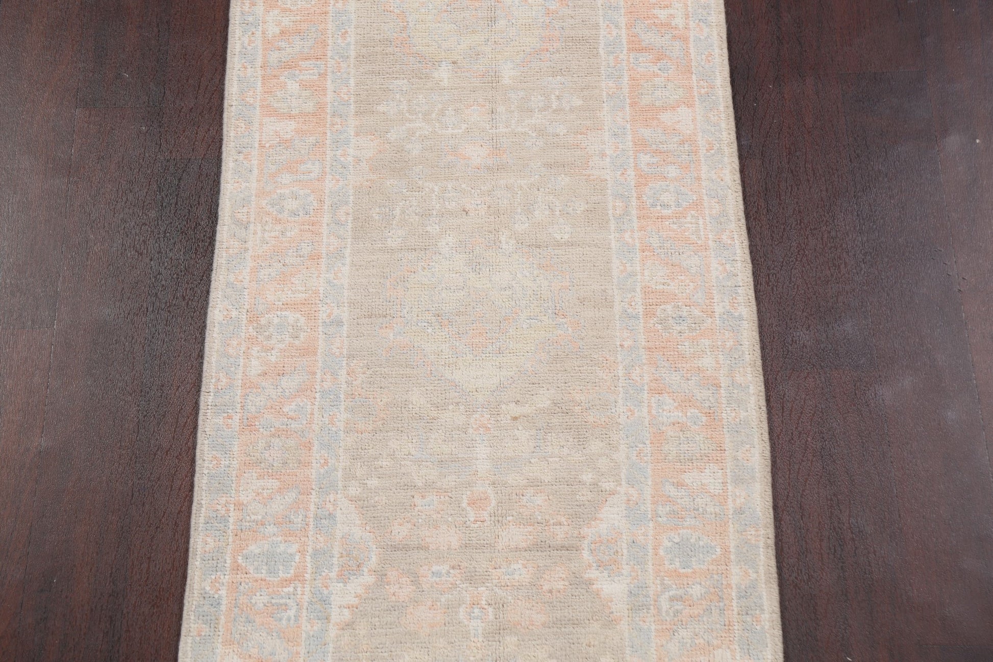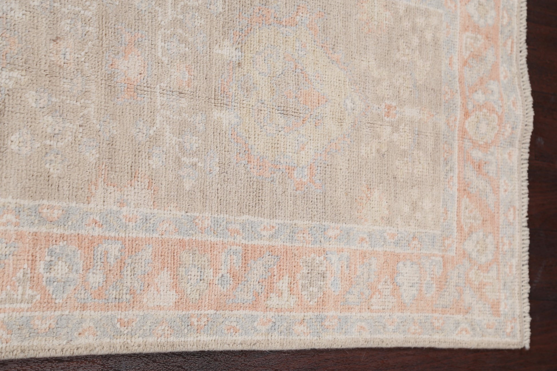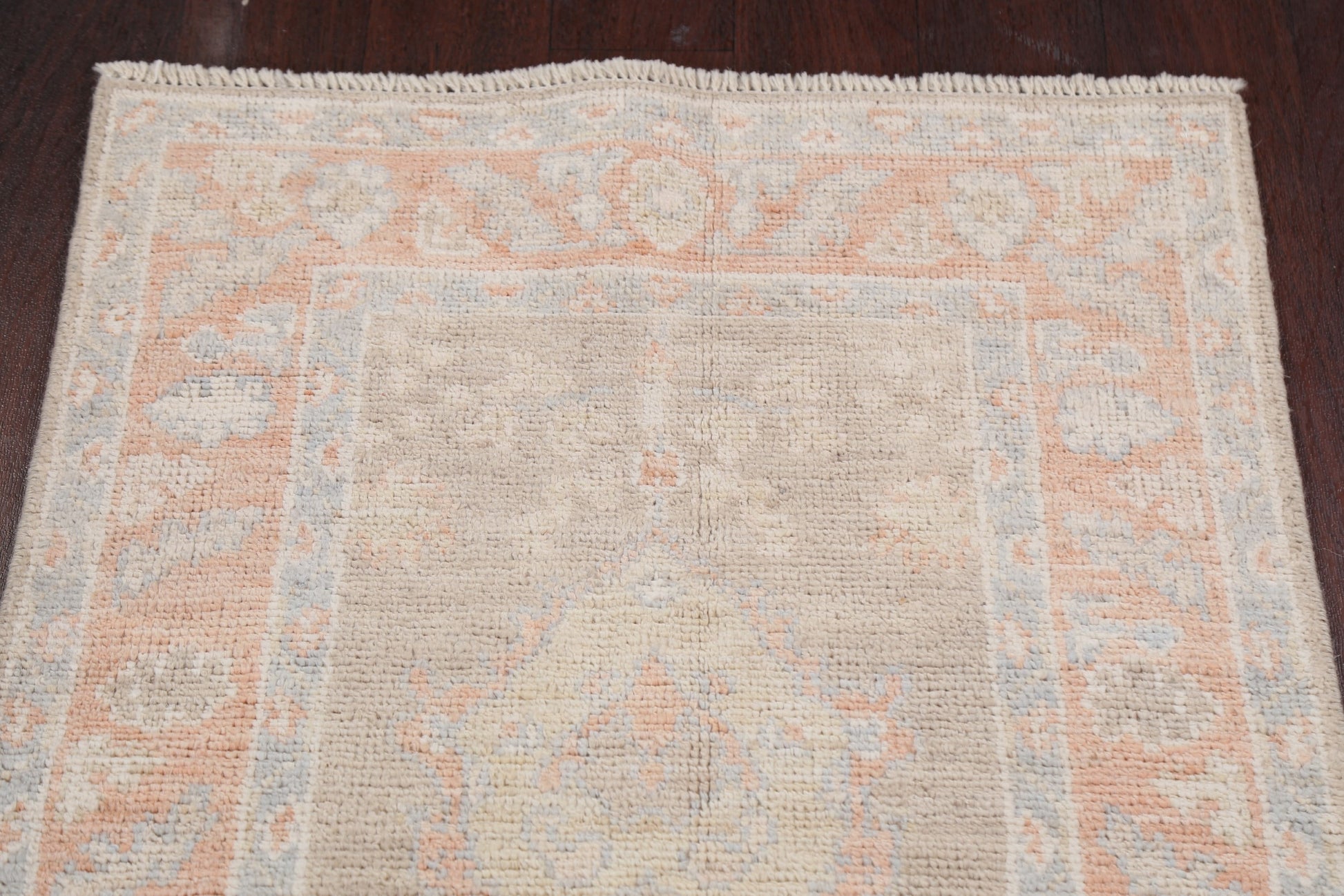 A Beautiful Genuine Turkey Oushak rug is Hand Knotted by skillful weavers in Turkey with 100% Wool Material. This rug is in New, First Quality condition. dimensions are 10' 1'' X 2' 5'' in foot and 307 X 74 in centimeter. the primary color is Beige & Ivories.