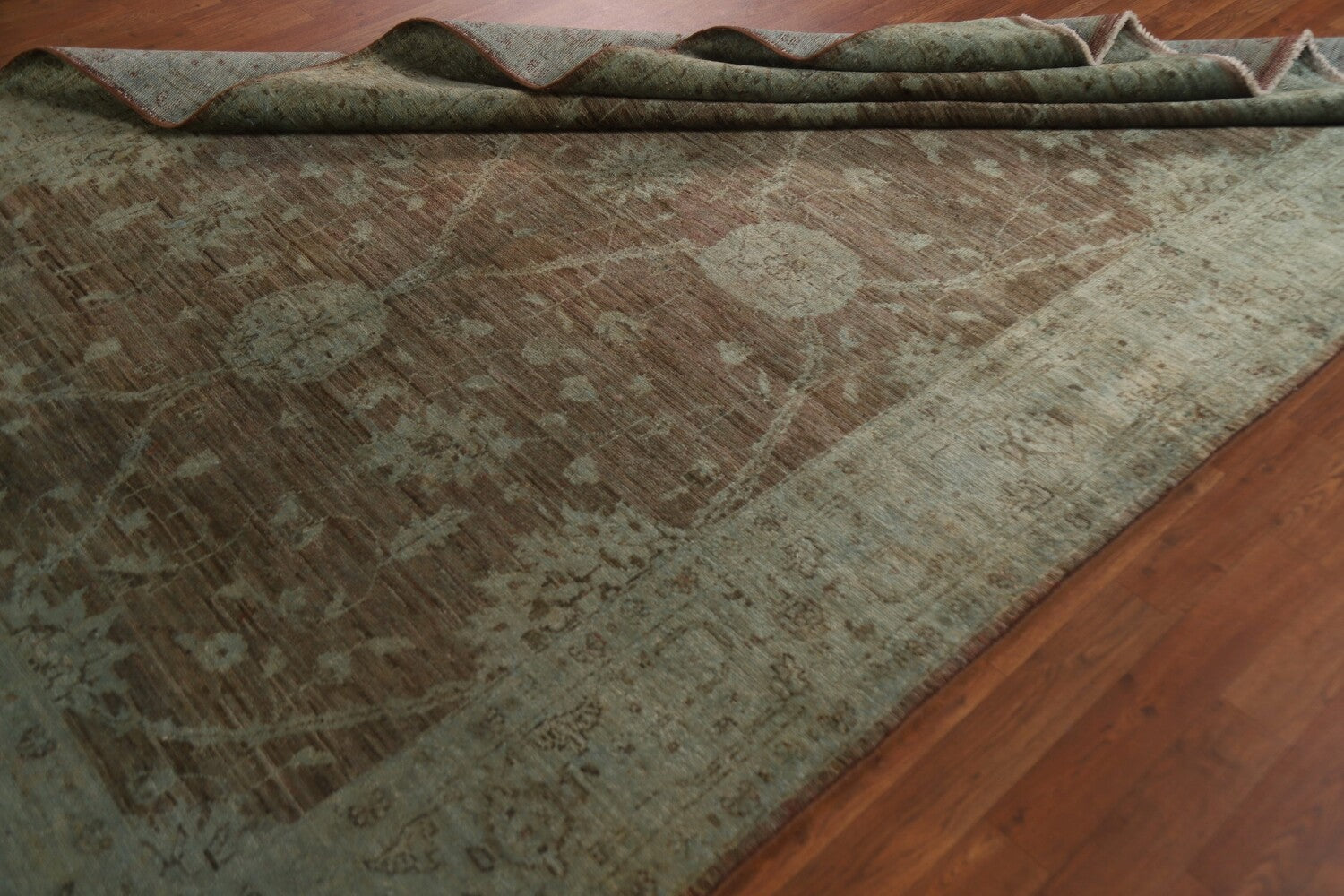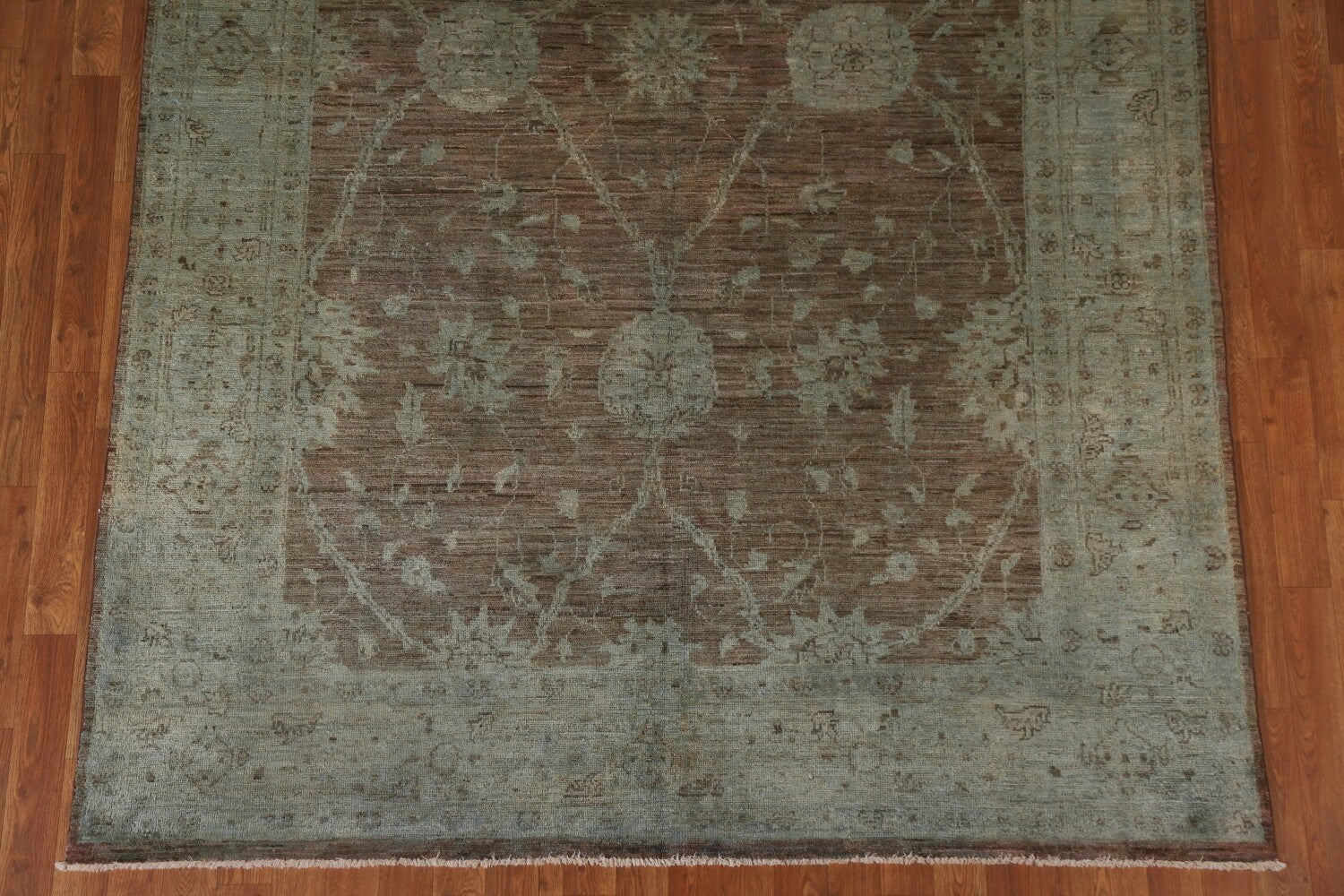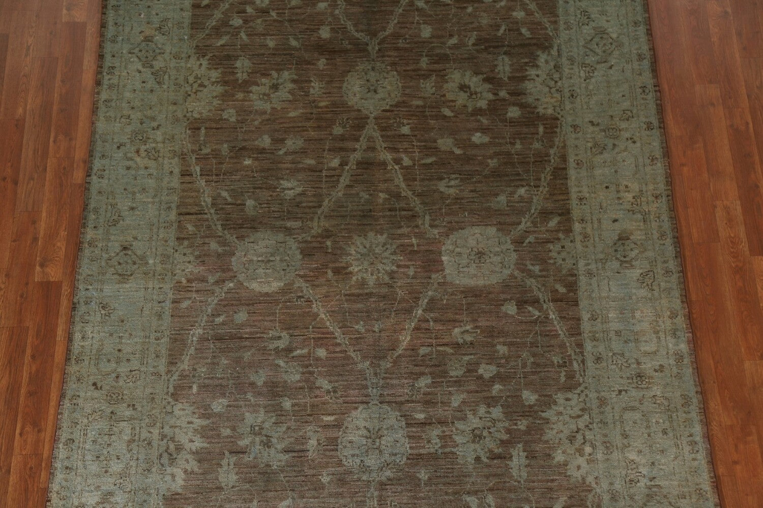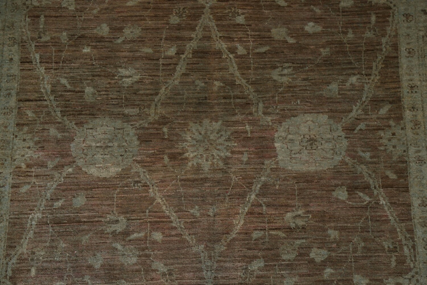 A Beautiful Genuine Pakistan Chobi-Peshawar rug is Hand Knotted by skillful weavers in Pakistan with 100% Wool Material. This rug is in New, First Quality condition. dimensions are 9' 5'' X 6' 2'' in foot and 287 X 188 in centimeter. the primary color is Brown.