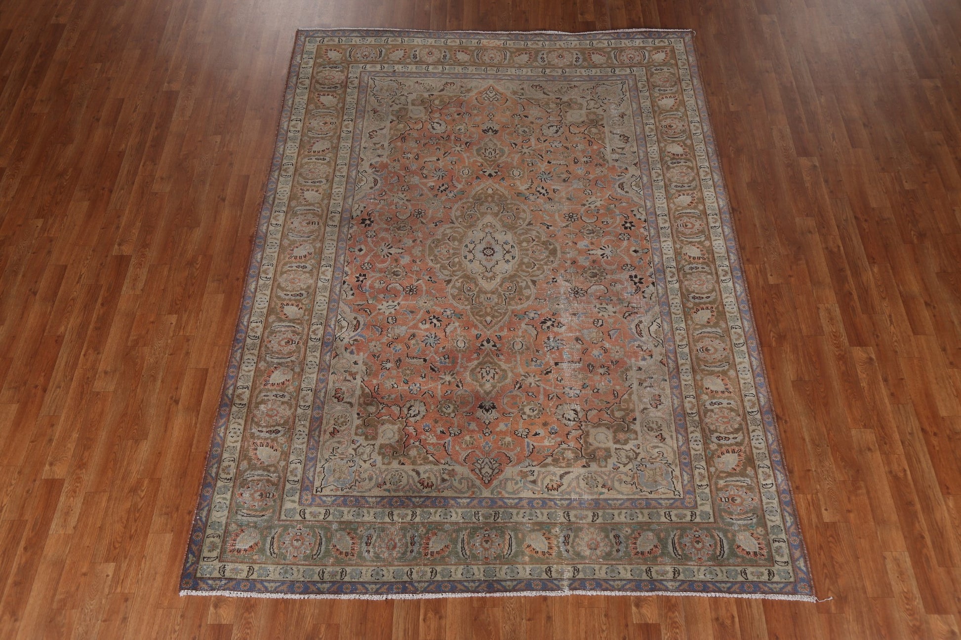 Over-Dyed Distressed Kashan Wool Persian Rug 7x9