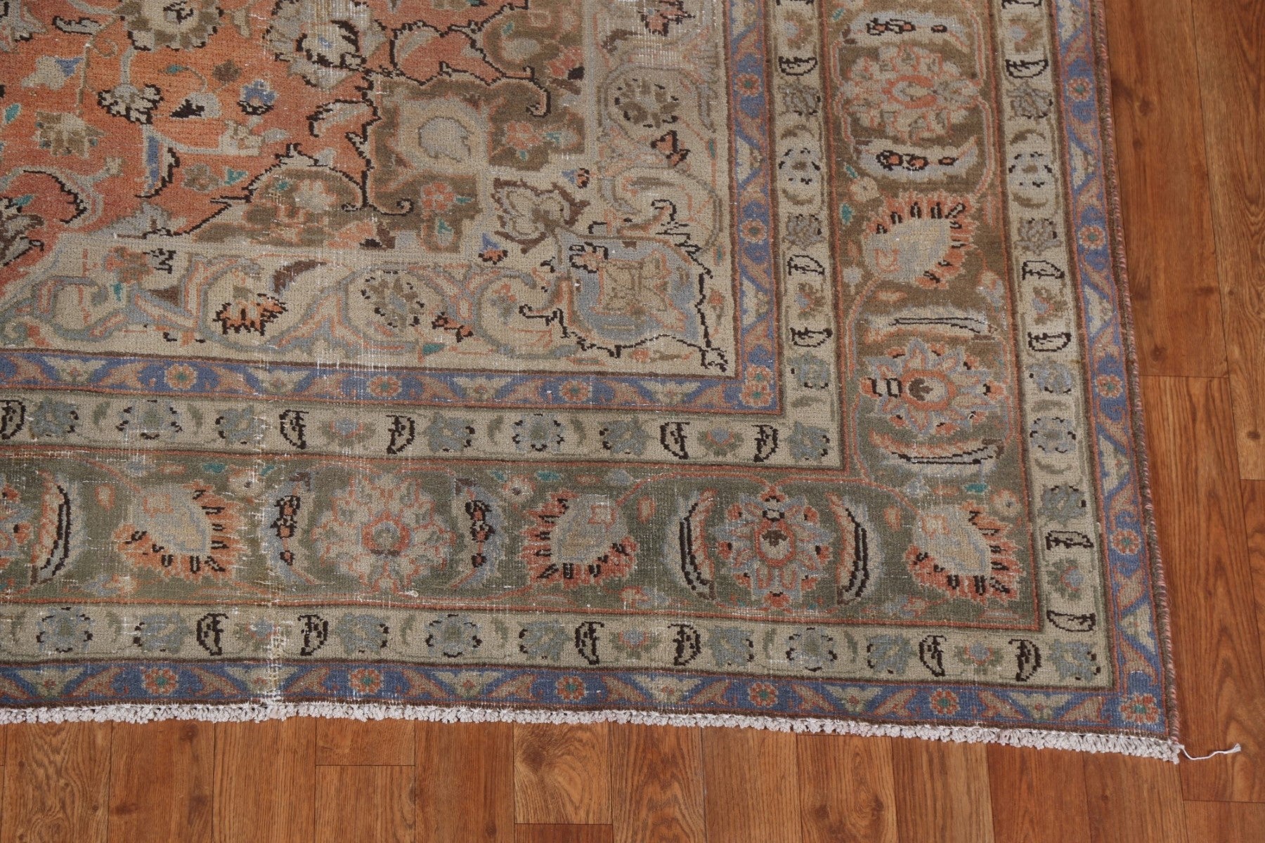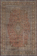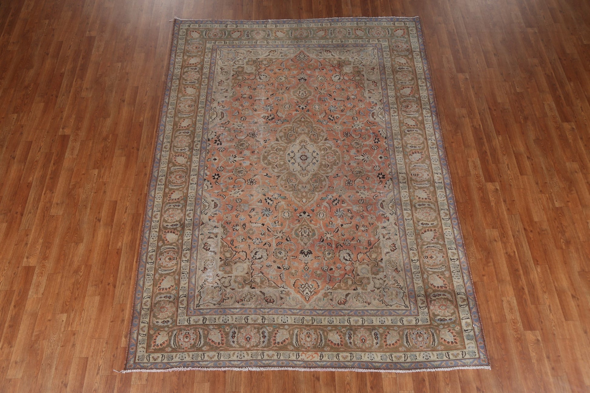 A Beautiful Genuine Persia ( Persia ) Kashan rug is Hand Knotted by skillful weavers in Persia ( Persia ) with 100% Wool Material. This rug is in Very Good ( Low Pile ) condition. dimensions are 9' 2'' X 6' 7'' in foot and 279 X 201 in centimeter. the primary color is Oranges & Rust.