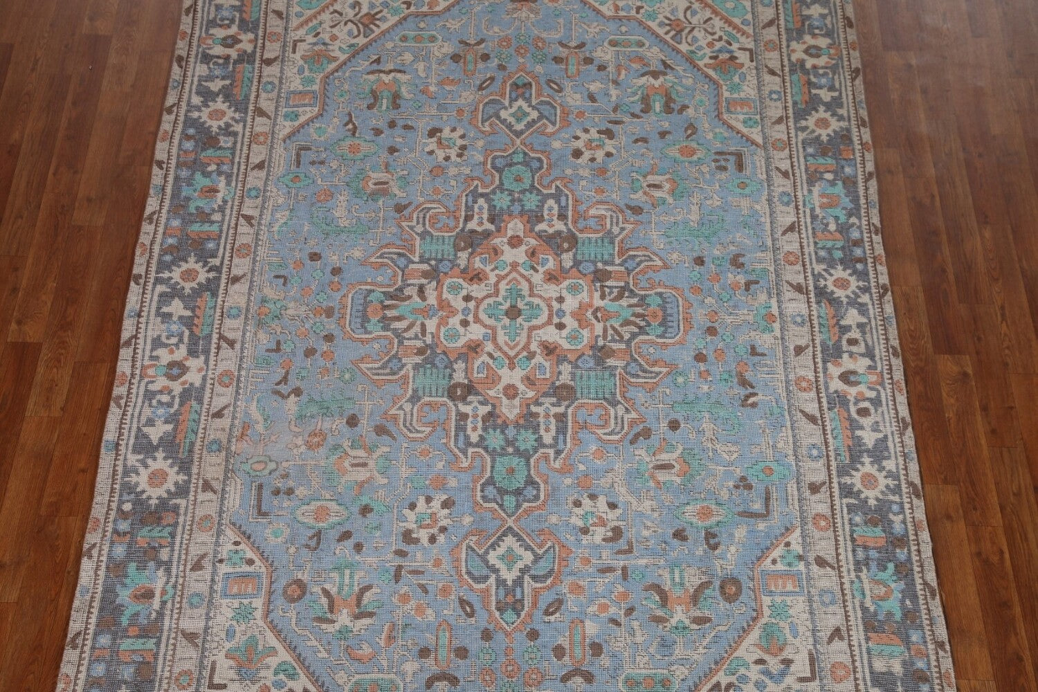 A Beautiful Genuine Persia ( Persia ) Tabriz rug is Hand Knotted by skillful weavers in Persia ( Persia ) with 100% Wool Material. This rug is in Very Good (Evenly Low Pile-Repairs) condition. dimensions are 9' 6'' X 6' 3'' in foot and 290 X 191 in centimeter. the primary color is Navy Blue & Blues.