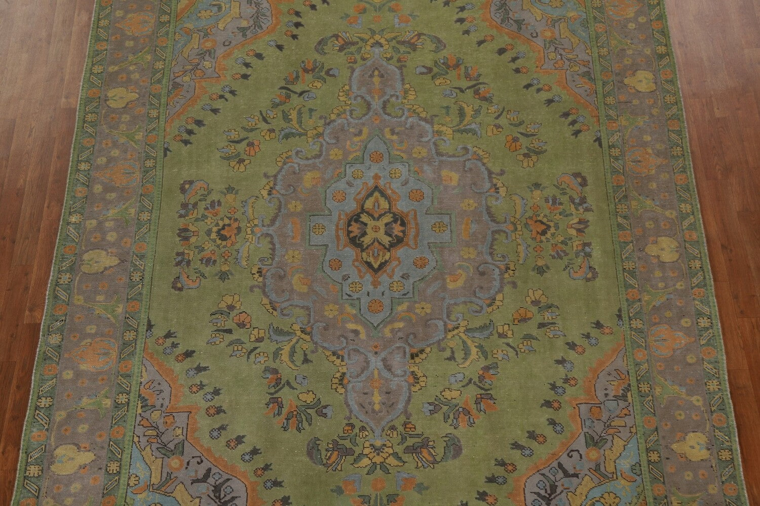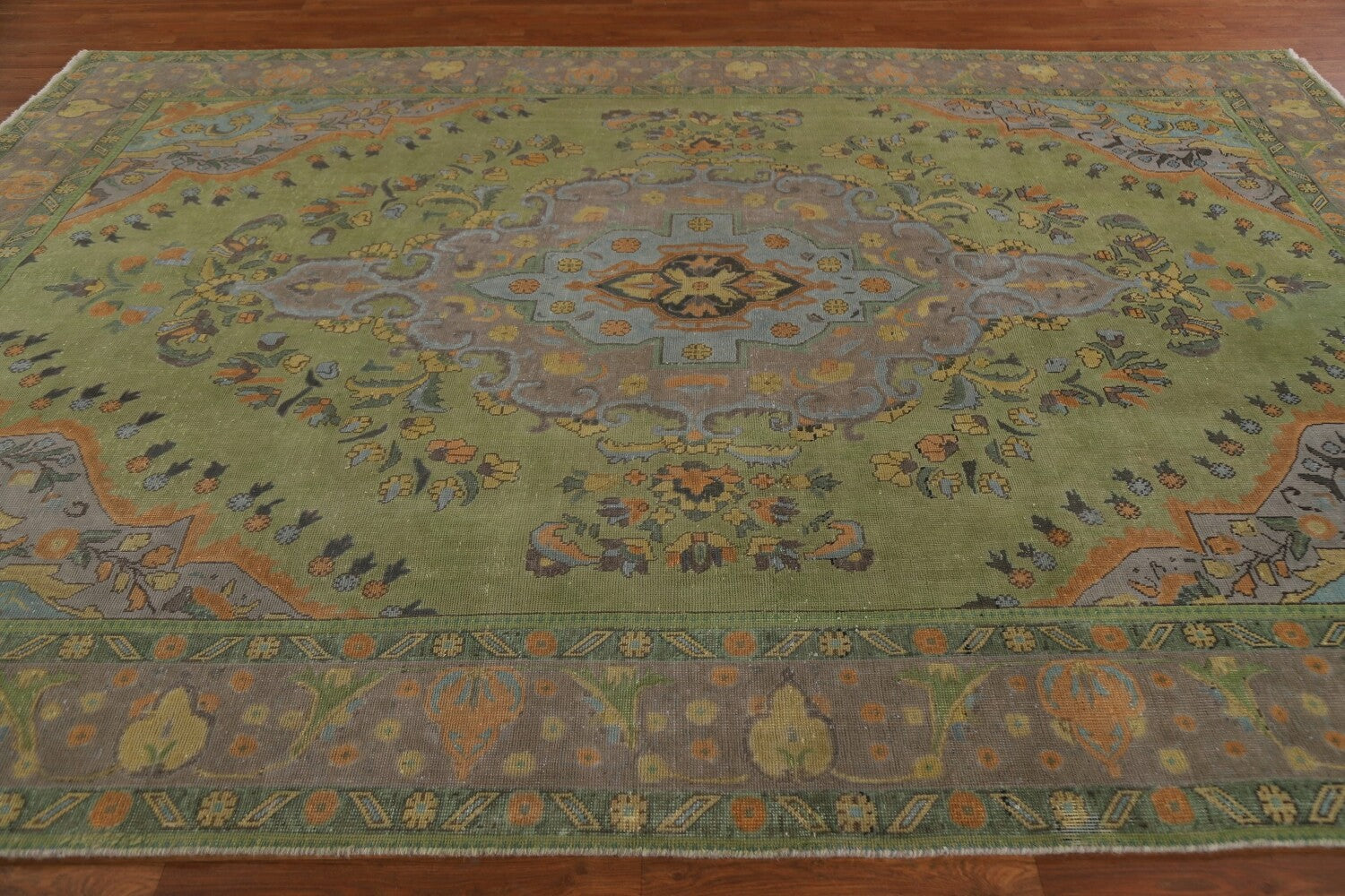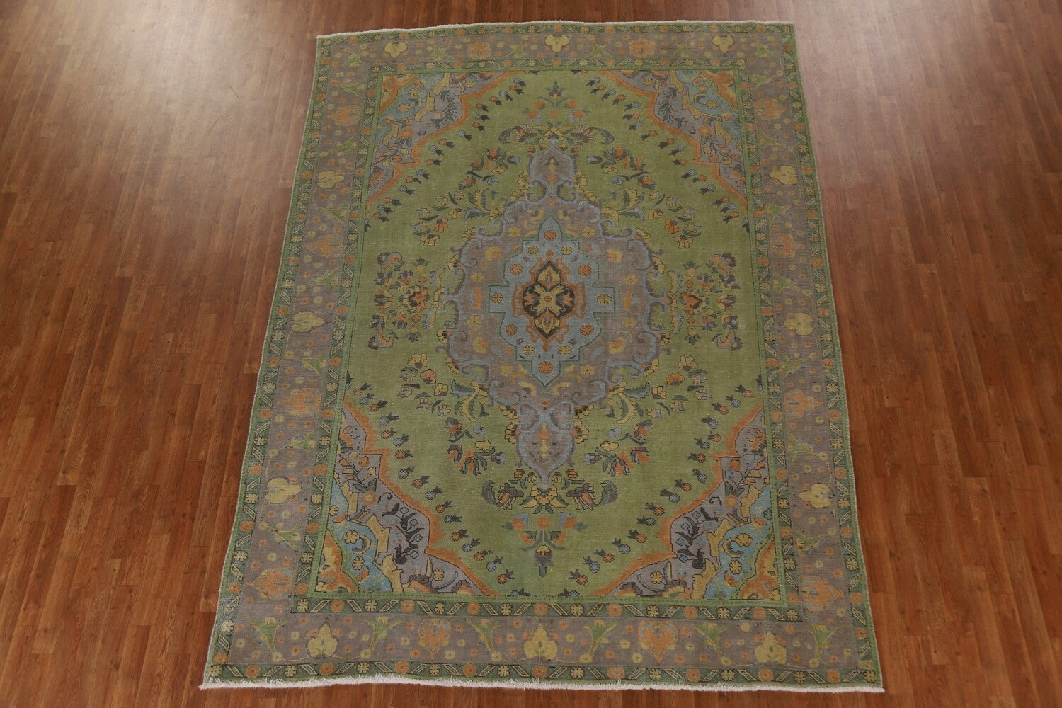 Over-Dyed Green Tabriz Persian Area Rug 8x11