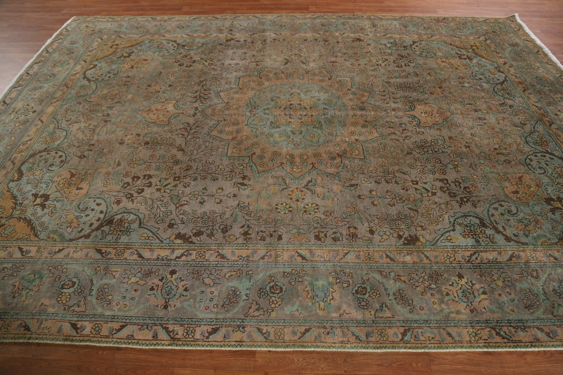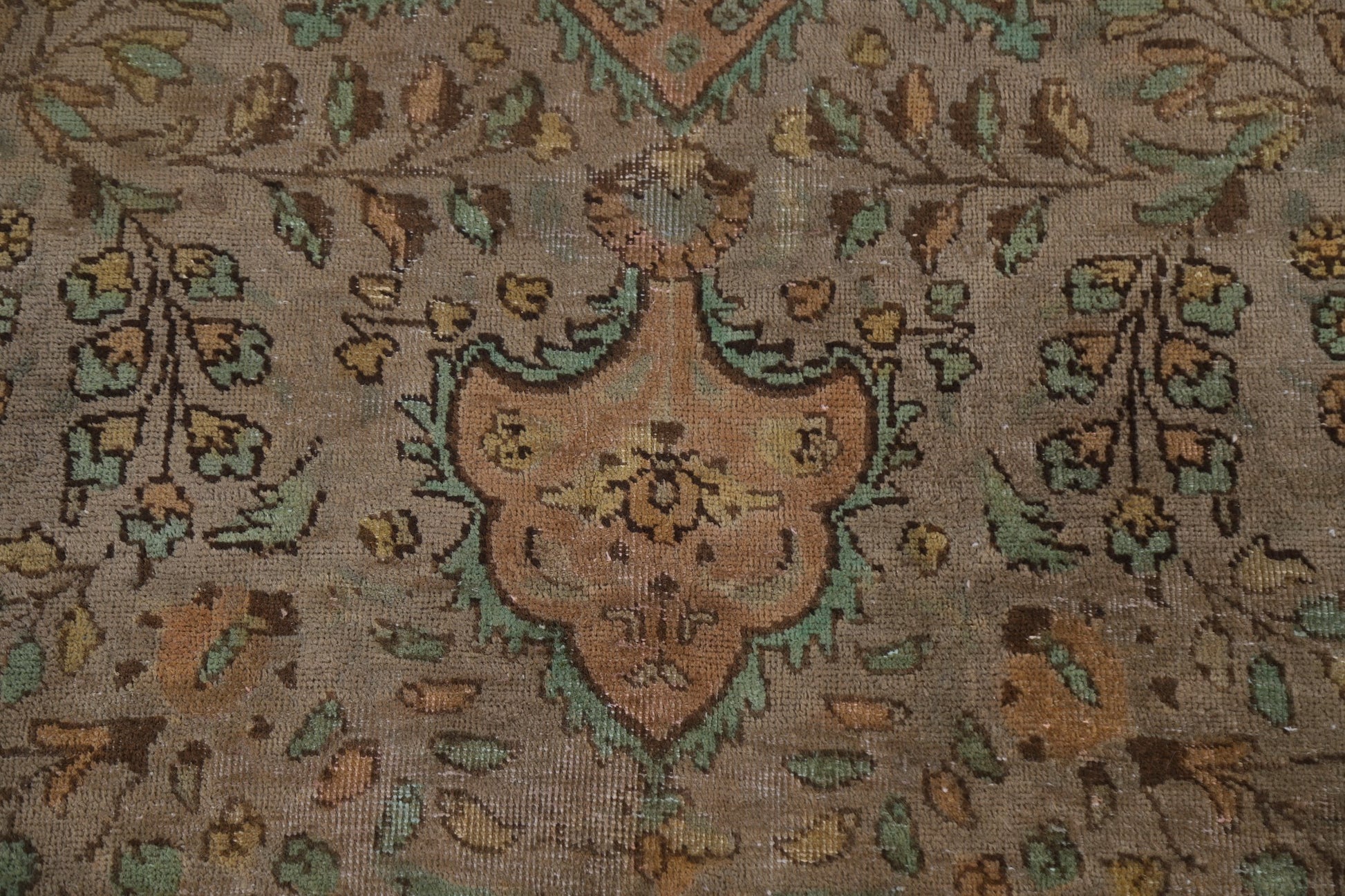 A Beautiful Genuine Persia ( Persia ) Kashan rug is Hand Knotted by skillful weavers in Persia ( Persia ) with 100% Wool Material. This rug is in Very Good ( Low Pile ) condition. dimensions are 11' 2'' X 8' 3'' in foot and 340 X 251 in centimeter. the primary color is Brown.