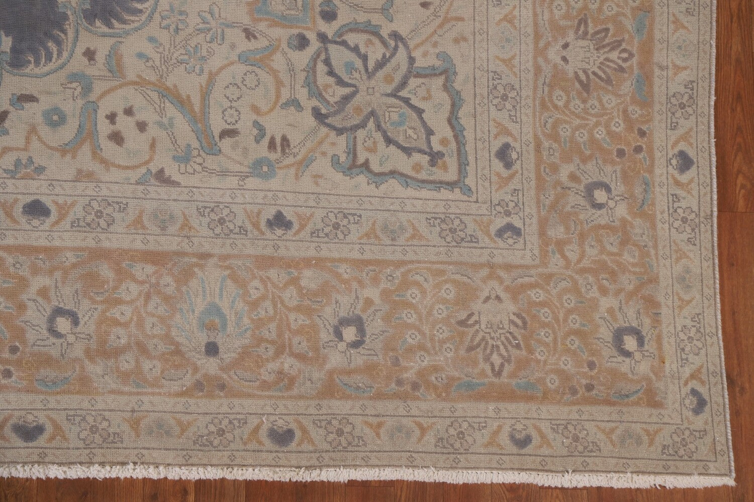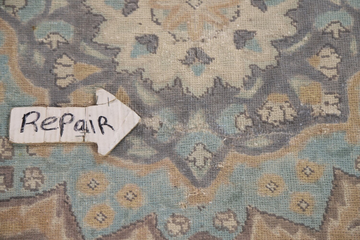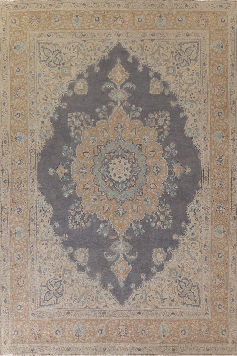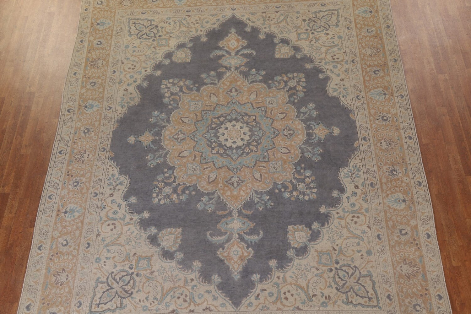 A Beautiful Genuine Persia ( Persia ) Tabriz rug is Hand Knotted by skillful weavers in Persia ( Persia ) with 100% Wool Material. This rug is in Very Good ( Low Pile- Repair) condition. dimensions are 12' 5'' X 9' 7'' in foot and 378 X 292 in centimeter. the primary color is Greys & Charcoal.