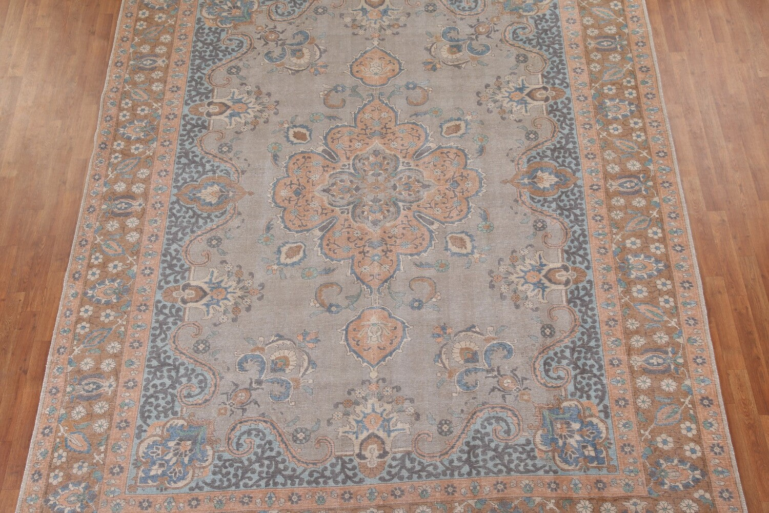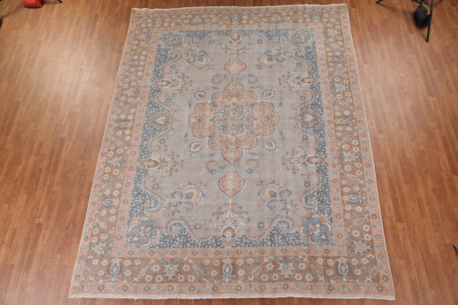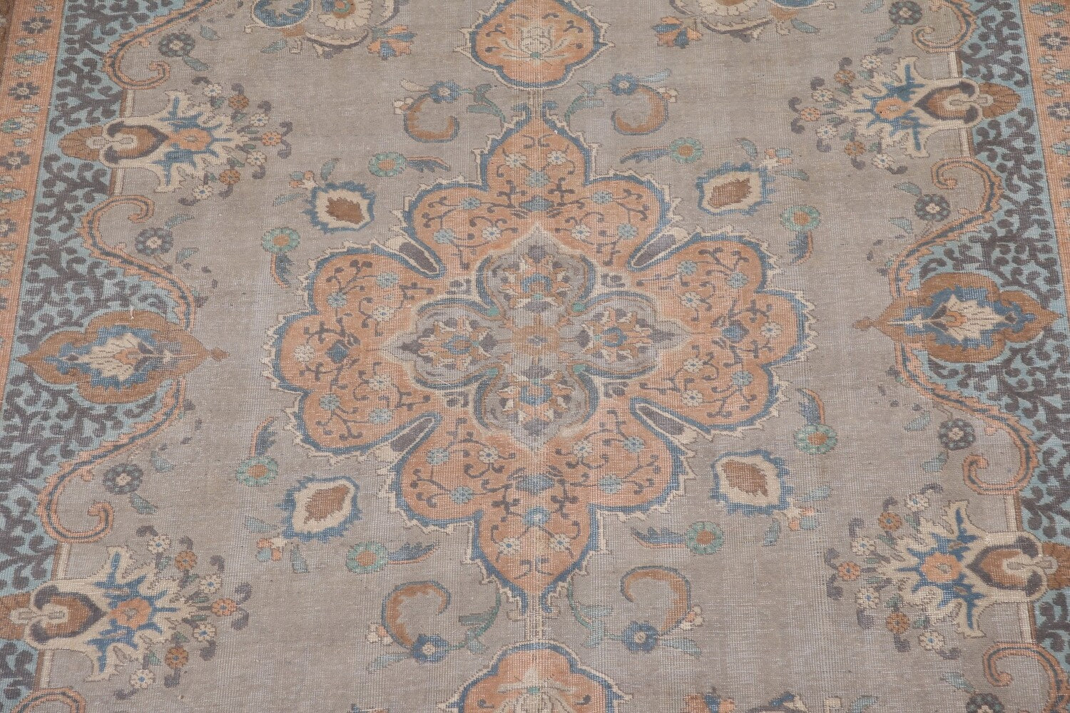 A Beautiful Genuine Persia ( Persia ) Tabriz rug is Hand Knotted by skillful weavers in Persia ( Persia ) with 100% Wool Material. This rug is in Very Good (Low Pile) condition. dimensions are 12' 3'' X 9' 8'' in foot and 373 X 295 in centimeter. the primary color is Greys & Charcoal.