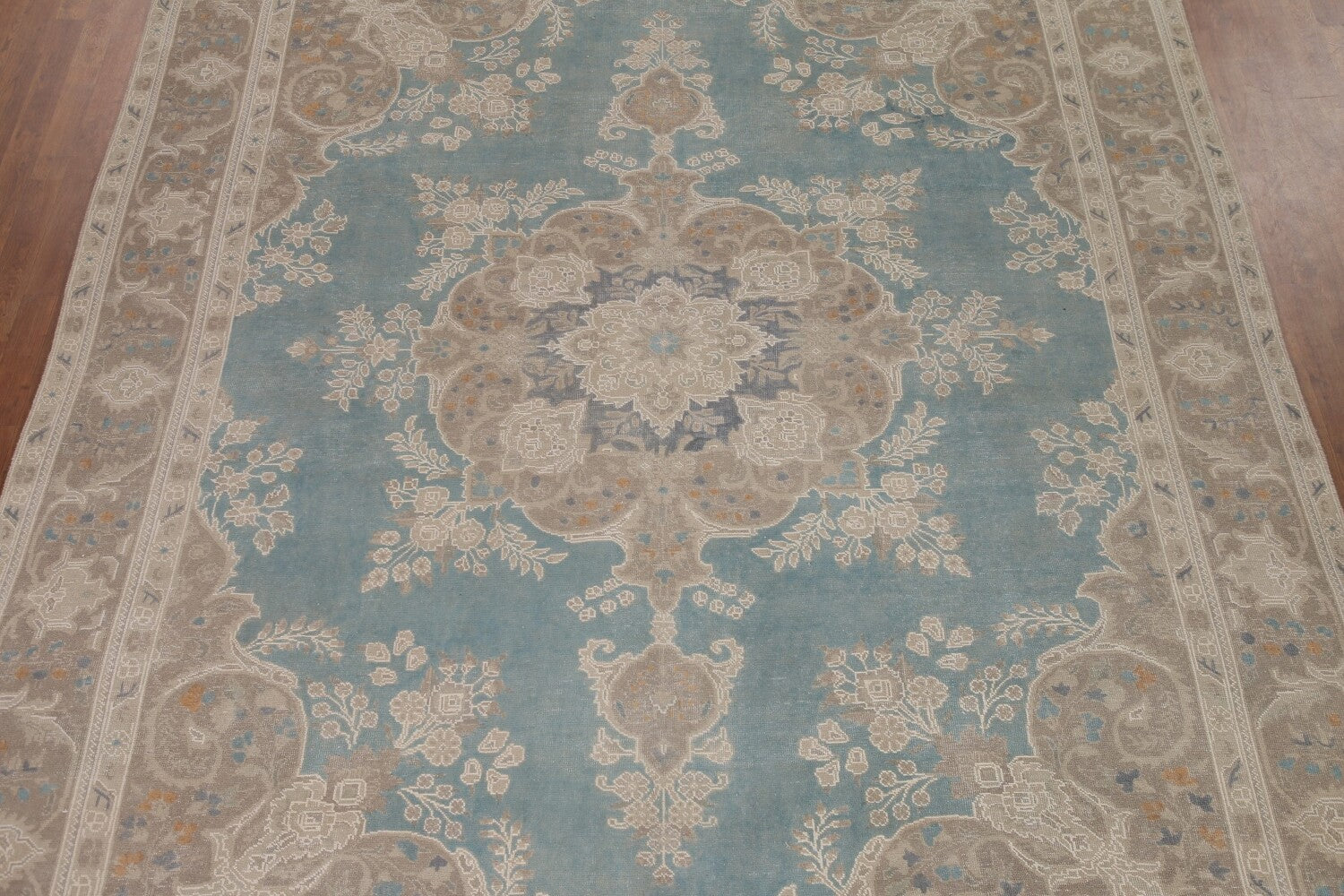A Beautiful Genuine Persia ( Persia ) Tabriz rug is Hand Knotted by skillful weavers in Persia ( Persia ) with 100% Wool Material. This rug is in Very Good condition. dimensions are 13' 0'' X 9' 8'' in foot and 396 X 295 in centimeter. the primary color is Navy Blue & Blues.