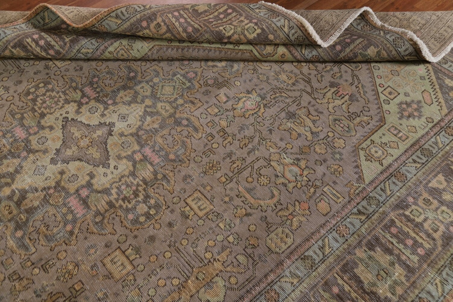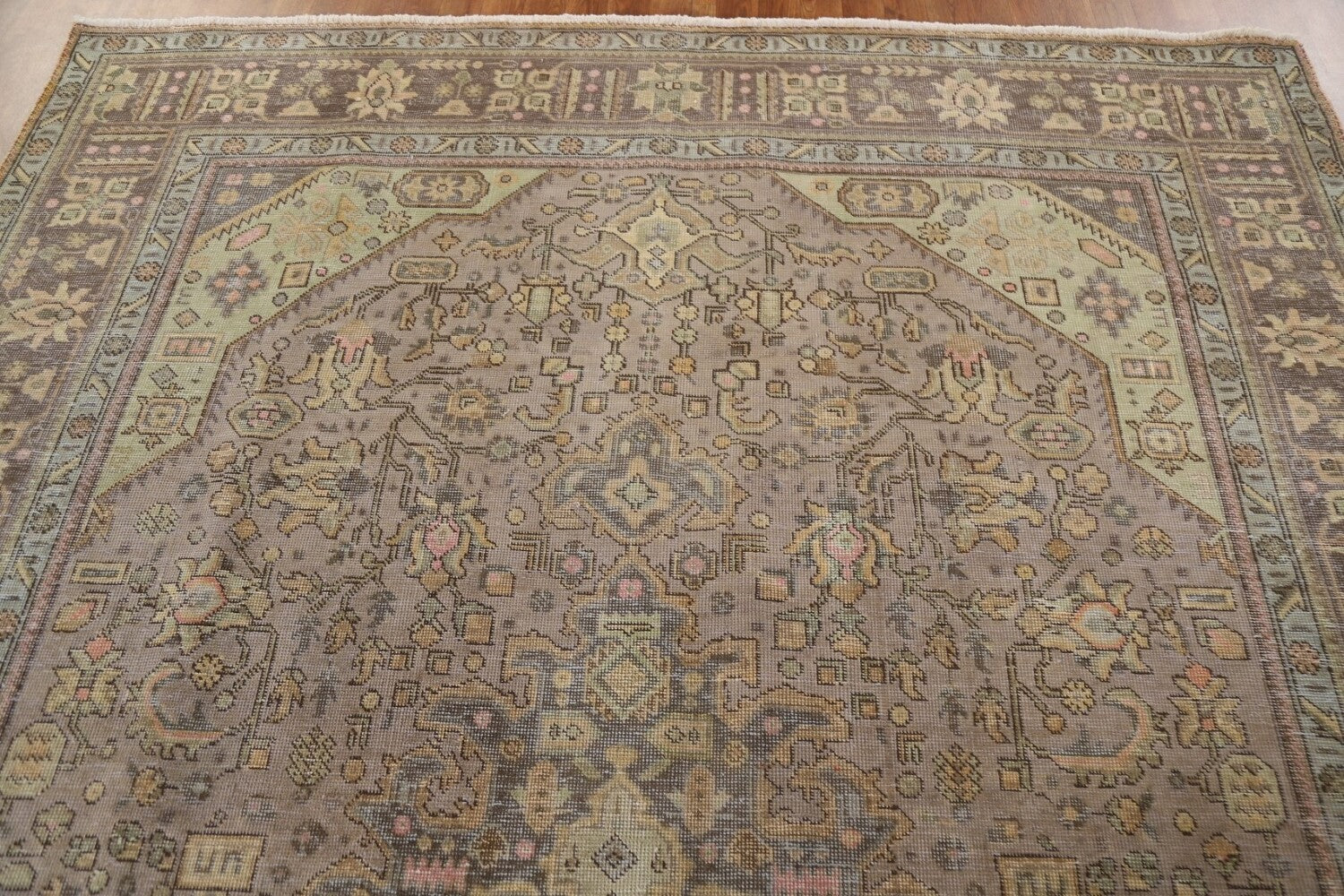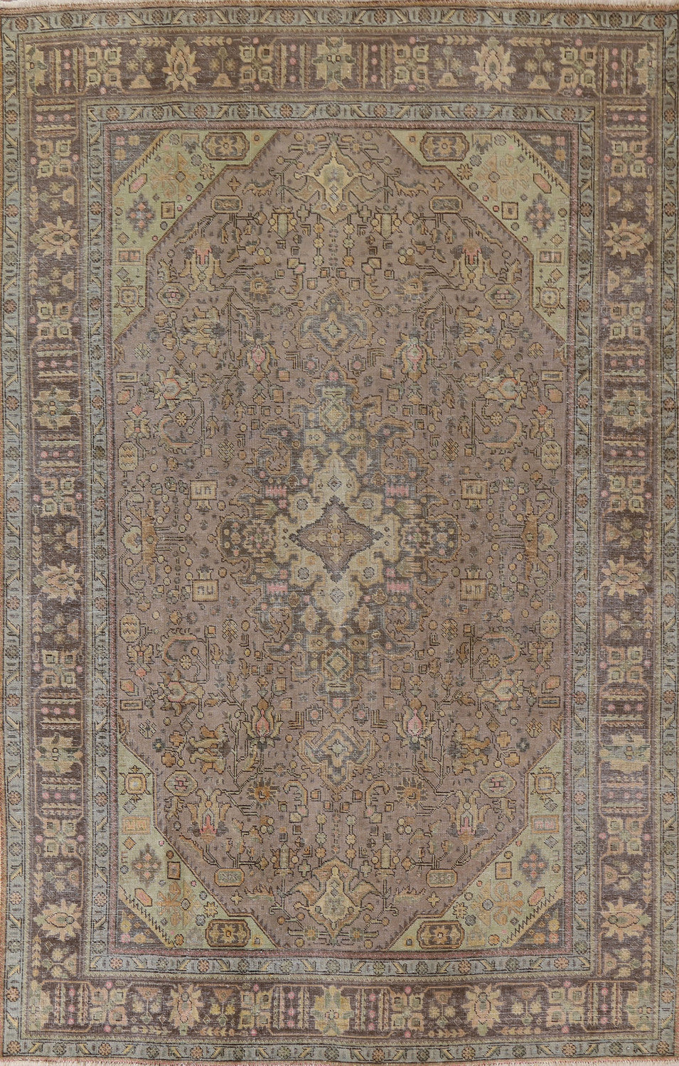 A Beautiful Genuine Persia ( Persia ) Tabriz rug is Hand Knotted by skillful weavers in Persia ( Persia ) with 100% Wool Material. This rug is in Very Good (Evenly Low Pile) condition. dimensions are 11' 1'' X 7' 10'' in foot and 338 X 239 in centimeter. the primary color is Brown.