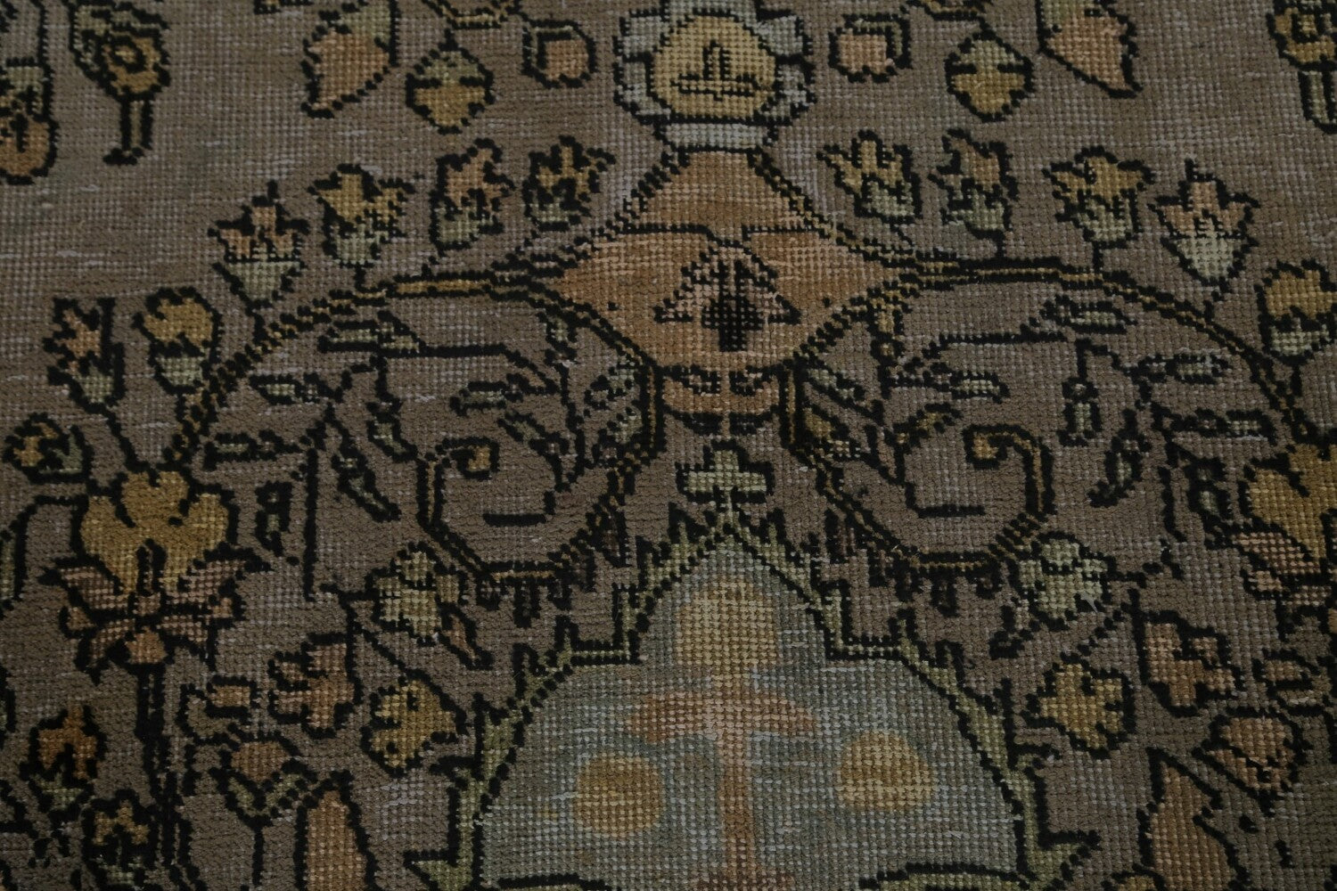A Beautiful Genuine Persia ( Persia ) Tabriz rug is Hand Knotted by skillful weavers in Persia ( Persia ) with 100% Wool Material. This rug is in Very Good (Evenly Low Pile) condition. dimensions are 11' 4'' X 7' 10'' in foot and 345 X 239 in centimeter. the primary color is Greys & Charcoal.
