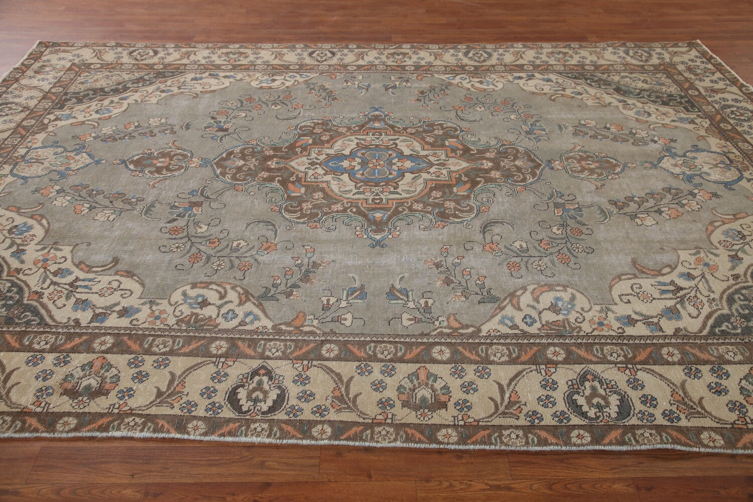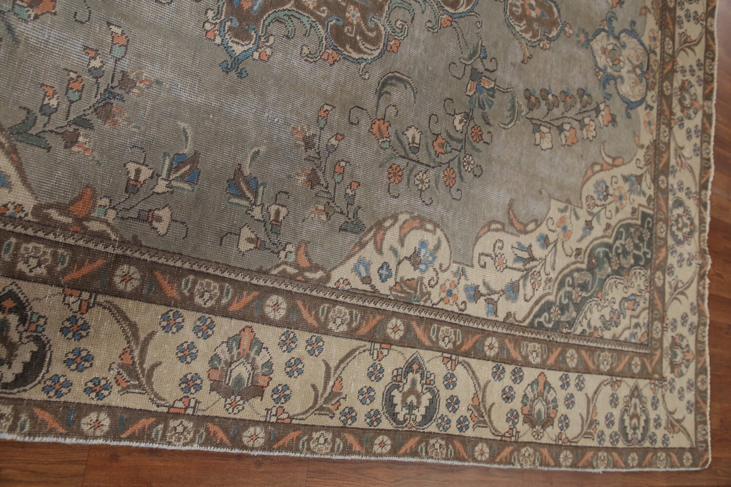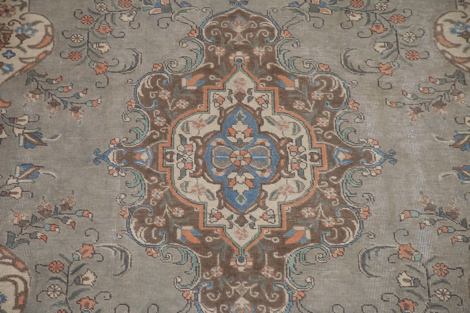 A Beautiful Genuine Persia ( Persia ) Tabriz rug is Hand Knotted by skillful weavers in Persia ( Persia ) with 100% Wool Material. This rug is in Very Good (Low Pile) condition. dimensions are 10' 9'' X 7' 2'' in foot and 328 X 218 in centimeter. the primary color is Greys & Charcoal.