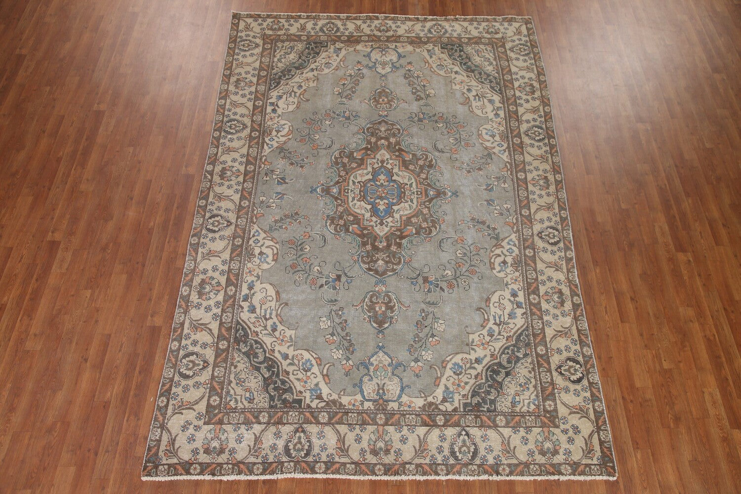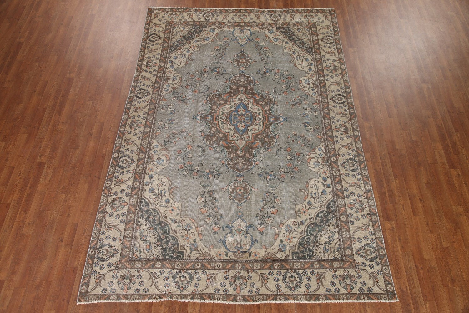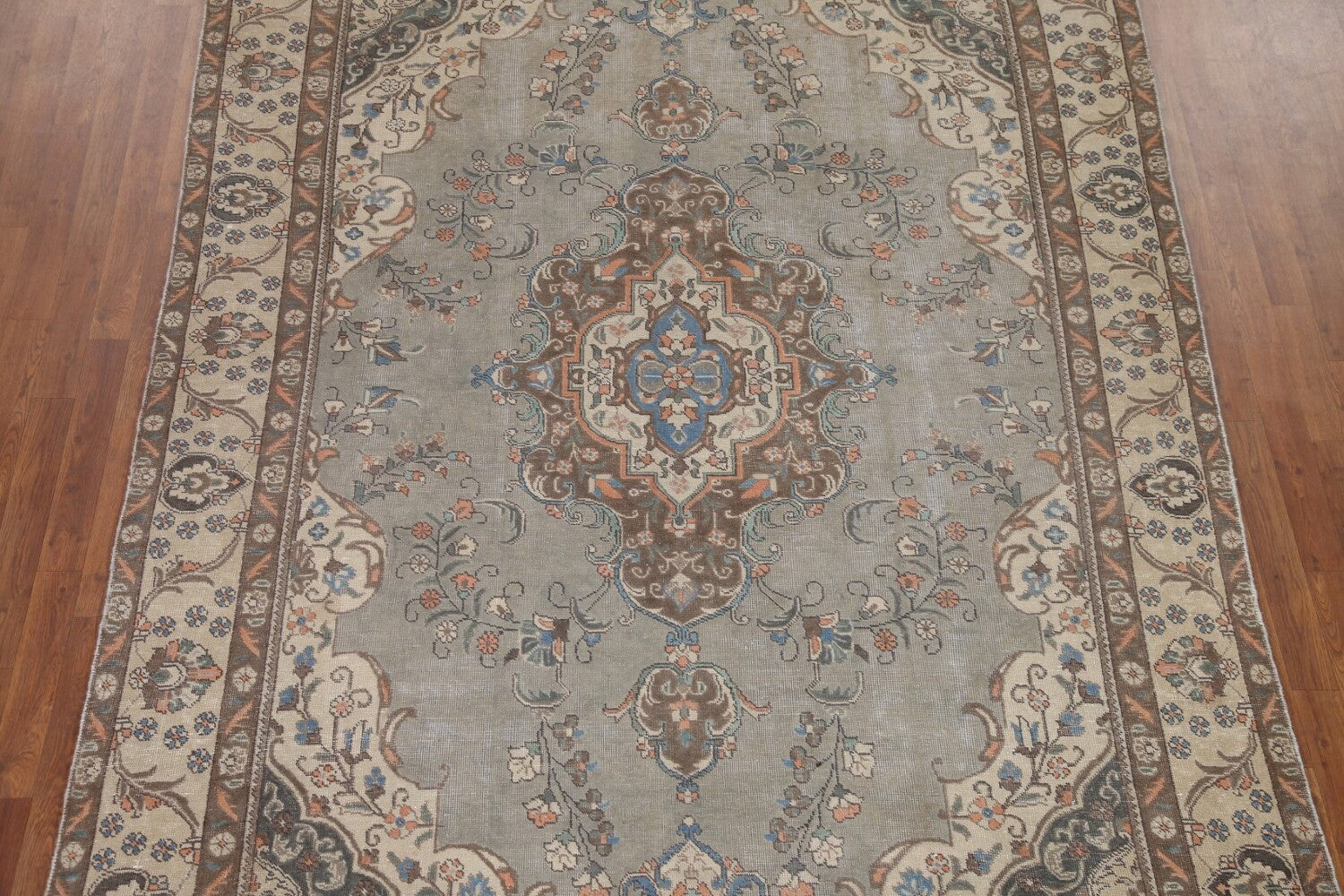 A Beautiful Genuine Persia ( Persia ) Tabriz rug is Hand Knotted by skillful weavers in Persia ( Persia ) with 100% Wool Material. This rug is in Very Good (Low Pile) condition. dimensions are 10' 9'' X 7' 2'' in foot and 328 X 218 in centimeter. the primary color is Greys & Charcoal.