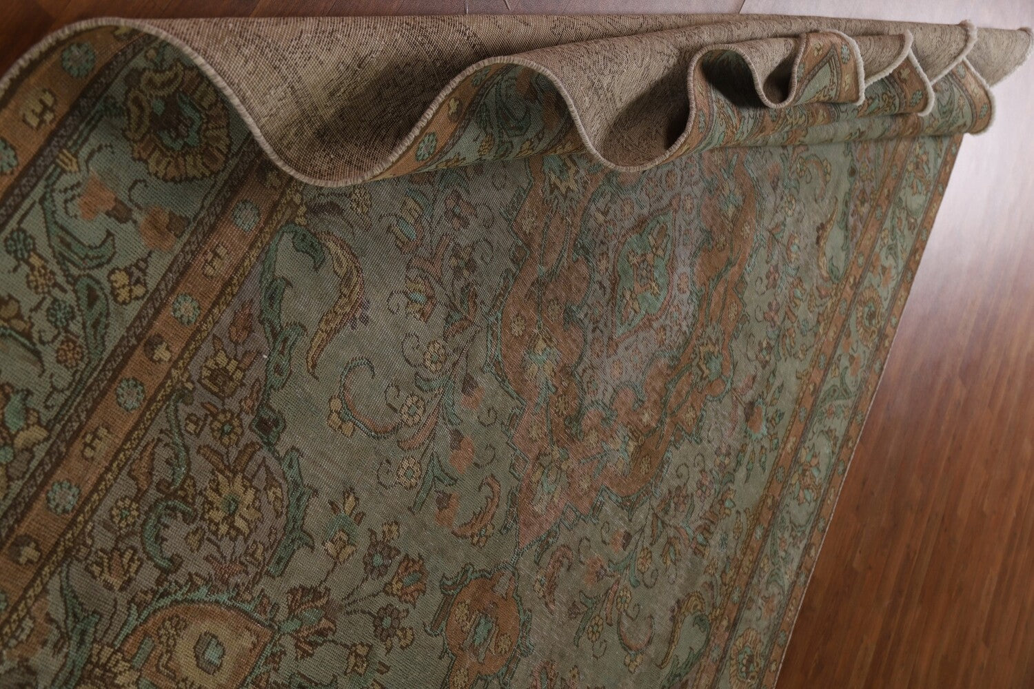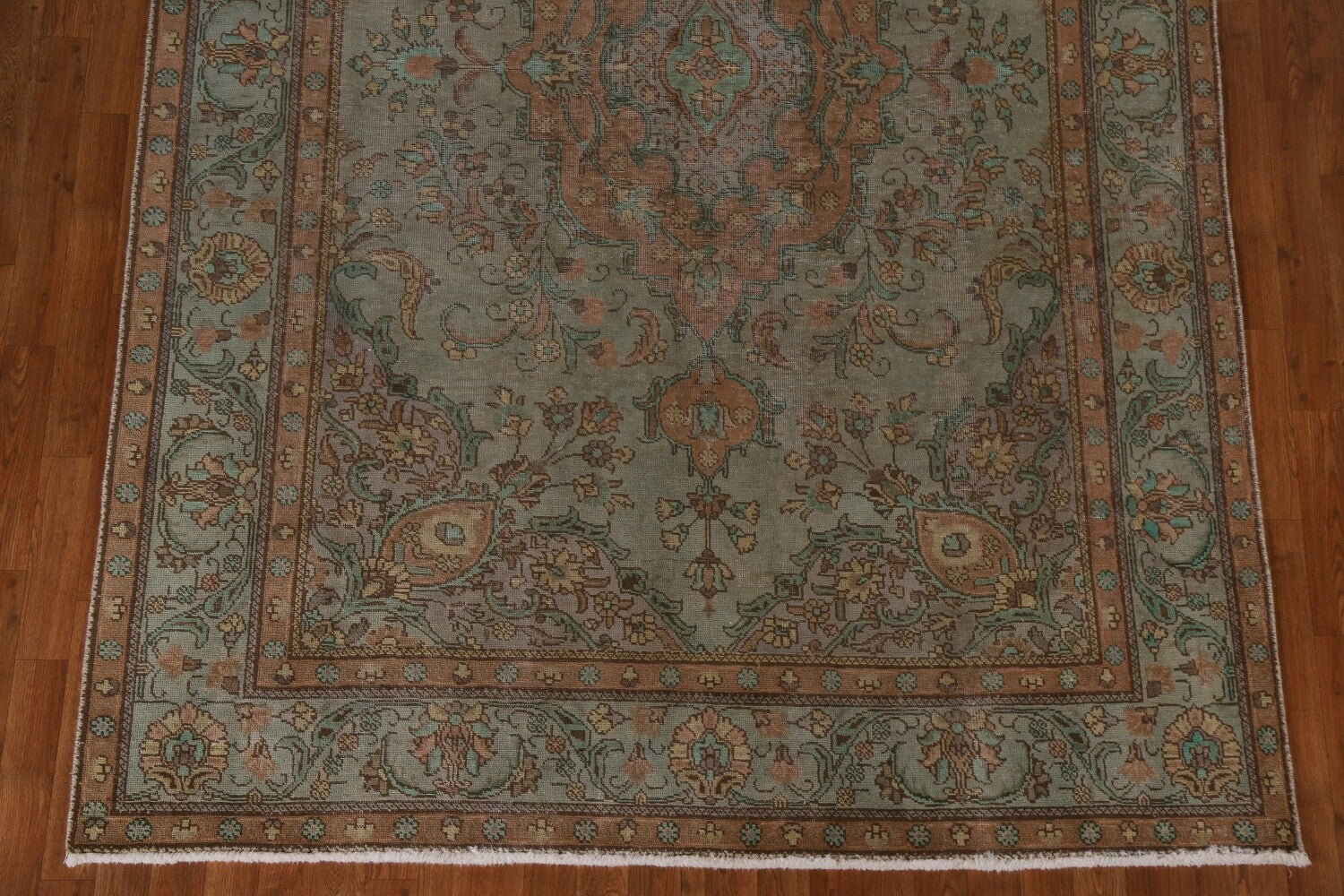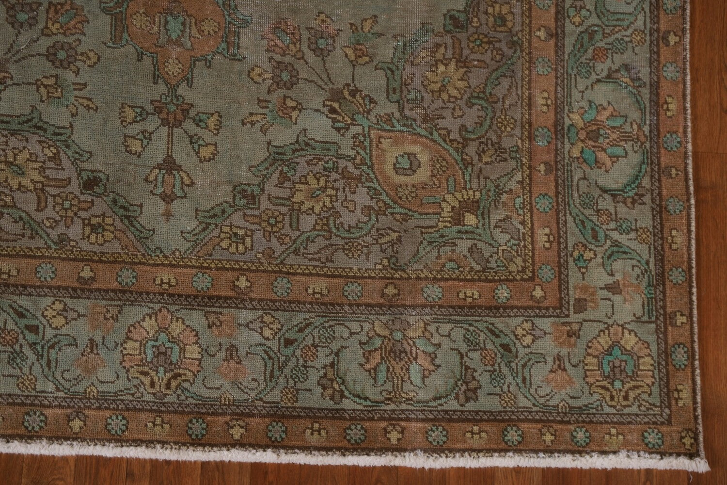 A Beautiful Genuine Persia ( Persia ) Tabriz rug is Hand Knotted by skillful weavers in Persia ( Persia ) with 100% Wool Material. This rug is in Very Good (Evenly Low Pile) condition. dimensions are 9' 9'' X 6' 5'' in foot and 297 X 196 in centimeter. the primary color is Green.