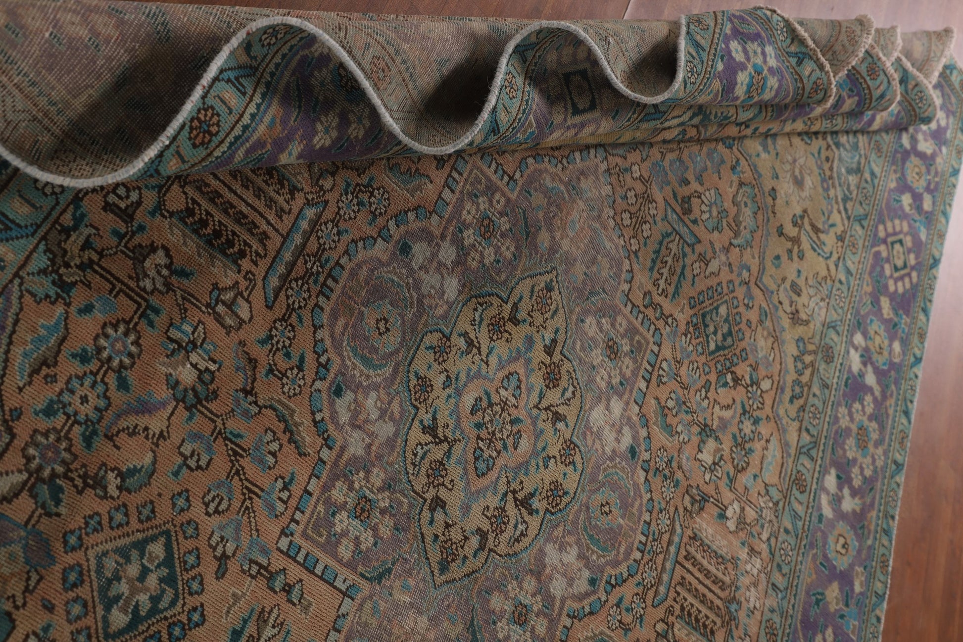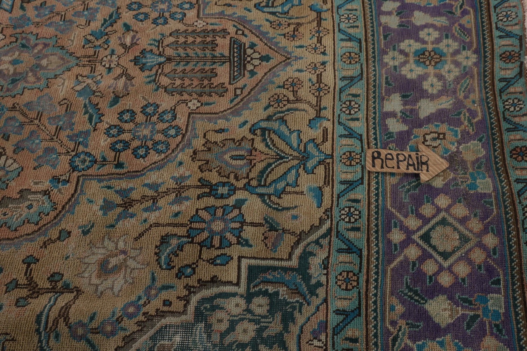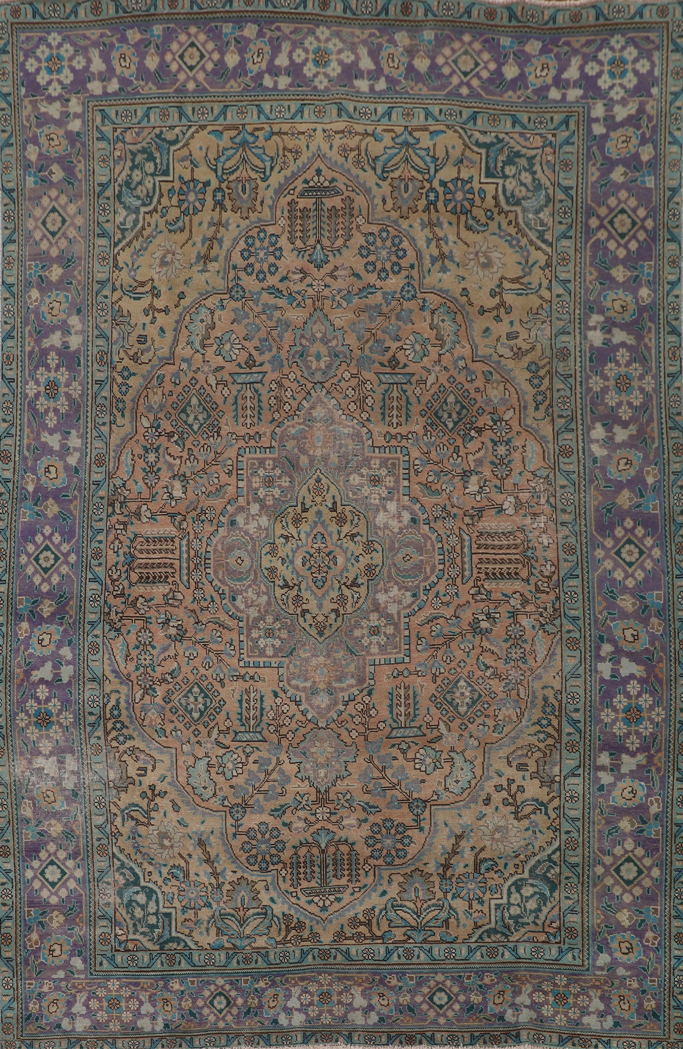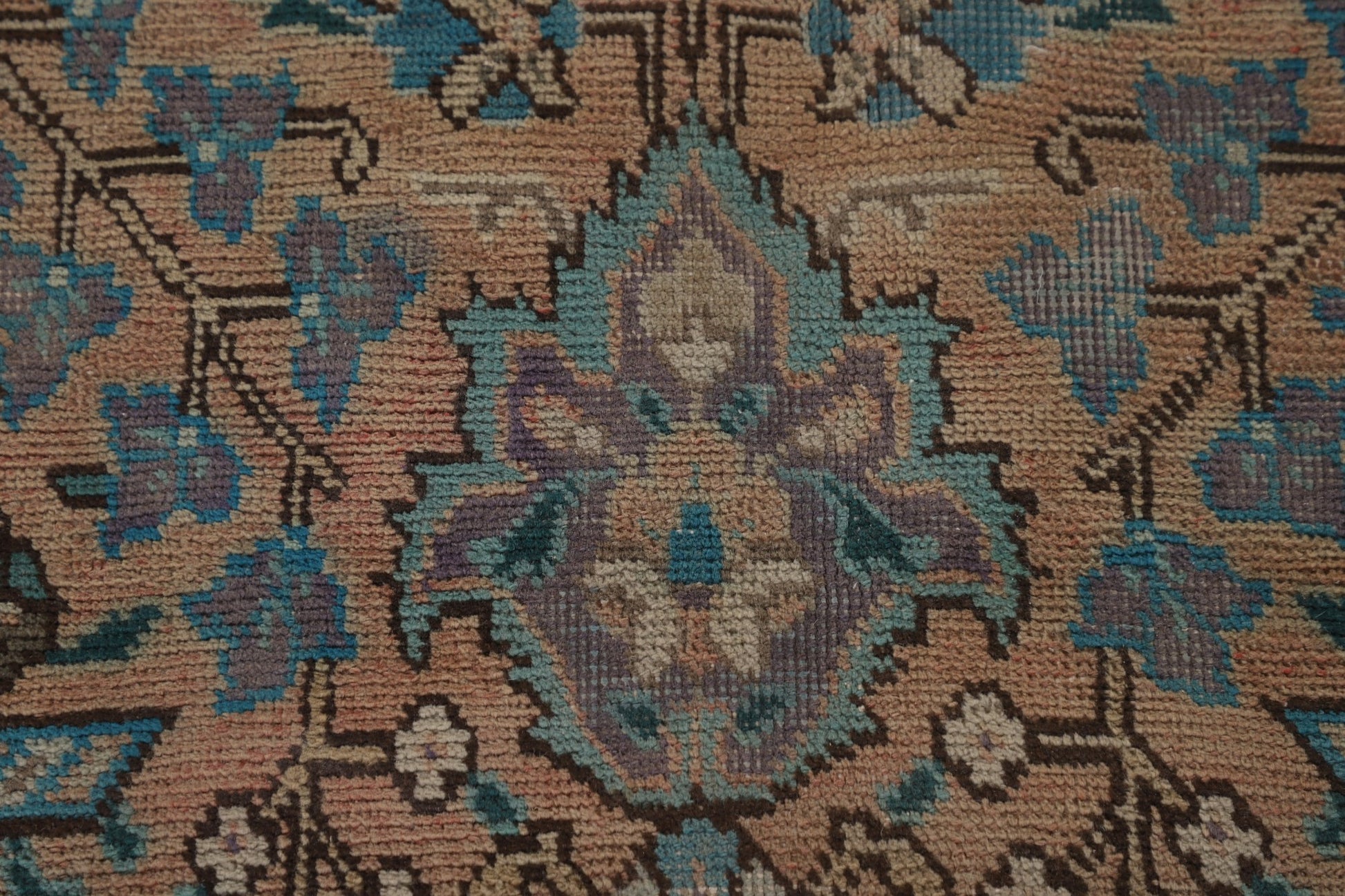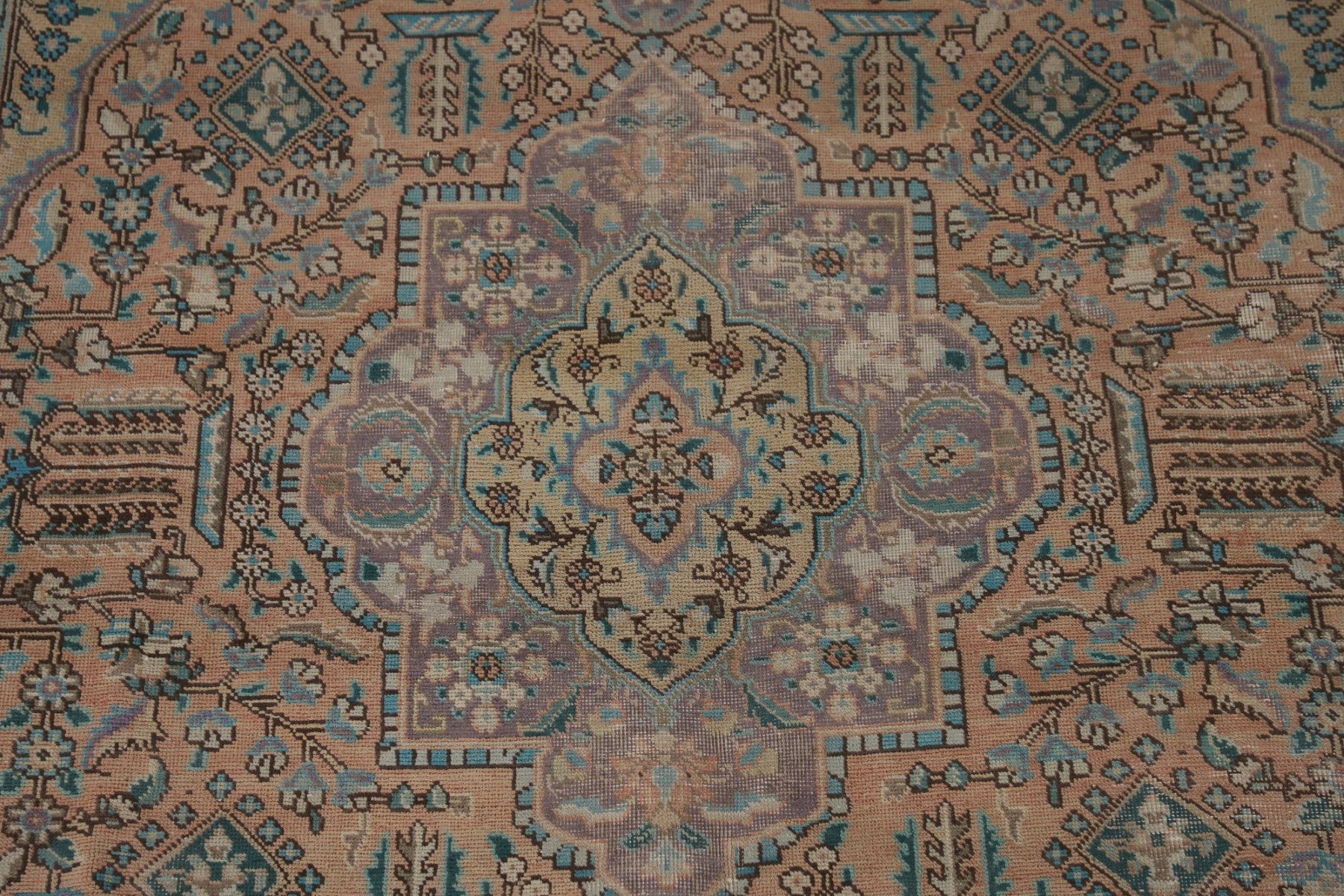 A Beautiful Genuine Persia ( Persia ) Tabriz rug is Hand Knotted by skillful weavers in Persia ( Persia ) with 100% Wool Material. This rug is in Very Good ( Evenly Low Pile-Repair) condition. dimensions are 10' 11'' X 7' 0'' in foot and 333 X 213 in centimeter. the primary color is Peach.