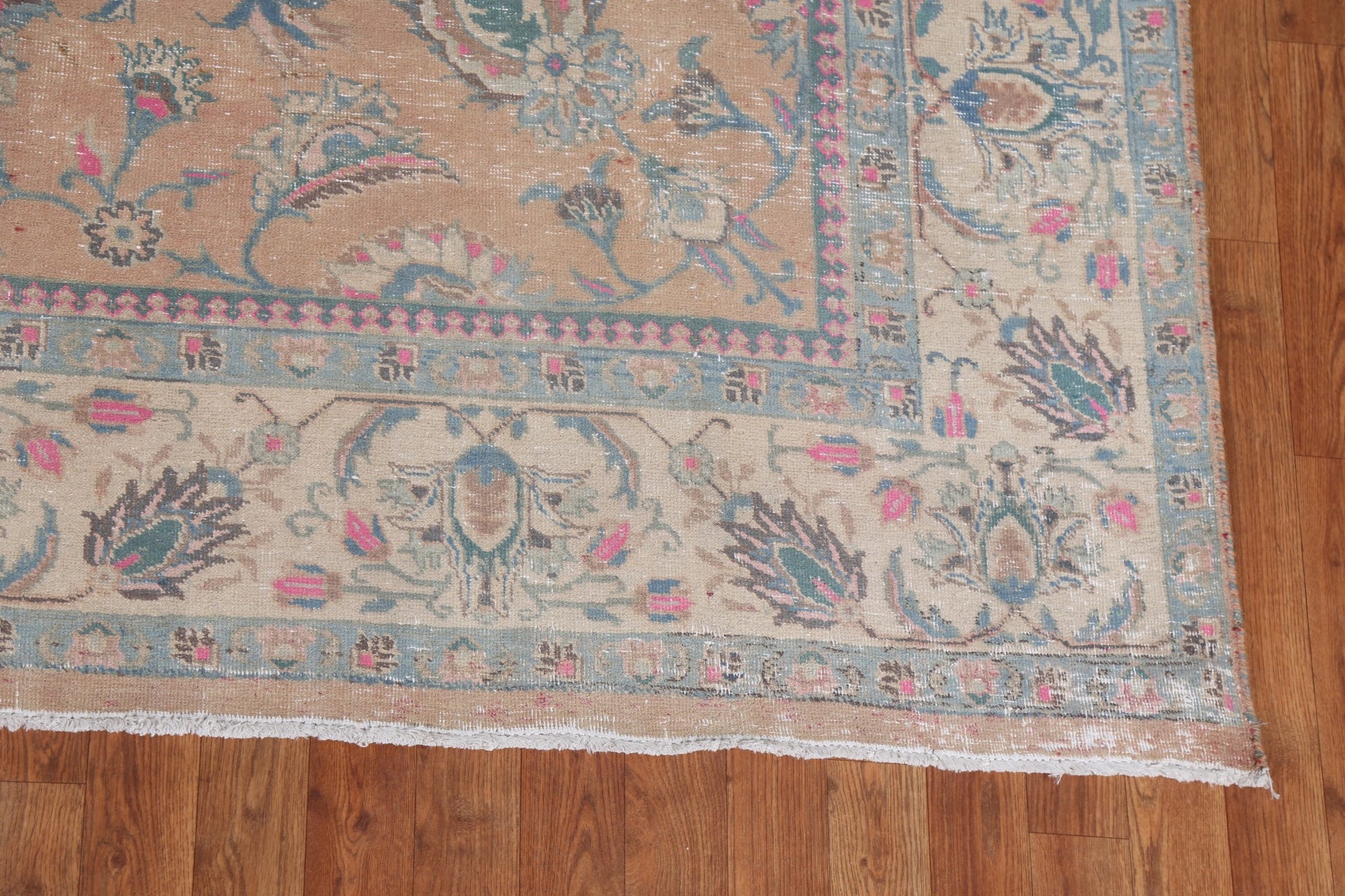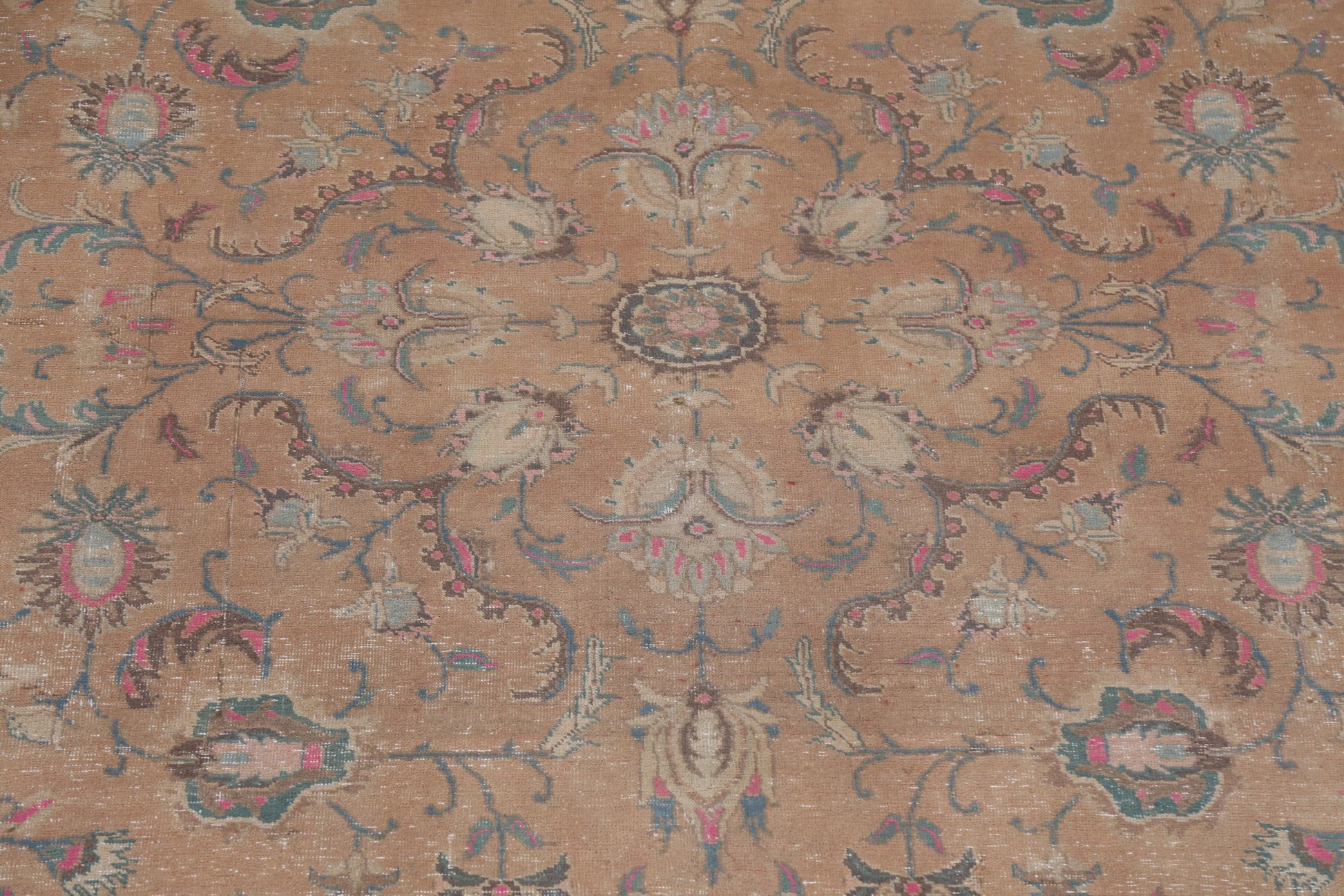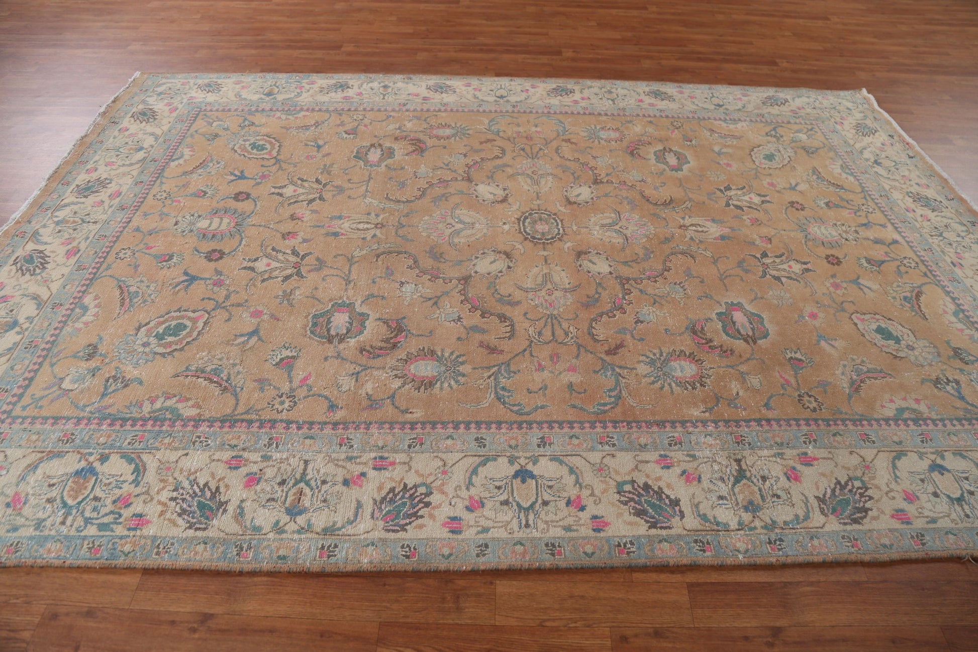 A Beautiful Genuine Persia ( Persia ) Tabriz rug is Hand Knotted by skillful weavers in Persia ( Persia ) with 100% Wool Material. This rug is in Very Good (Low Pile) condition. dimensions are 10' 2'' X 7' 0'' in foot and 310 X 213 in centimeter. the primary color is Peach.
