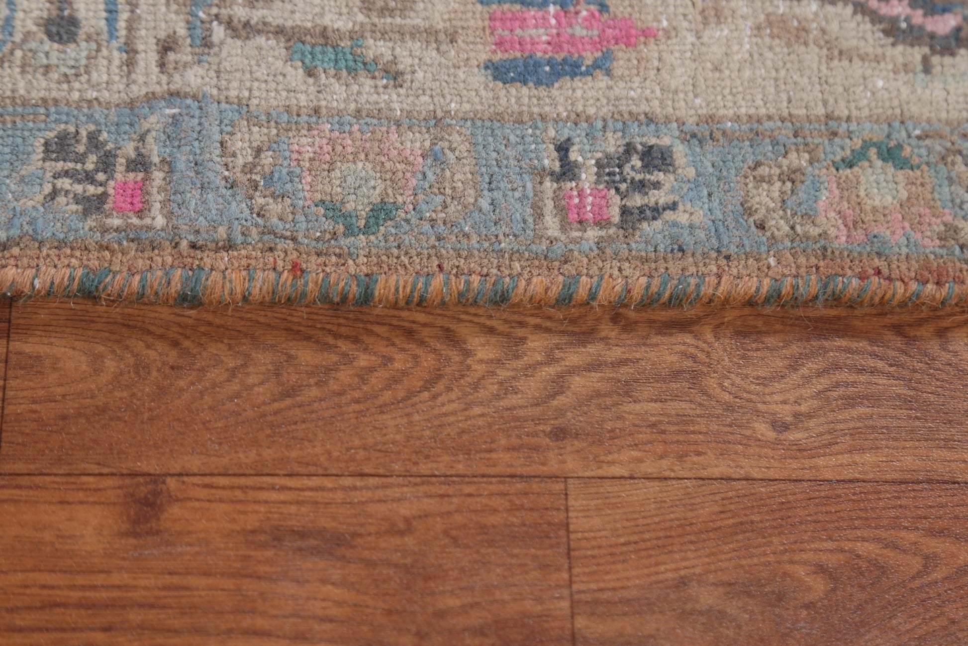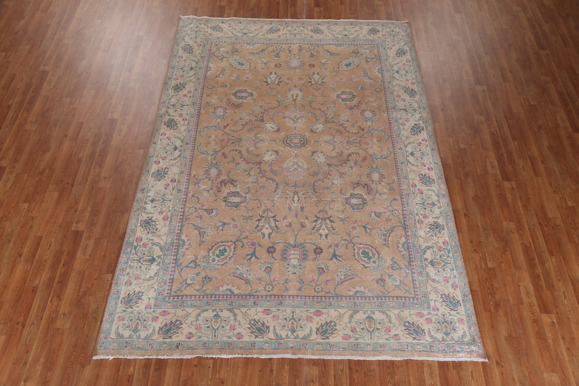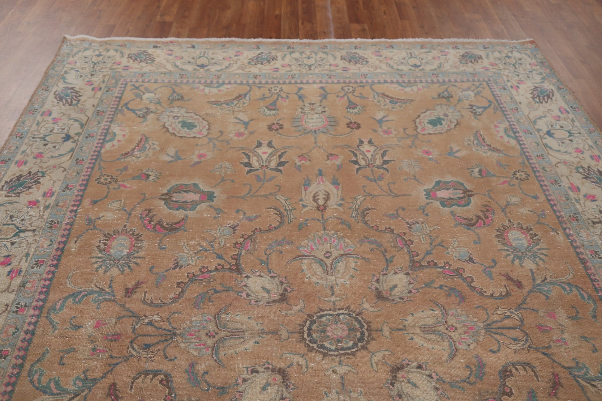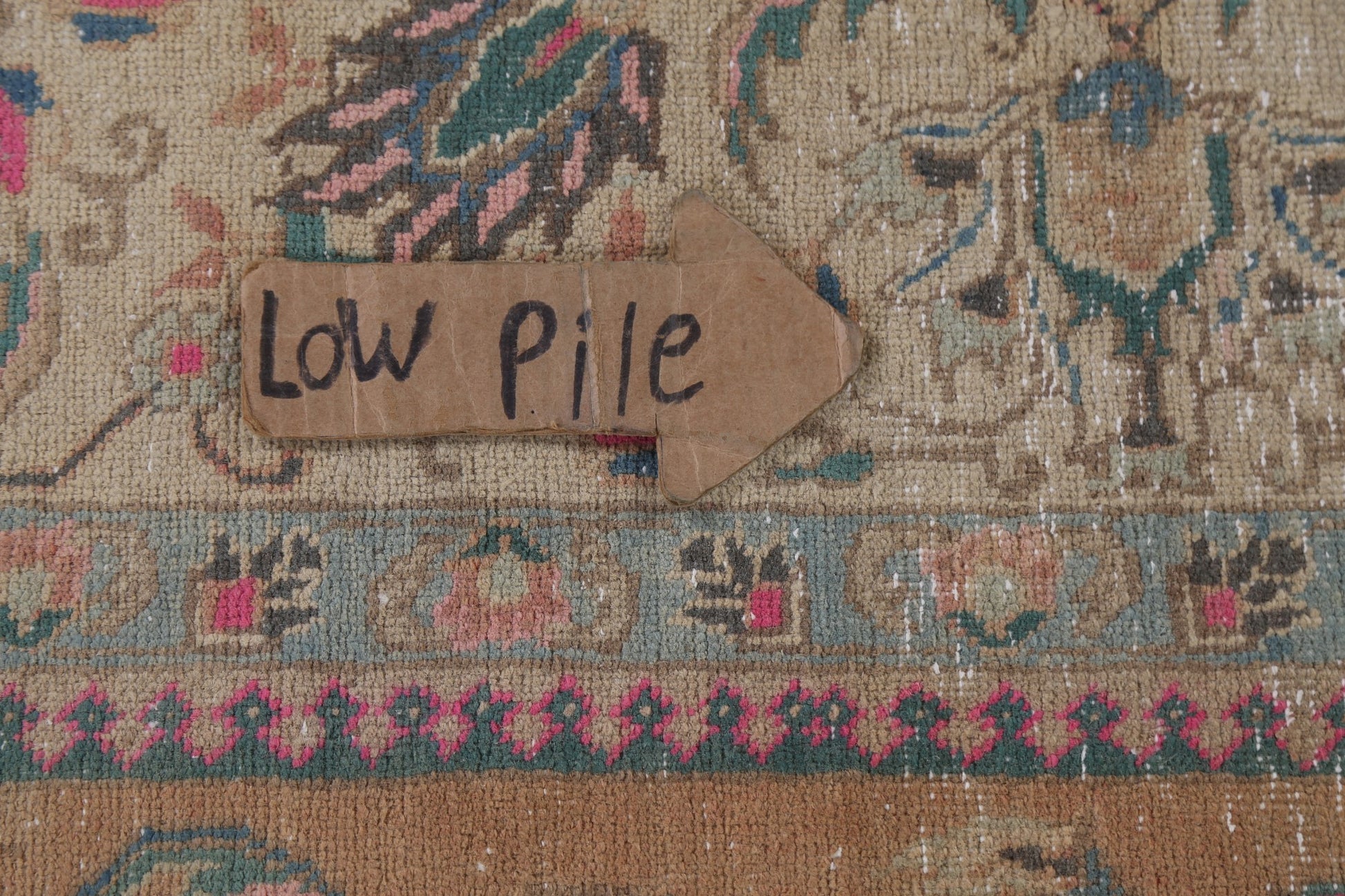 A Beautiful Genuine Persia ( Persia ) Tabriz rug is Hand Knotted by skillful weavers in Persia ( Persia ) with 100% Wool Material. This rug is in Very Good (Low Pile) condition. dimensions are 10' 2'' X 7' 0'' in foot and 310 X 213 in centimeter. the primary color is Peach.