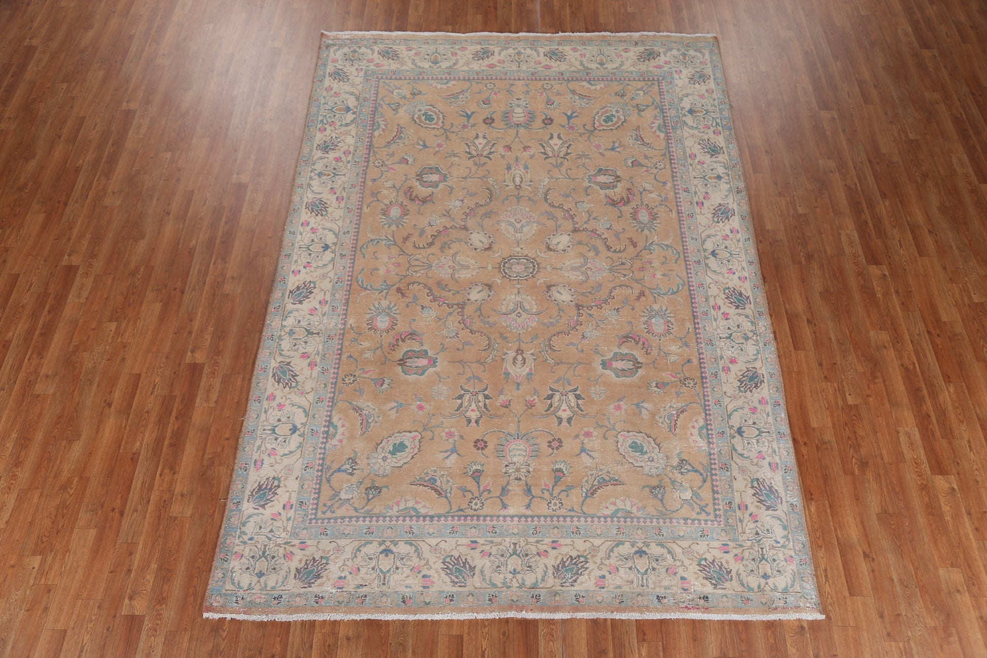 Overdyed Floral Tabriz Persian Wool Rug 7x10