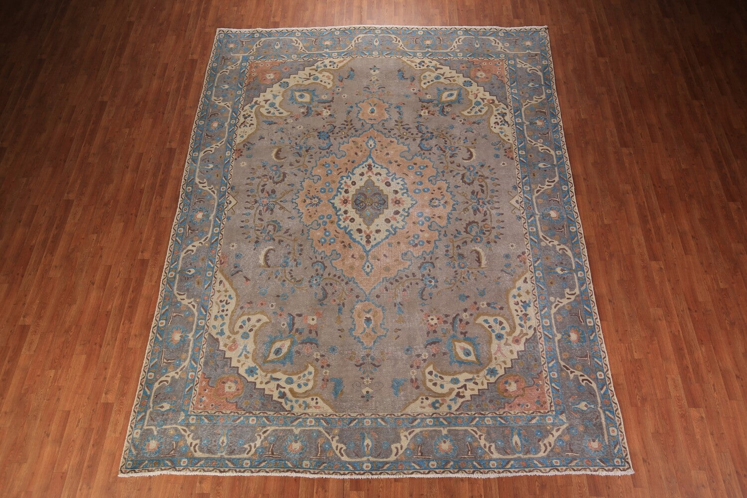 Overdyed Gray Wool Tabriz Persian Area Rug 10x13
