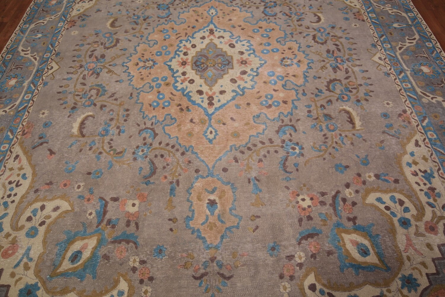 A Beautiful Genuine Persia ( Persia ) Tabriz rug is Hand Knotted by skillful weavers in Persia ( Persia ) with 100% Wool Material. This rug is in Very Good (Evenly Low Pile) condition. dimensions are 12' 7'' X 9' 8'' in foot and 384 X 295 in centimeter. the primary color is Greys & Charcoal.