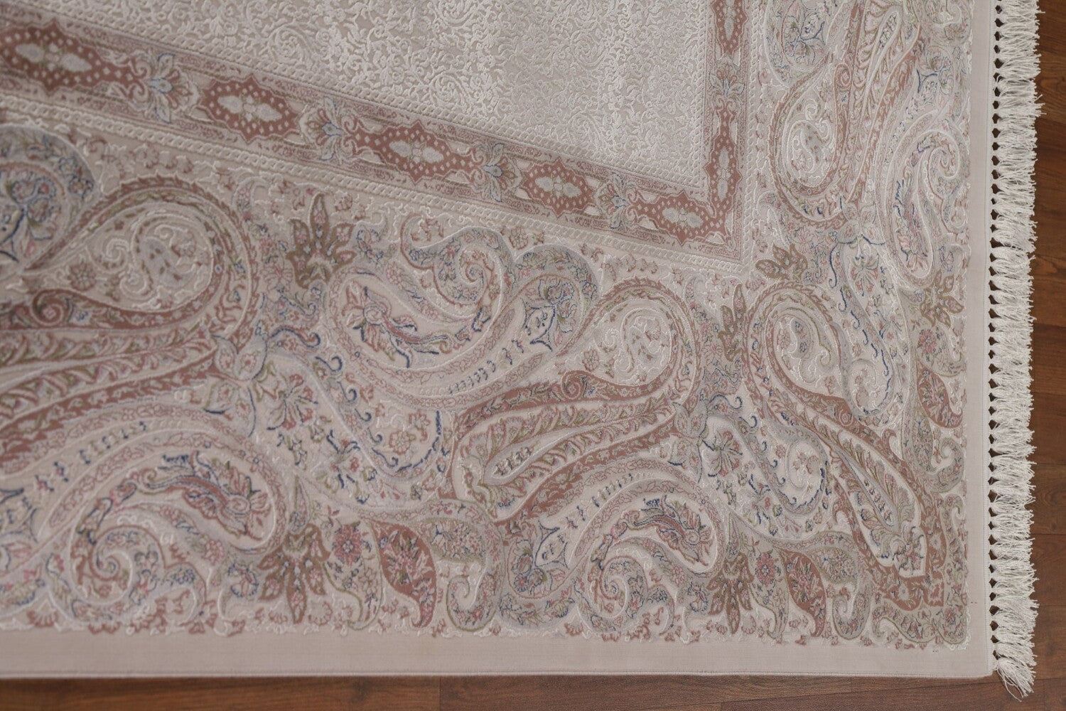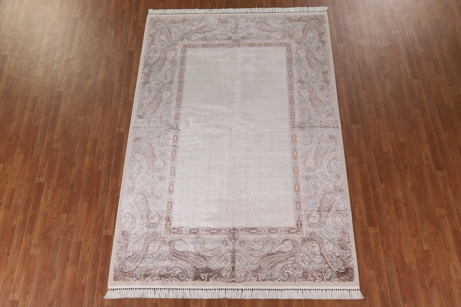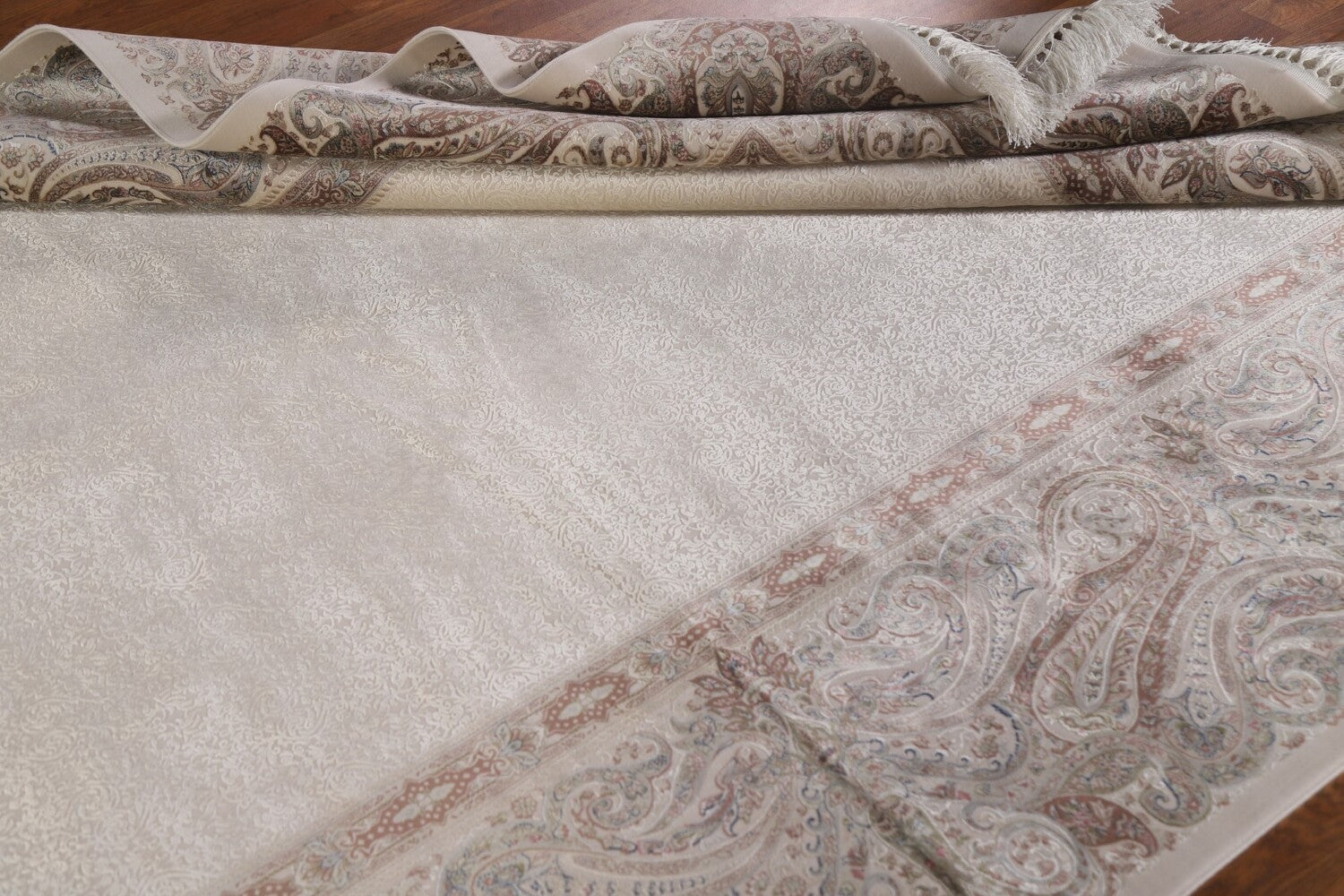 A Beautiful Genuine Turkey Tabriz rug is Machine Made by skillful weavers in Turkey with 90% Silk - 10% Polyester Material. This rug is in condition. dimensions are 9' 8'' X 6' 6'' in foot and 295 X 198 in centimeter. the primary color is Beige & Ivories.