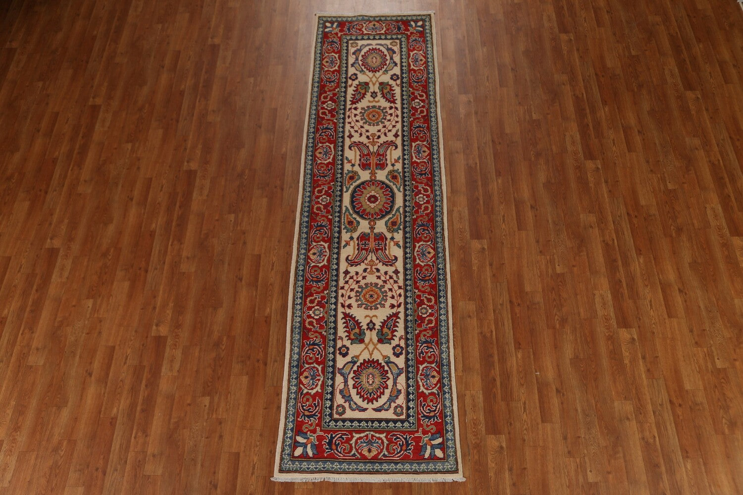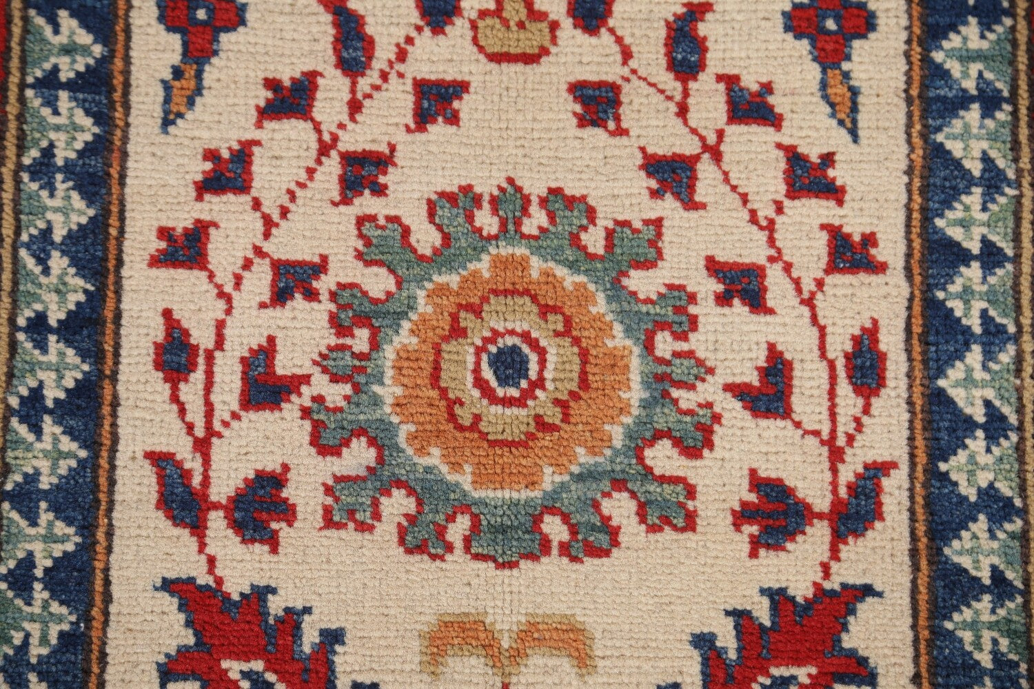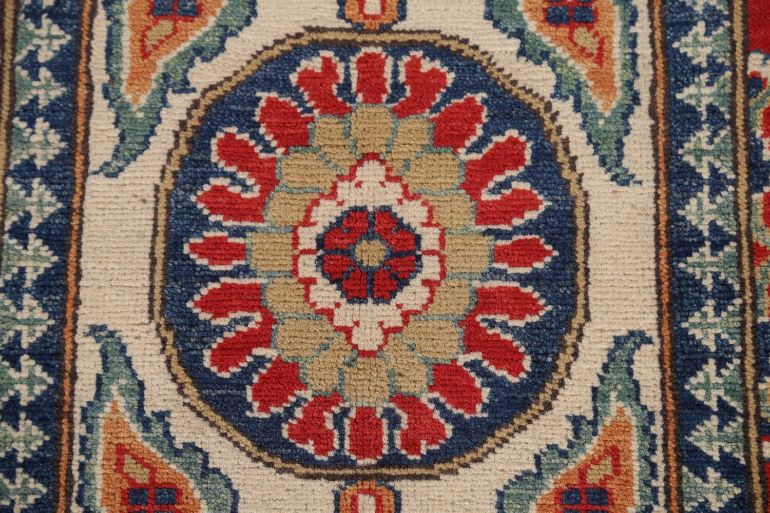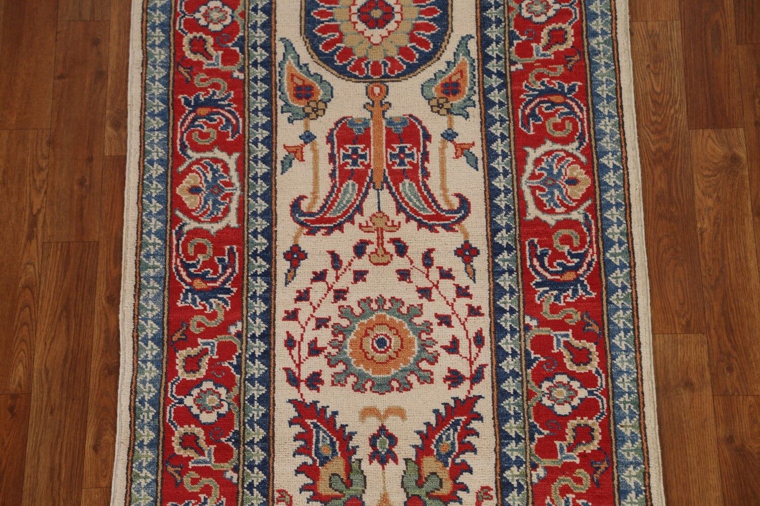 Paisley Ivory Kazak Wool Runner Rug 3x10