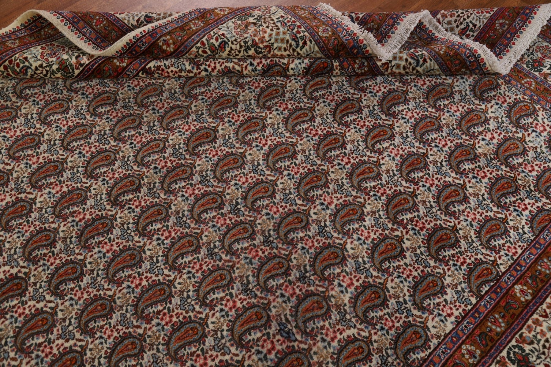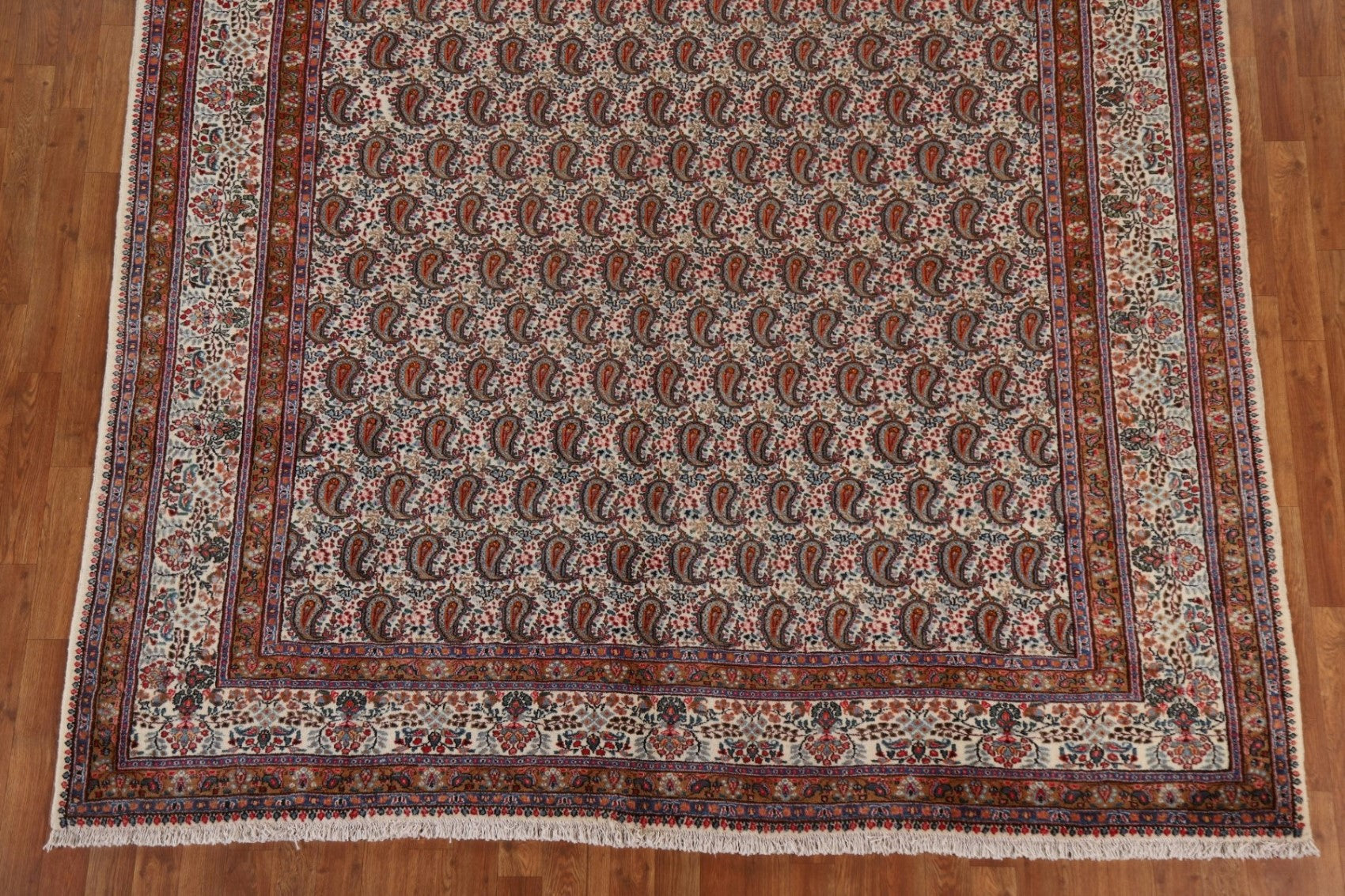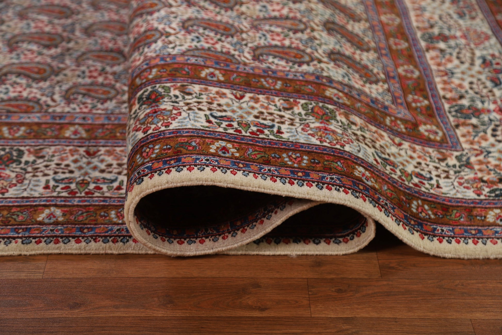 A Beautiful Genuine Persia ( Persia ) Mood rug is Hand Knotted by skillful weavers in Persia ( Persia ) with 100% Wool Material. This rug is in Very Good condition. dimensions are 11' 0'' X 7' 8'' in foot and 335 X 234 in centimeter. the primary color is Beige & Ivories.