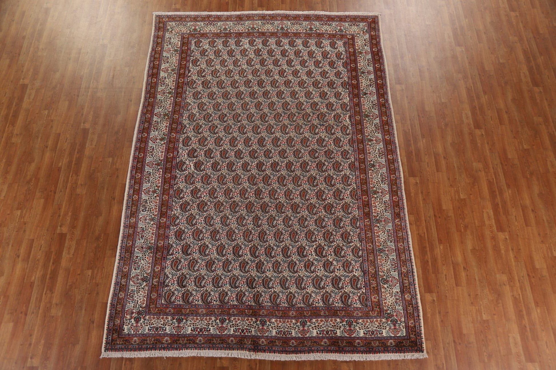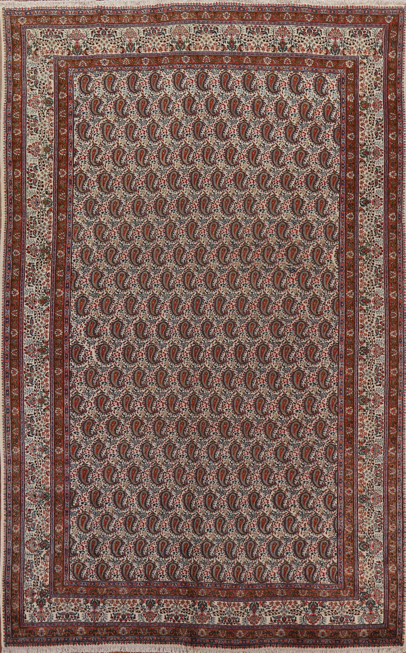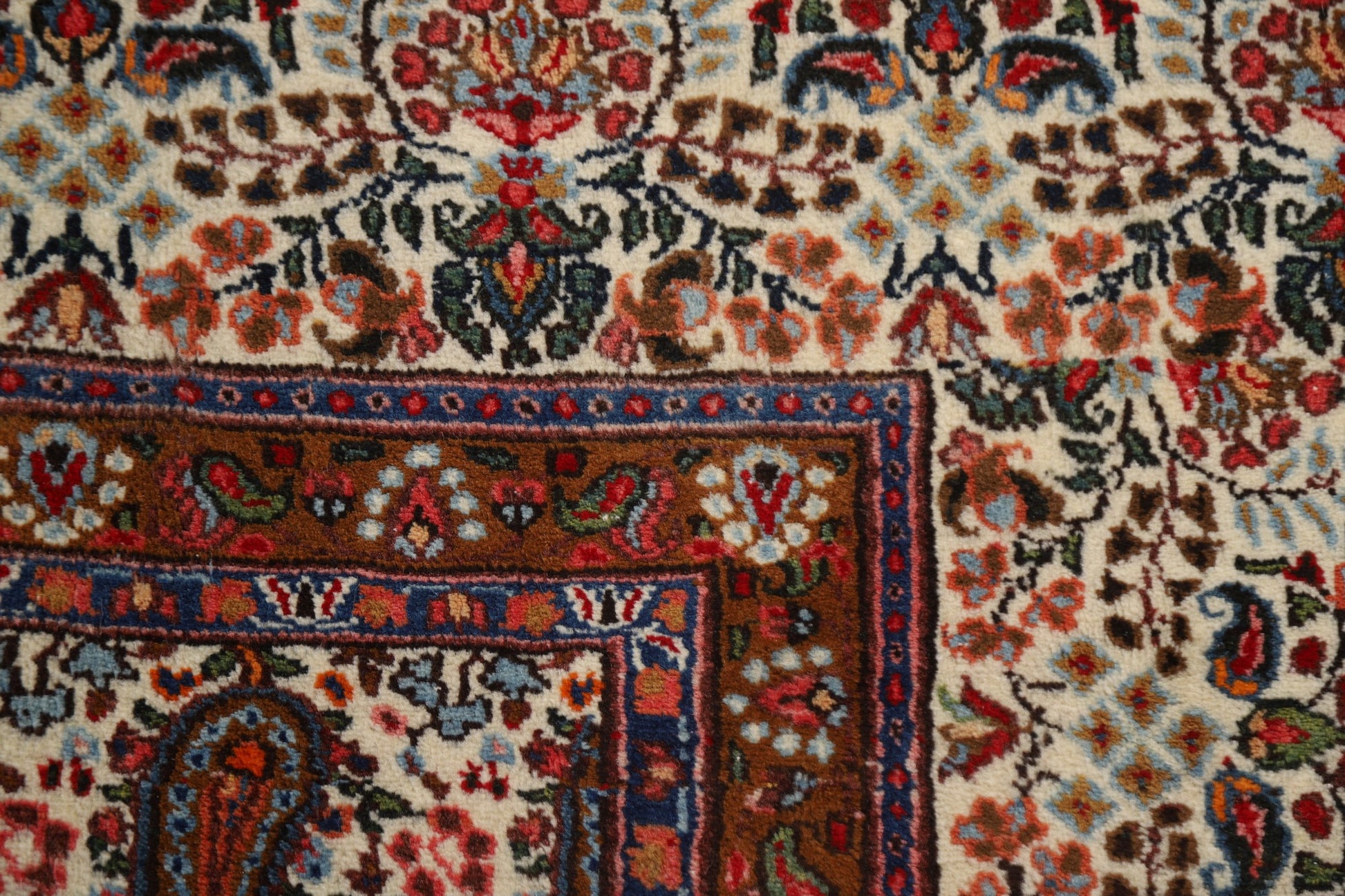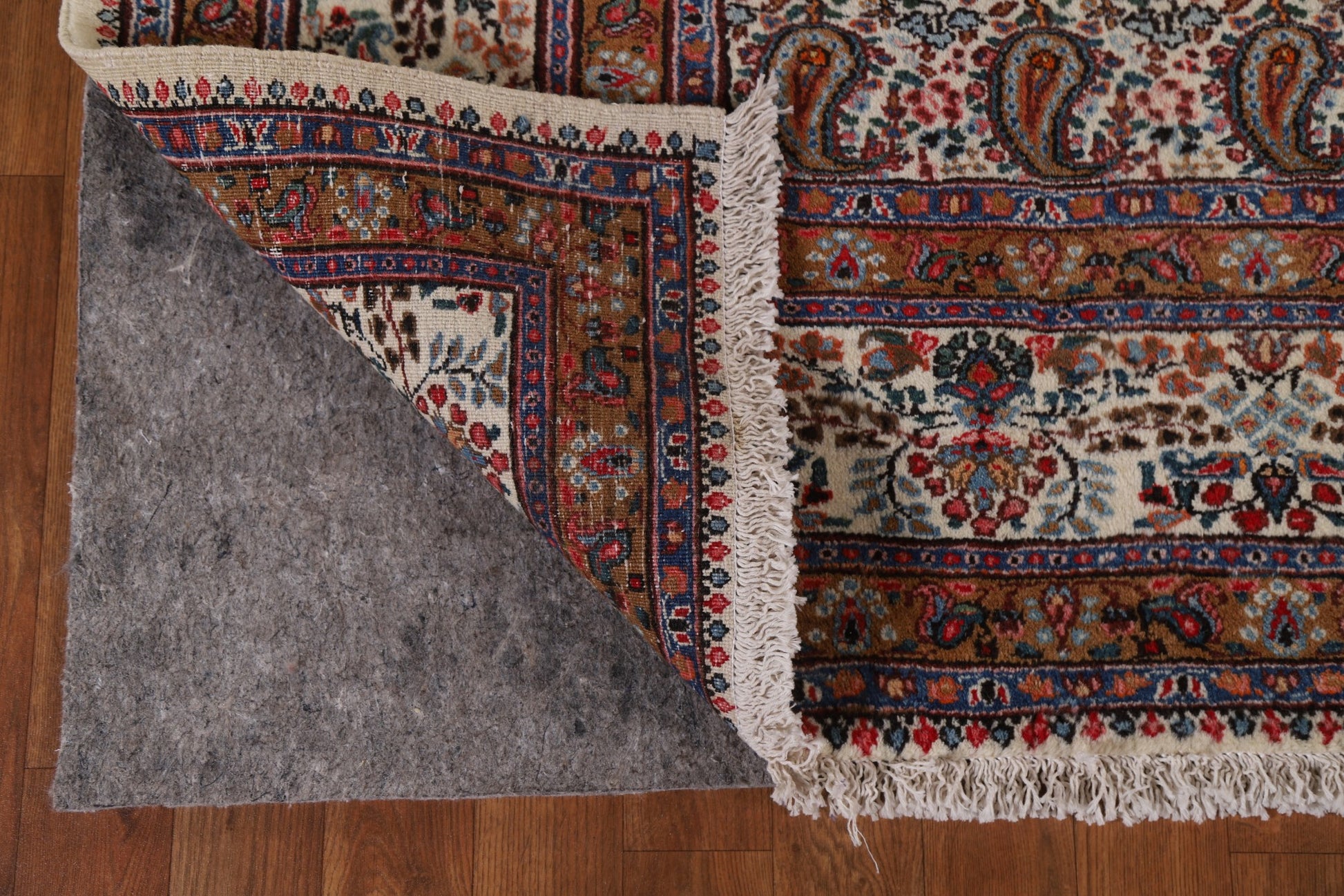 A Beautiful Genuine Persia ( Persia ) Mood rug is Hand Knotted by skillful weavers in Persia ( Persia ) with 100% Wool Material. This rug is in Very Good condition. dimensions are 11' 0'' X 7' 8'' in foot and 335 X 234 in centimeter. the primary color is Beige & Ivories.