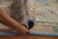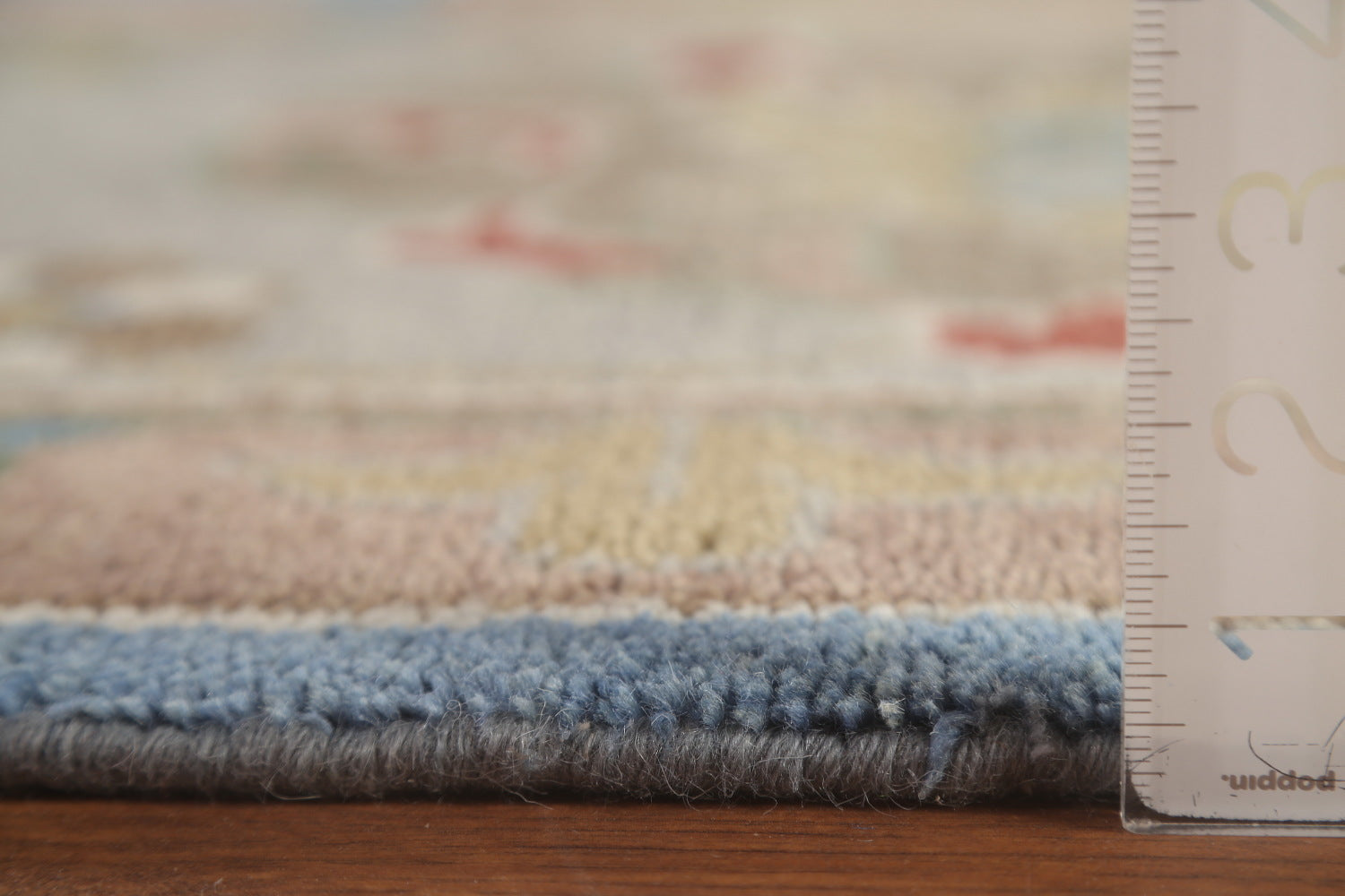 A Beautiful Genuine India Oushak rug is Hand Knotted by skillful weavers in India with 100% Wool Material. This rug is in New, First Quality condition. dimensions are 14' 11'' X 12' 0'' in foot and 455 X 366 in centimeter. the primary color is Navy Blue & Blues.