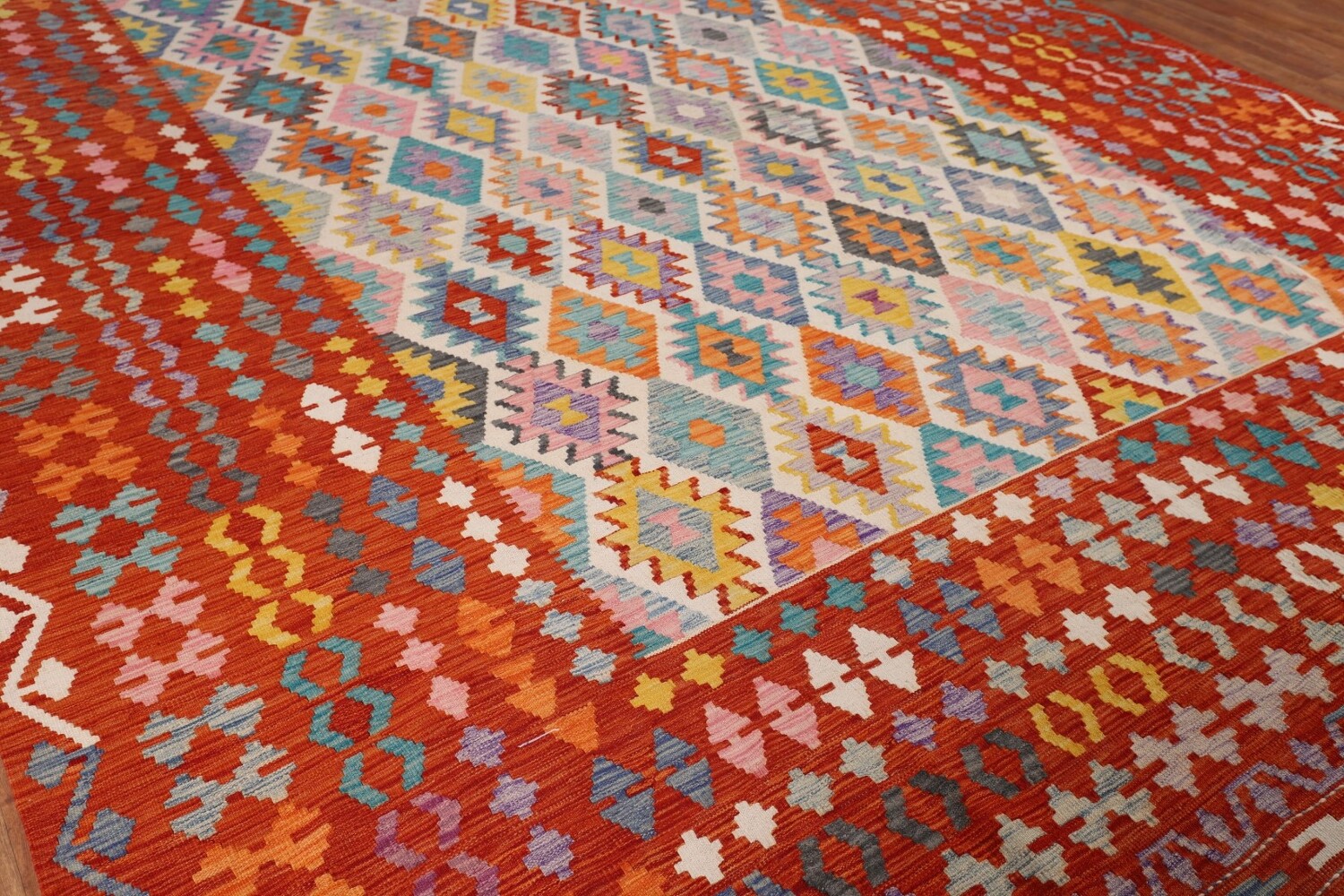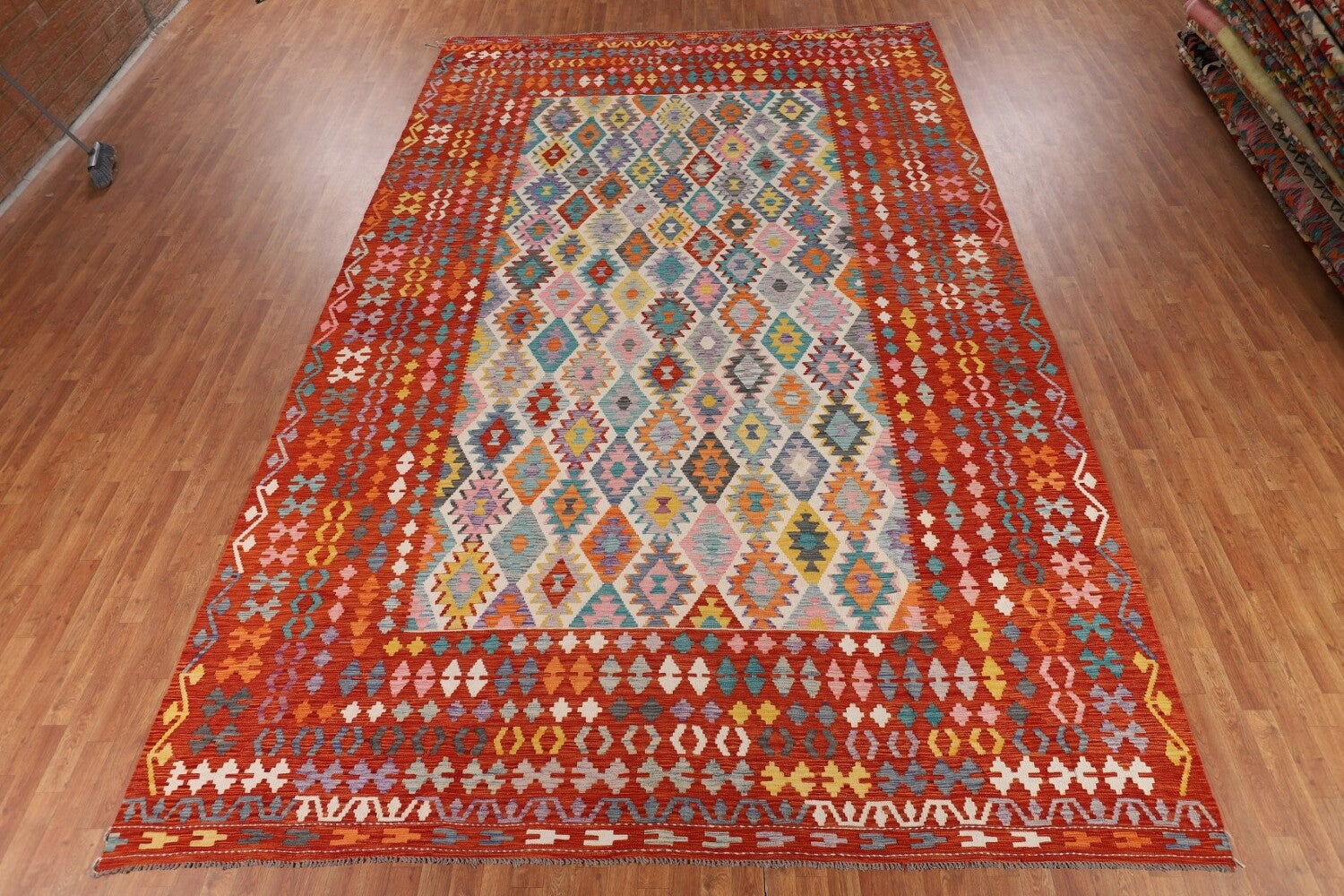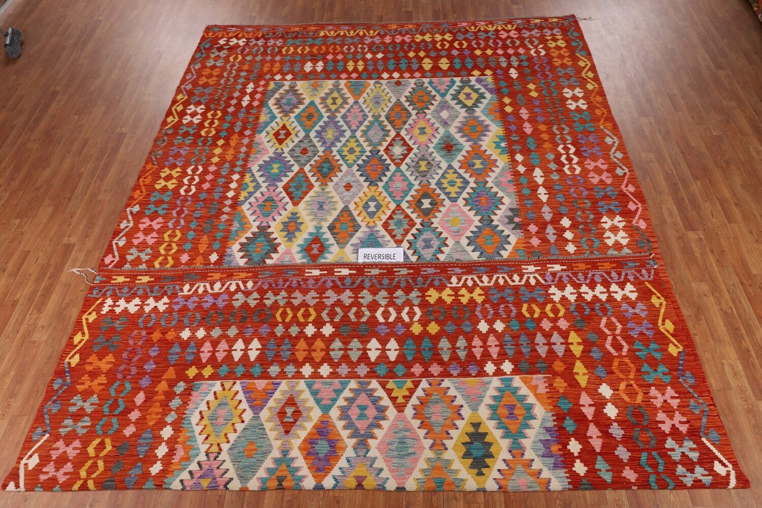Palace Size Geometric Kilim Reversible Wool Rug 10x16