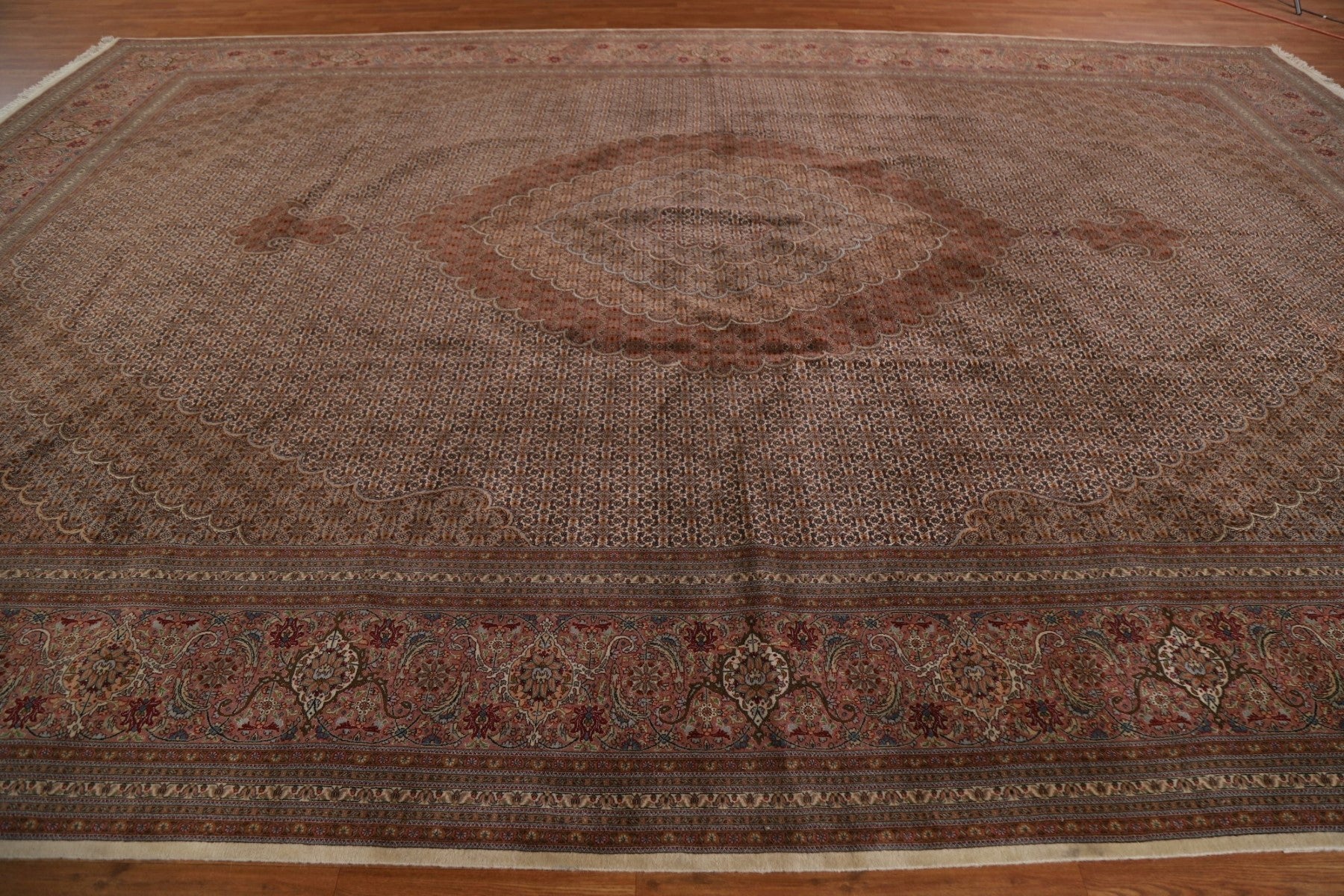 A Beautiful Genuine Persia ( Persia ) Tabriz rug is Hand Knotted by skillful weavers in Persia ( Persia ) with 100% Wool Material. This rug is in condition. dimensions are 16' 6'' X 11' 4'' in foot and 503 X 345 in centimeter. the primary color is Brown.