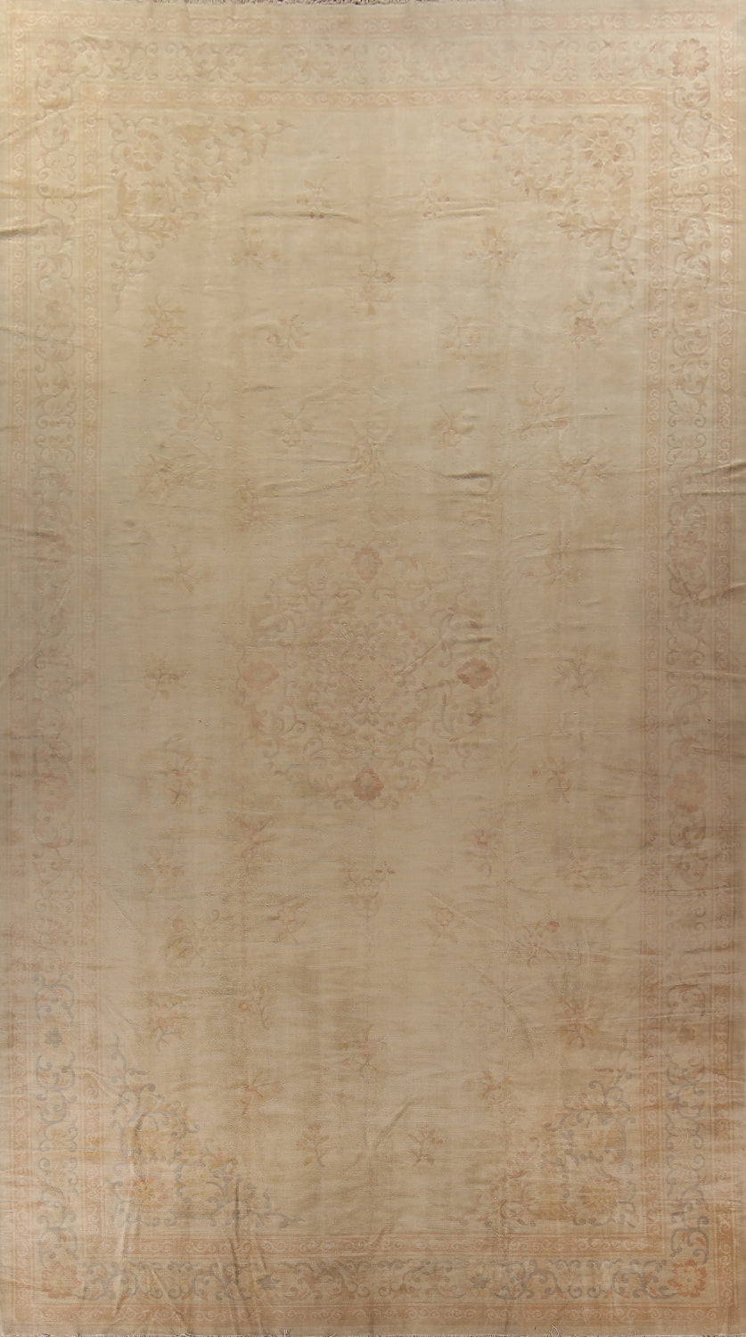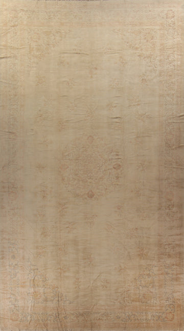 A Beautiful Genuine Turkey Oushak rug is Hand Knotted by skillful weavers in Turkey with 100% Wool Material. This rug is in Very Good condition. dimensions are 21' 7'' X 11' 10'' in foot and 658 X 361 in centimeter. the primary color is Beige & Ivories.