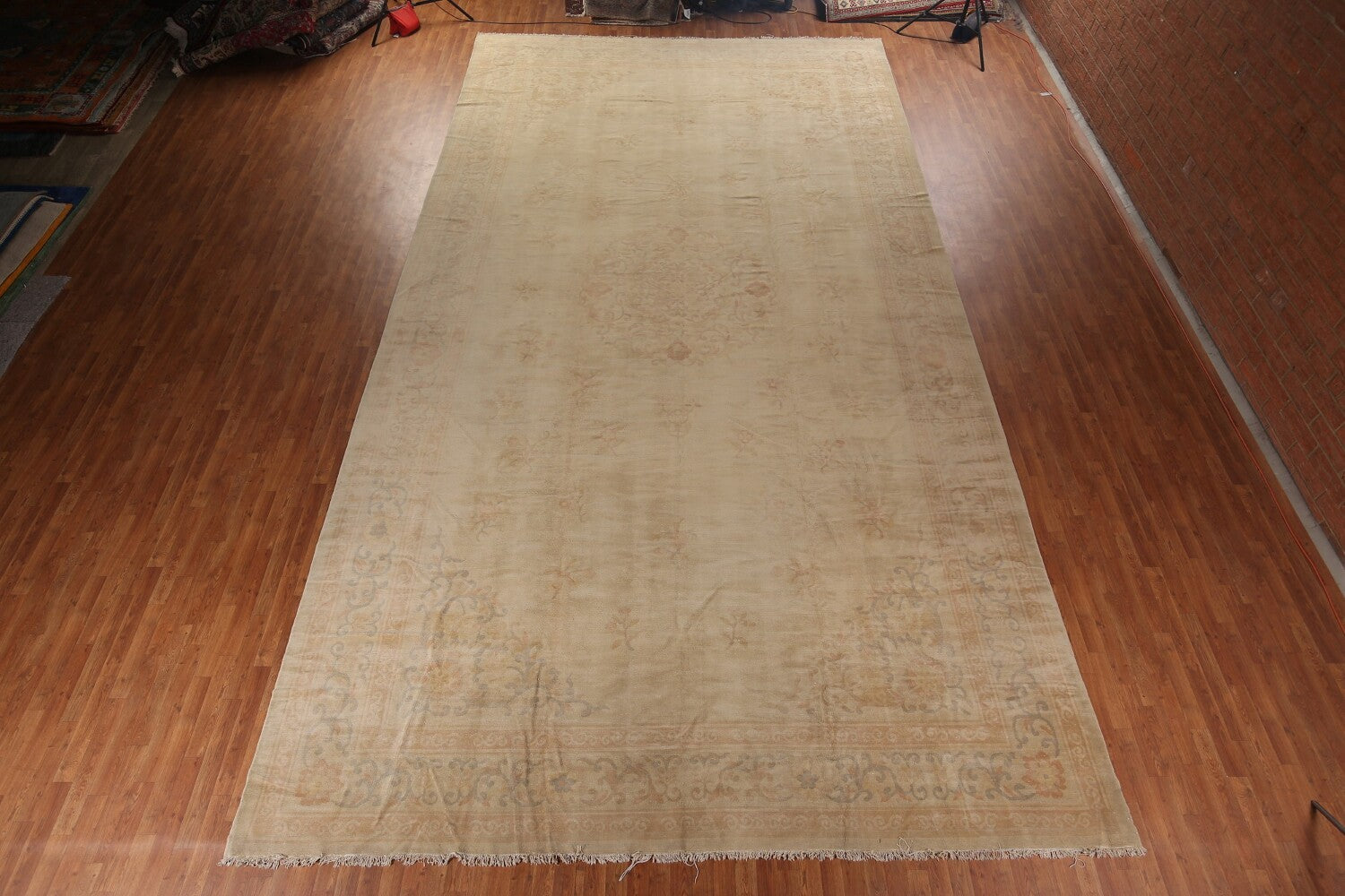 Palace Size Vintage Wool Oushak Turkish Rug 12x22