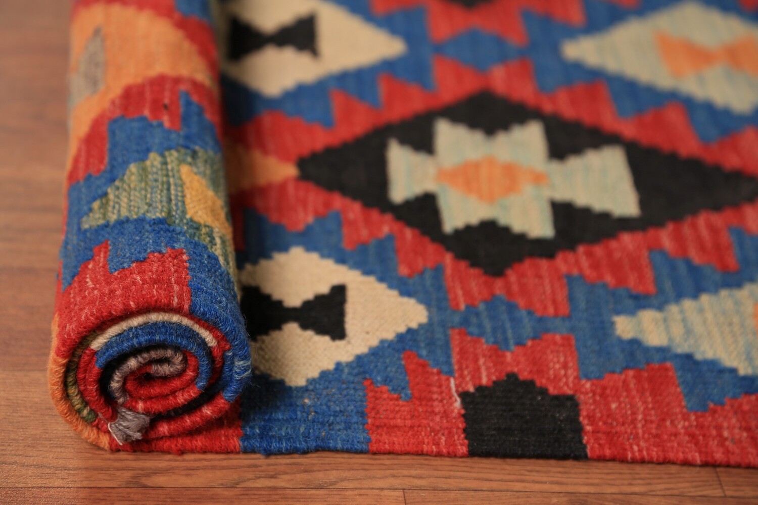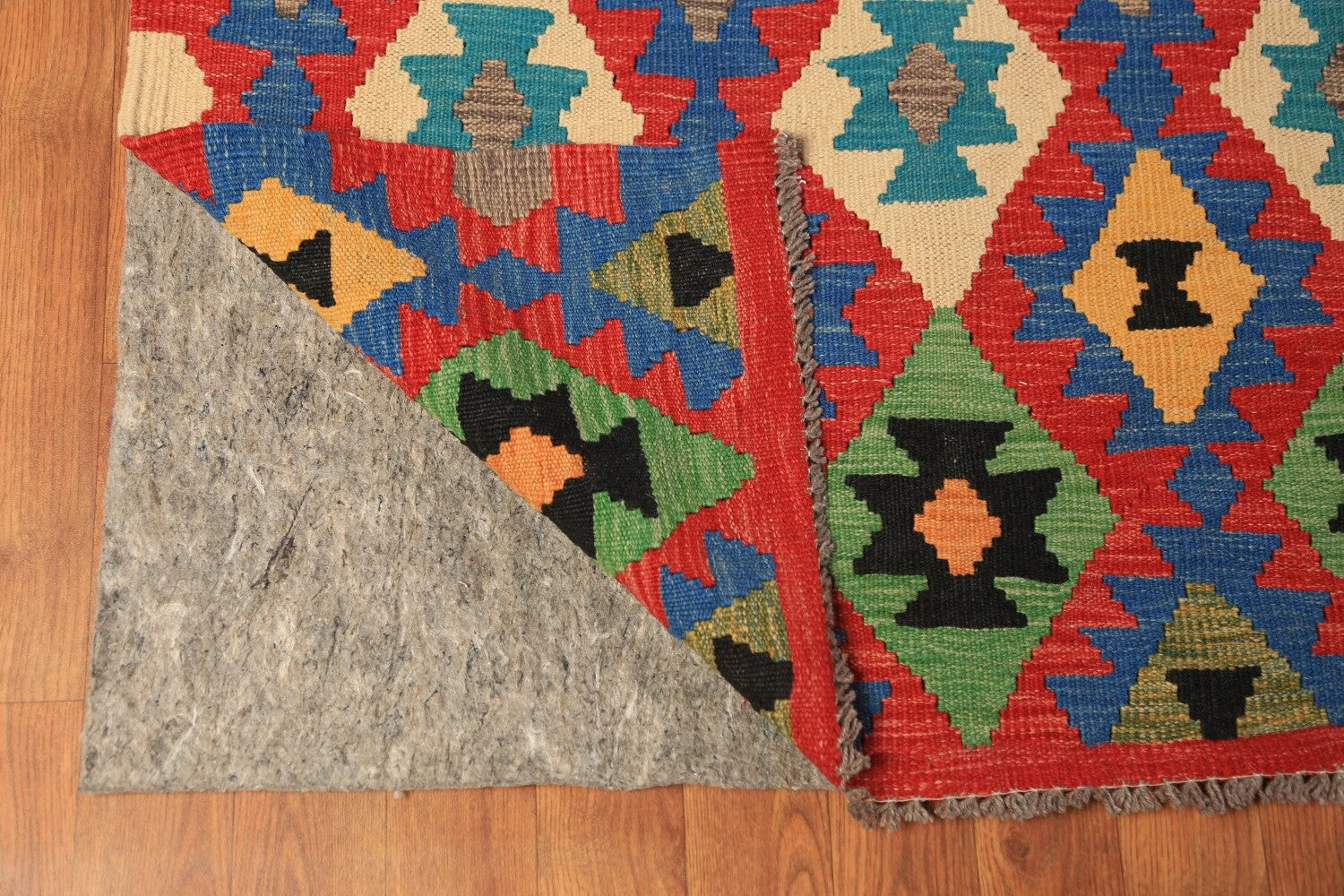 A Beautiful Genuine Pakistan Kilim rug is Hand Woven by skillful weavers in Pakistan with 100% Wool Material. This rug is in New, First Quality condition. dimensions are 16' 6'' X 9' 11'' in foot and 503 X 302 in centimeter. the primary color is Multi-Colored.