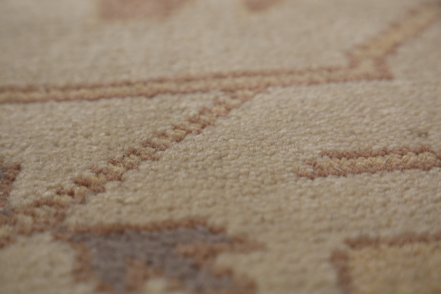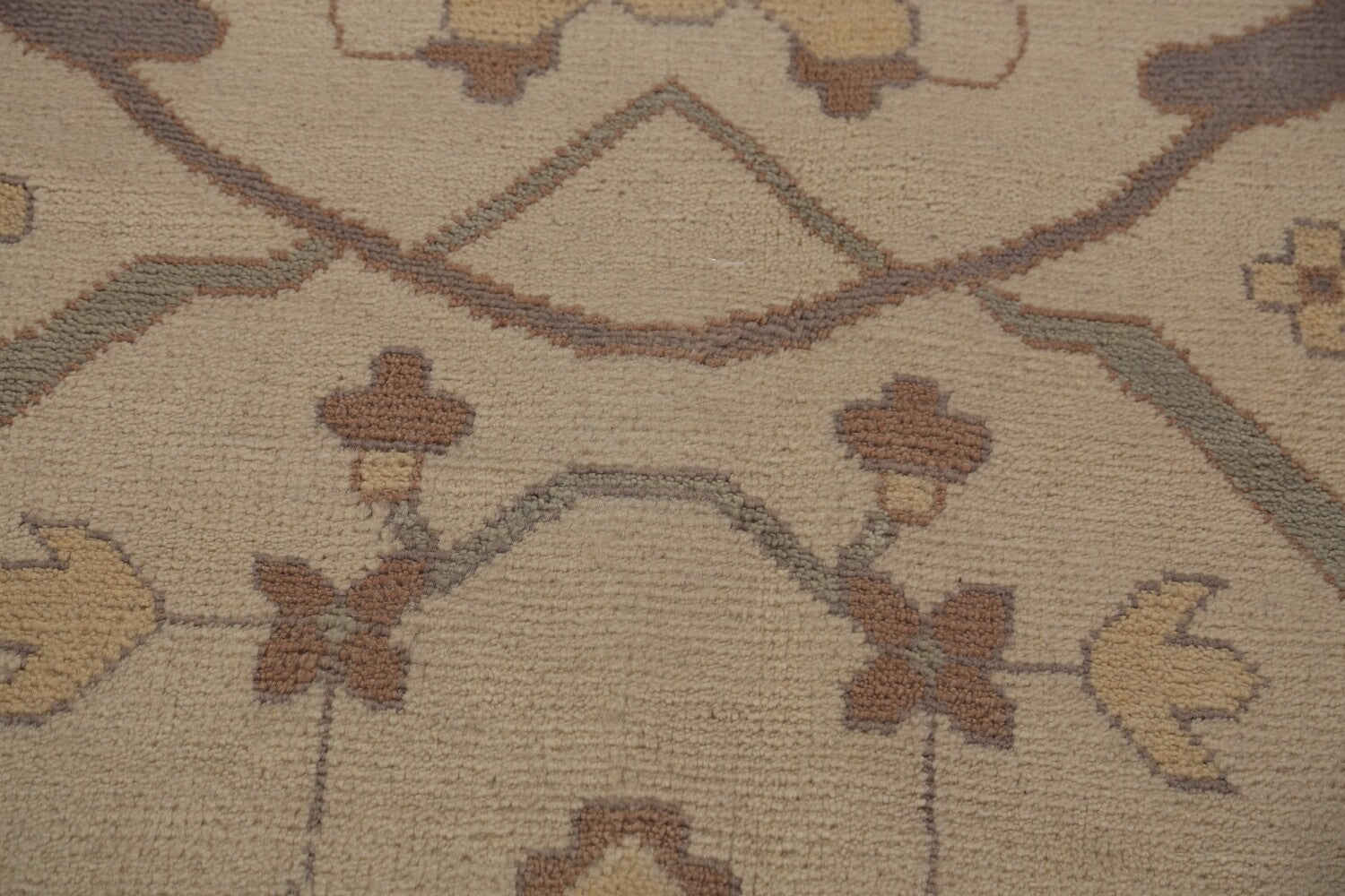 A Beautiful Genuine India Oushak rug is Hand Knotted by skillful weavers in India with 100% Wool Material. This rug is in New, First Quality condition. dimensions are 14' 8'' X 12' 3'' in foot and 447 X 373 in centimeter. the primary color is Beige & Ivories.