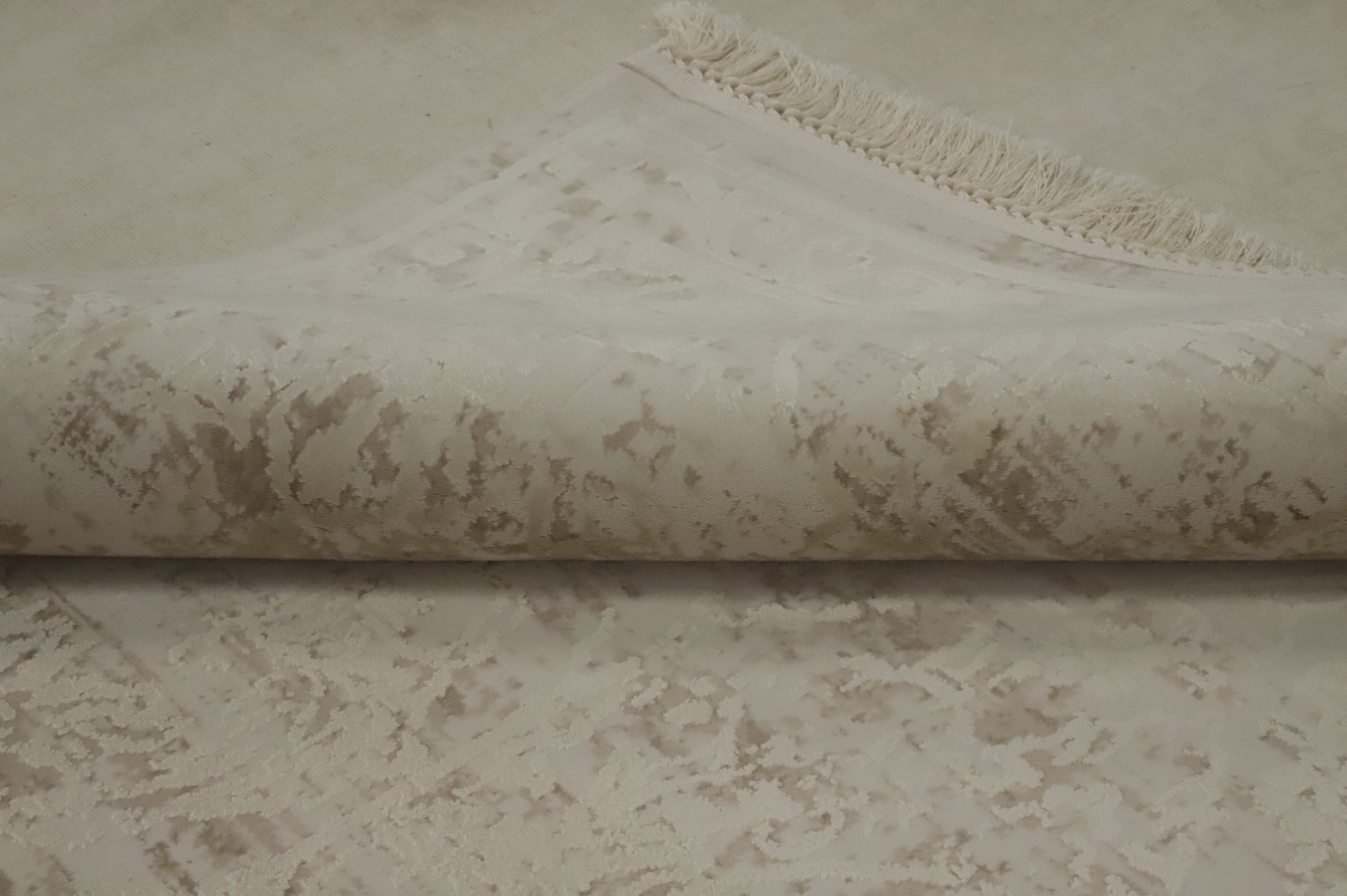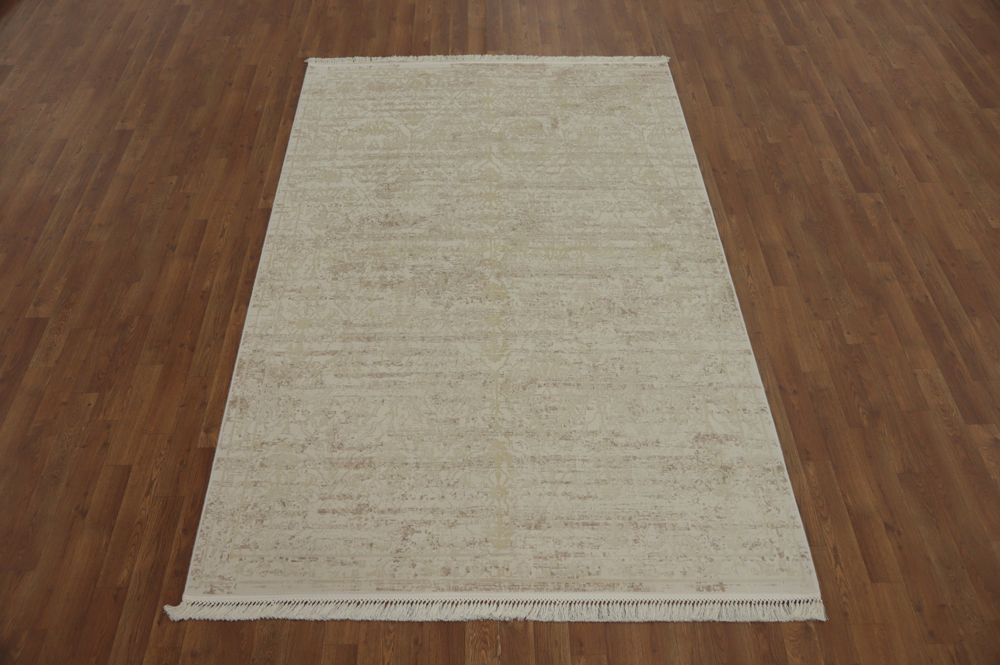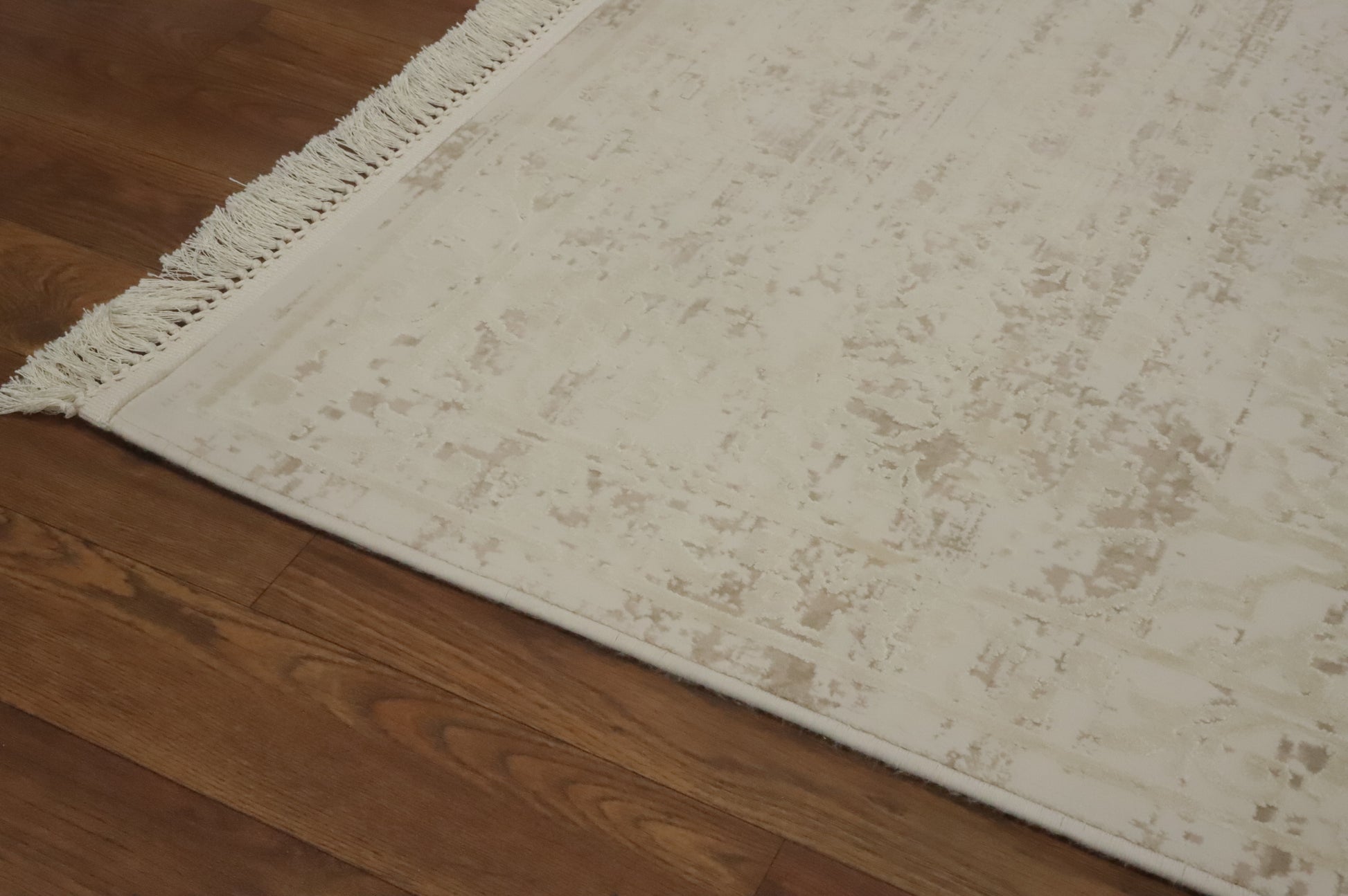 A Beautiful Genuine Turkey Distressed rug is Machine Made by skillful weavers in Turkey with Polyester Material. This rug is in New, First Quality condition. dimensions are 7' 5'' X 5' 2'' in foot and 226 X 157 in centimeter. the primary color is Beige & Ivories.