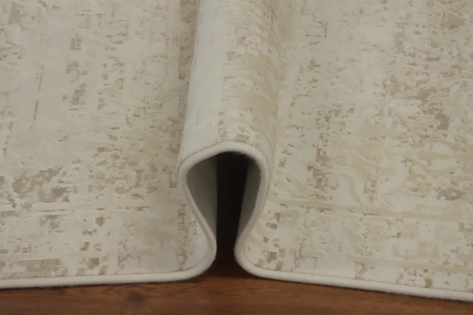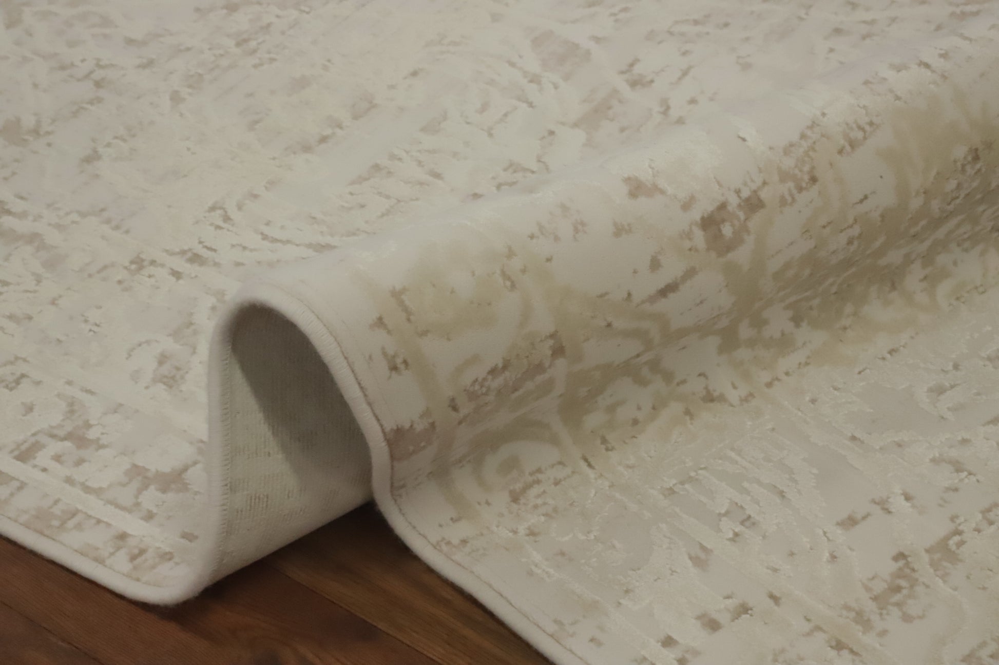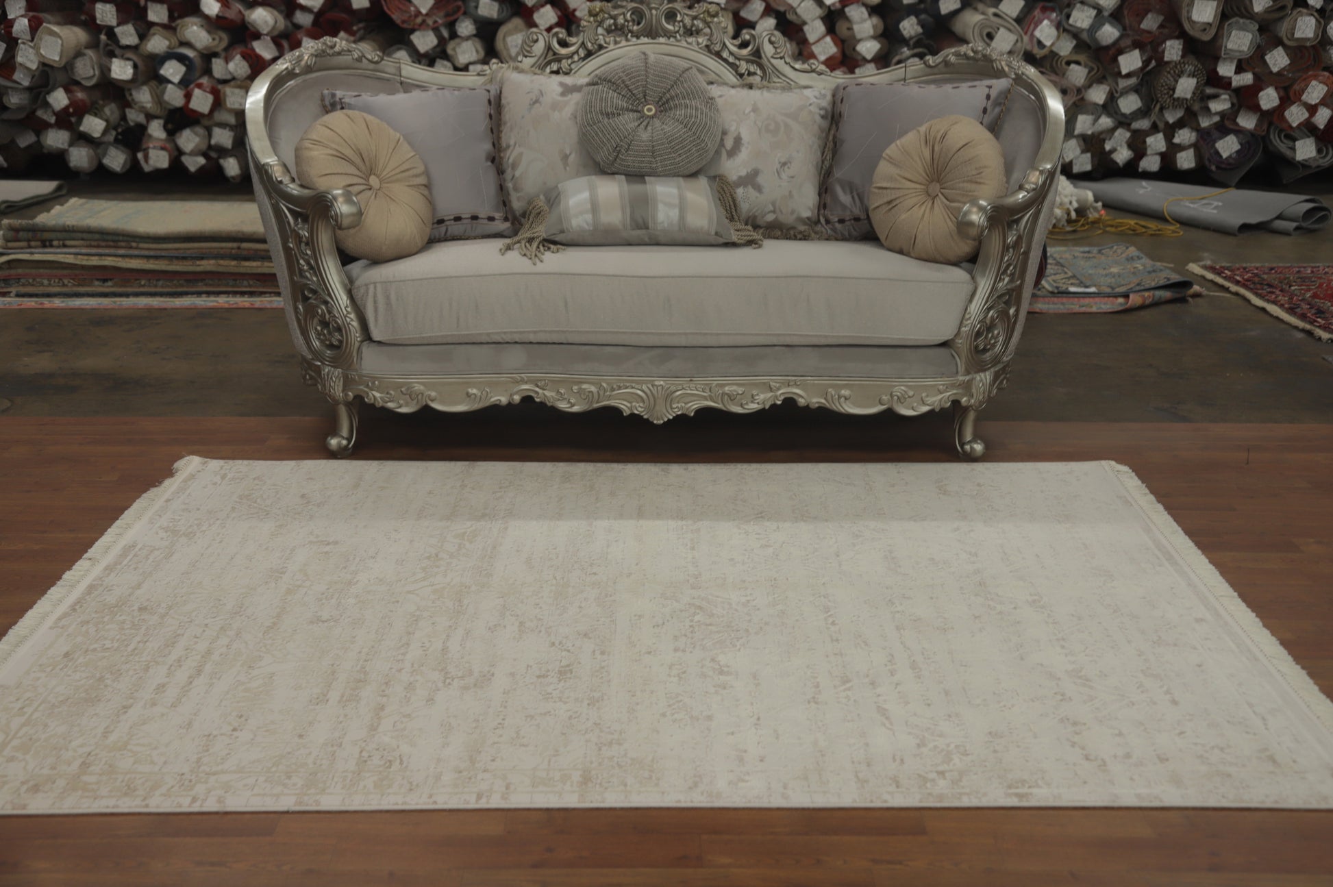 A Beautiful Genuine Turkey Distressed rug is Machine Made by skillful weavers in Turkey with Polyester Material. This rug is in New, First Quality condition. dimensions are 7' 5'' X 5' 2'' in foot and 226 X 157 in centimeter. the primary color is Beige & Ivories.