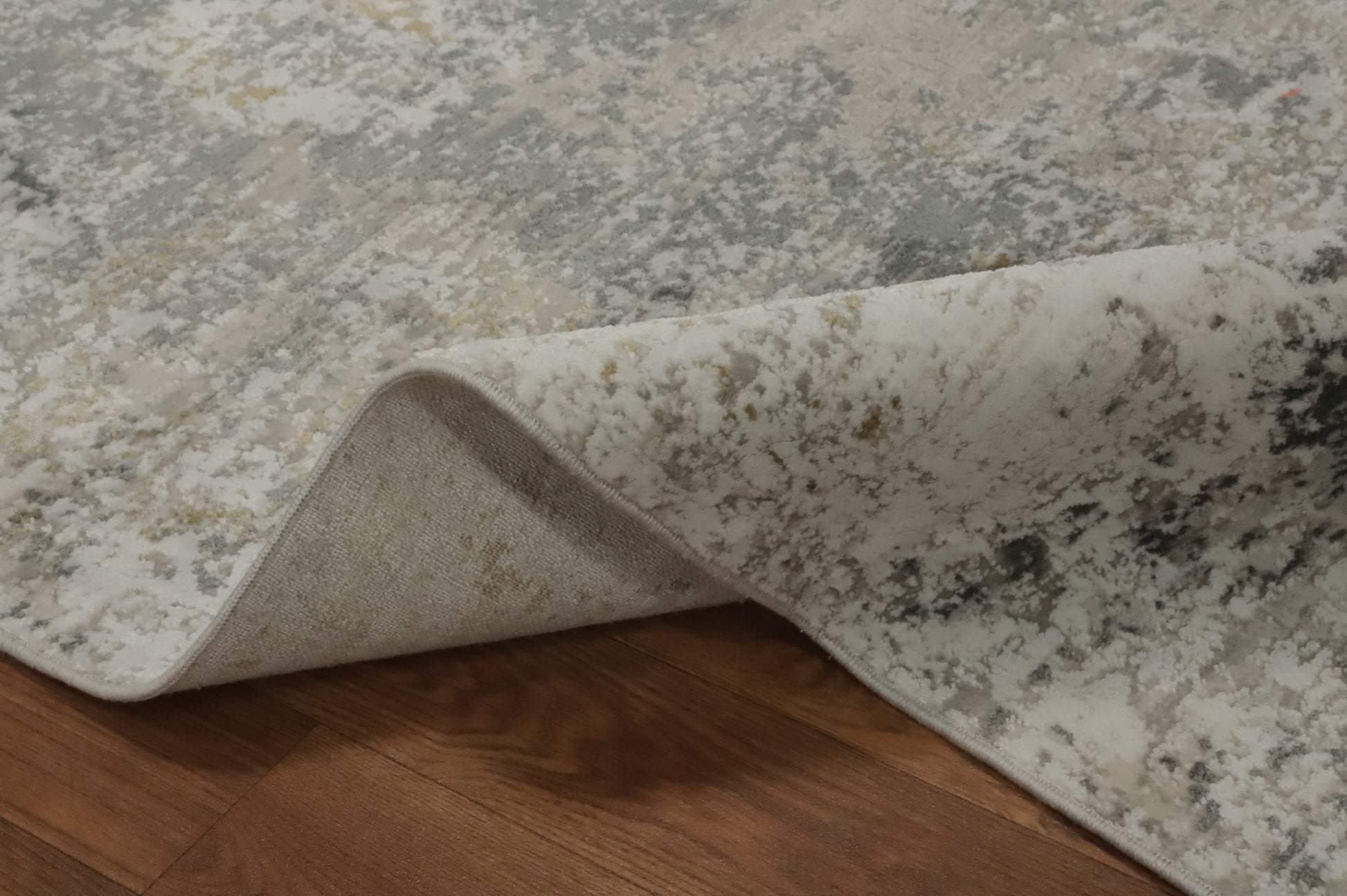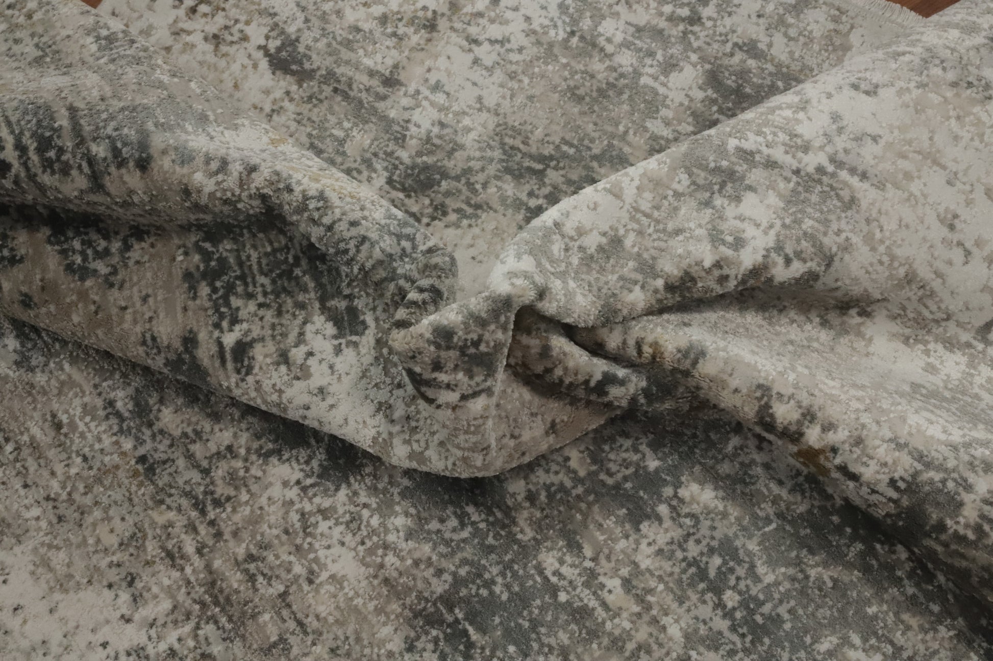 A Beautiful Genuine Turkey Abstract rug is Machine Made by skillful weavers in Turkey with Polyester Material. This rug is in New, First Quality condition. dimensions are 7' 5'' X 5' 2'' in foot and  226 X 157 in centimeter. the primary color is Greys & Charcoal.