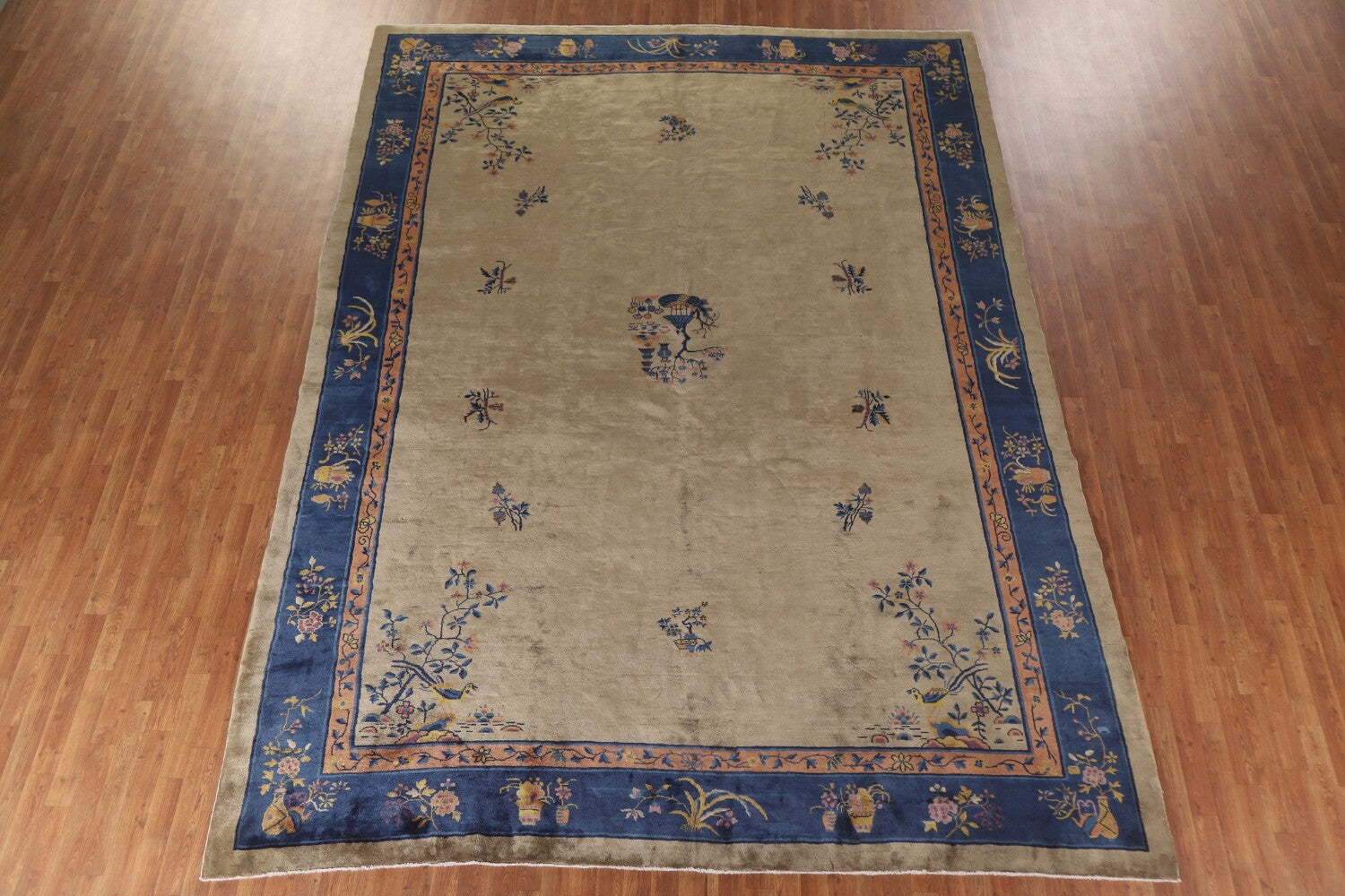 A Beautiful Genuine China Art Deco rug is Hand Knotted by skillful weavers in China with 100% Wool Material. This rug is in Very Good condition. dimensions are 13' 2'' X 9' 9'' in foot and 401 X 297 in centimeter. the primary color is Brown.