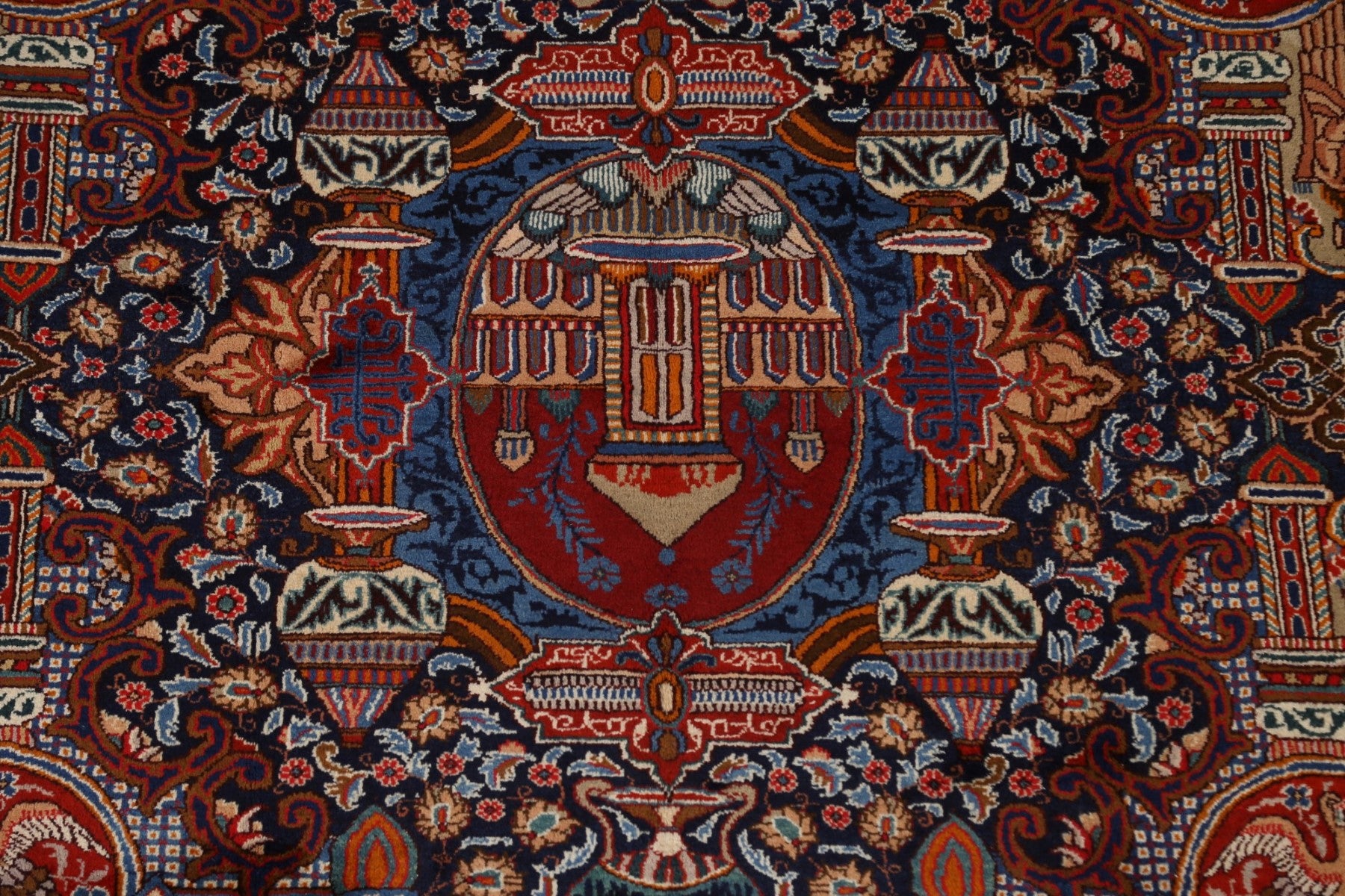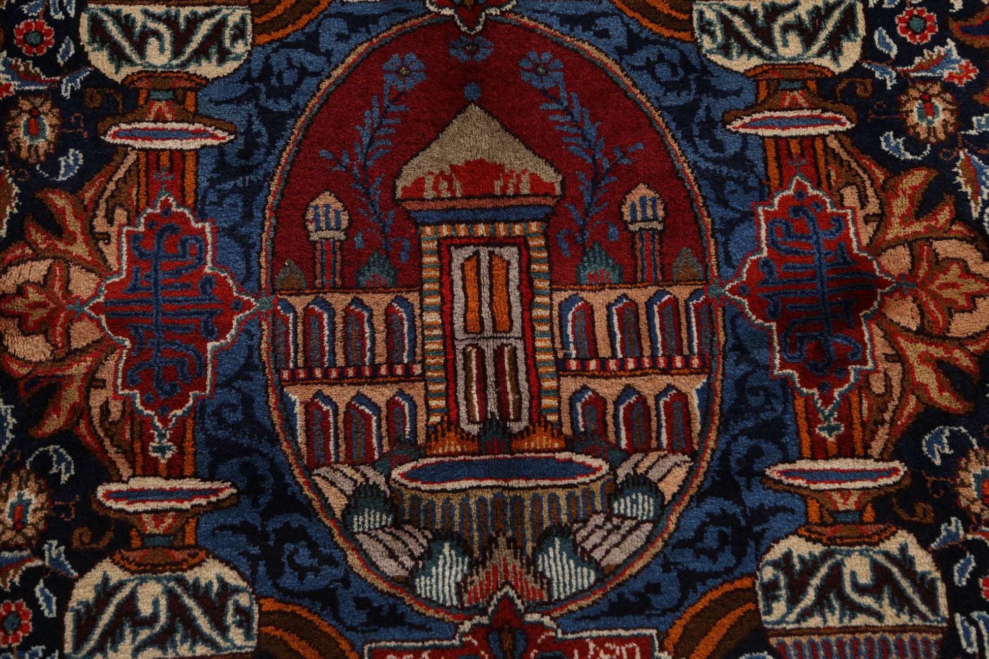 A Beautiful Genuine Persia ( Persia ) Kashmar rug is Hand Knotted by skillful weavers in Persia ( Persia ) with 100% Wool Material. This rug is in Excellent condition. dimensions are 9' 6'' X 6' 7'' in foot and 290 X 201 in centimeter. the primary color is Navy Blue & Blues.