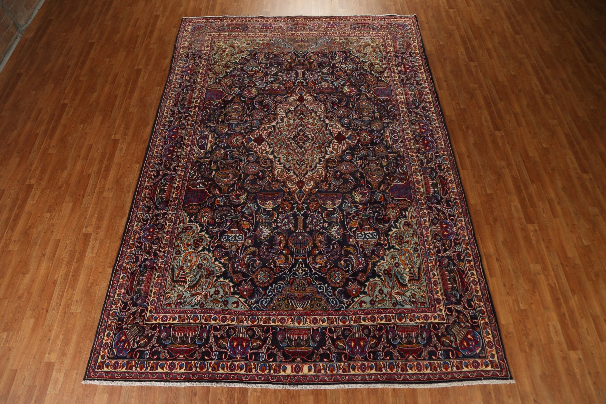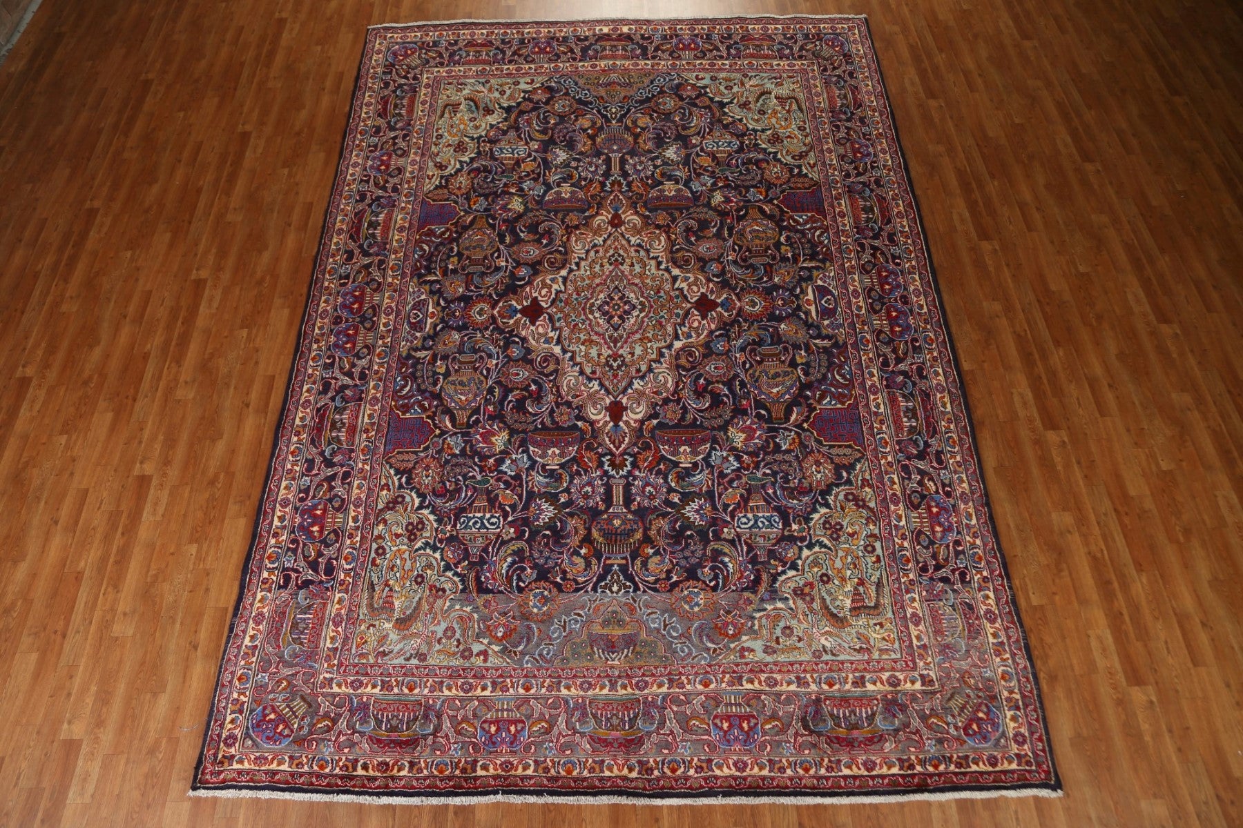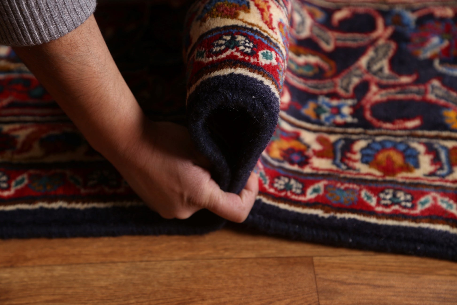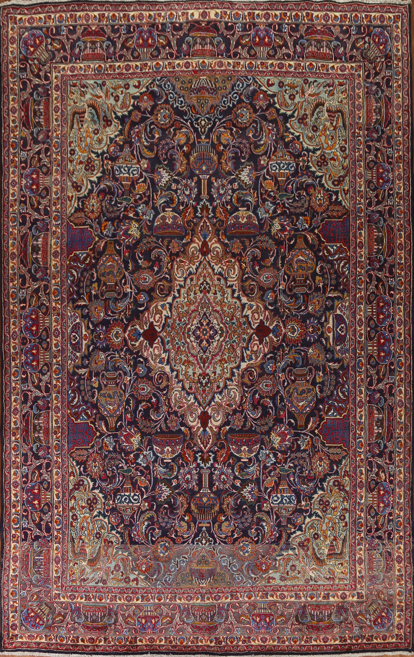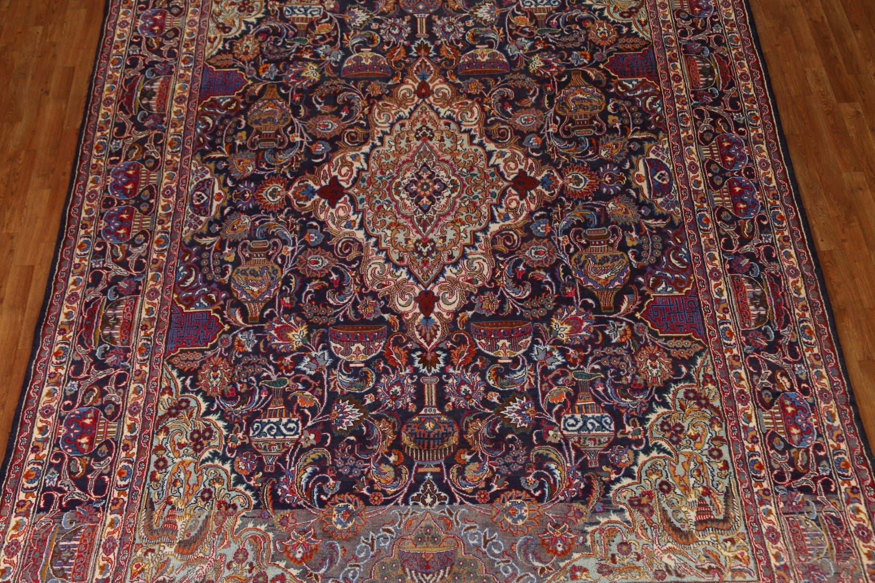 A Beautiful Genuine Persia ( Persia ) Kashmar rug is Hand Knotted by skillful weavers in Persia ( Persia ) with 100% Wool Material. This rug is in Very Good (Abrash) condition. dimensions are 13' 3'' X 9' 2'' in foot and 404 X 279 in centimeter. the primary color is Navy Blue & Blues.