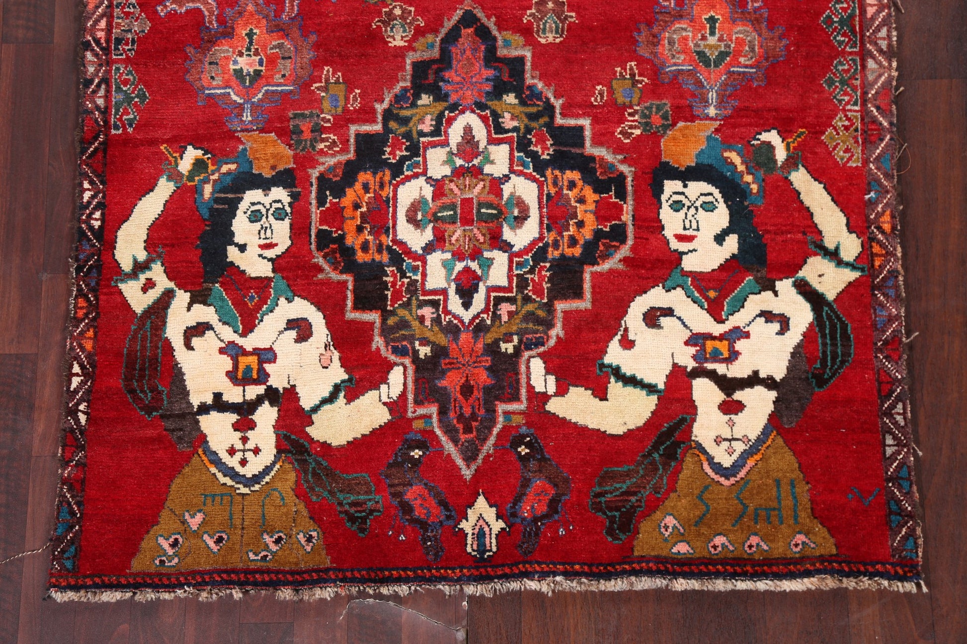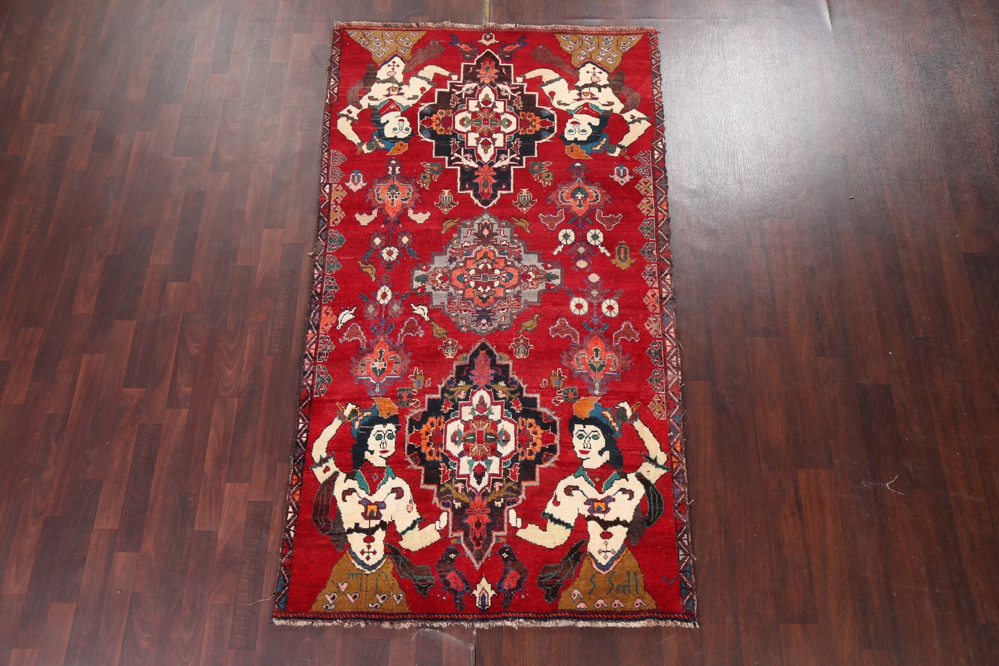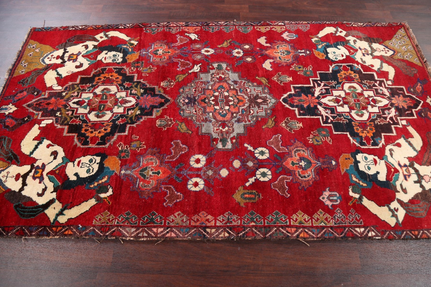 Pictorial Red Vintage Qashqai Persian Area Rug 4x8