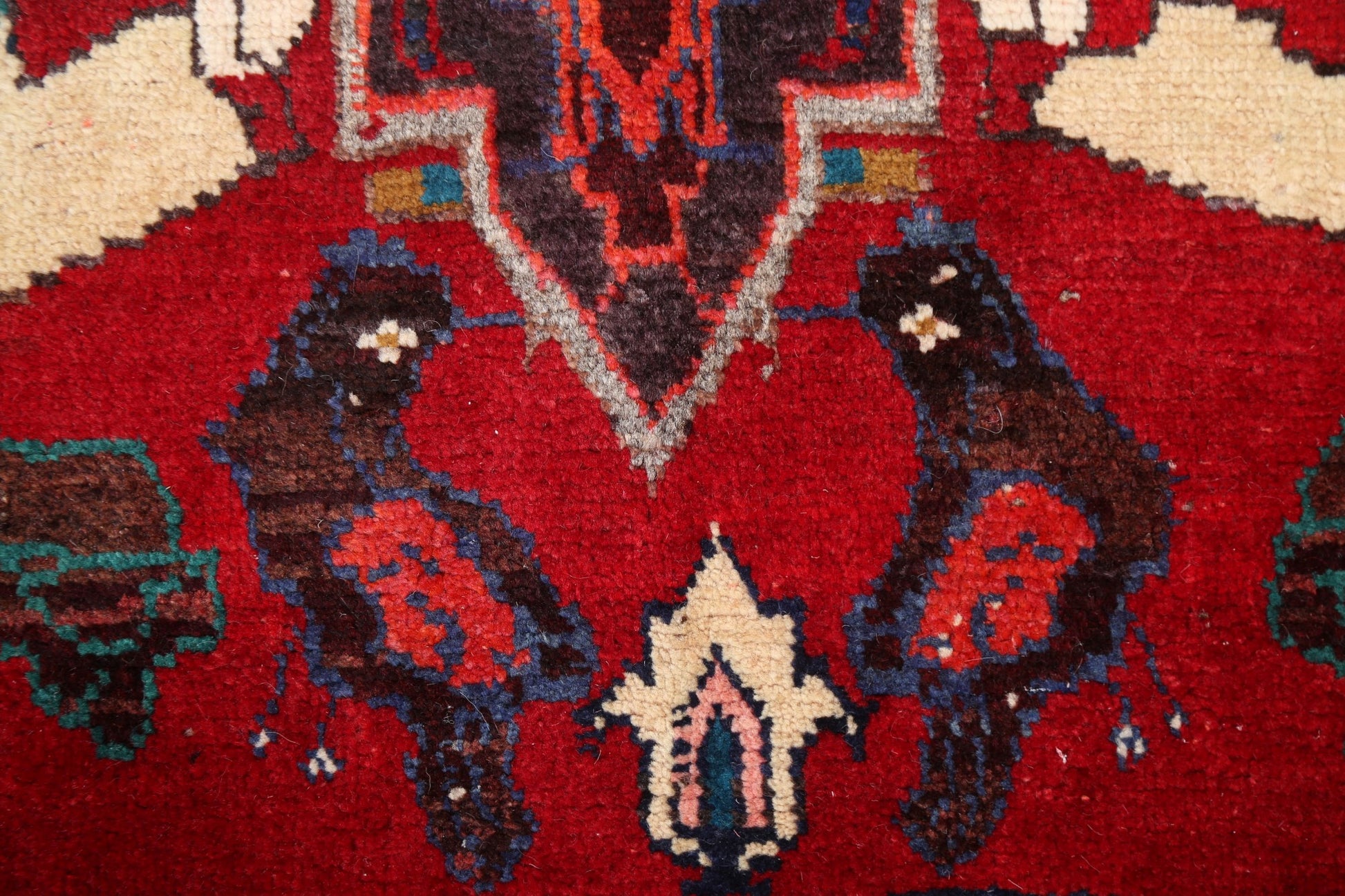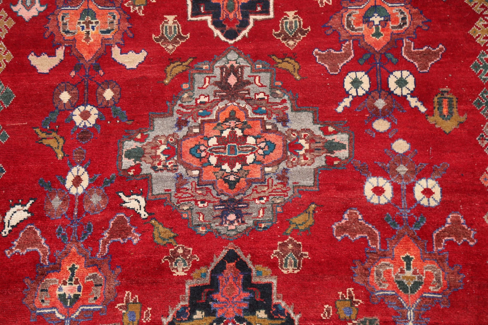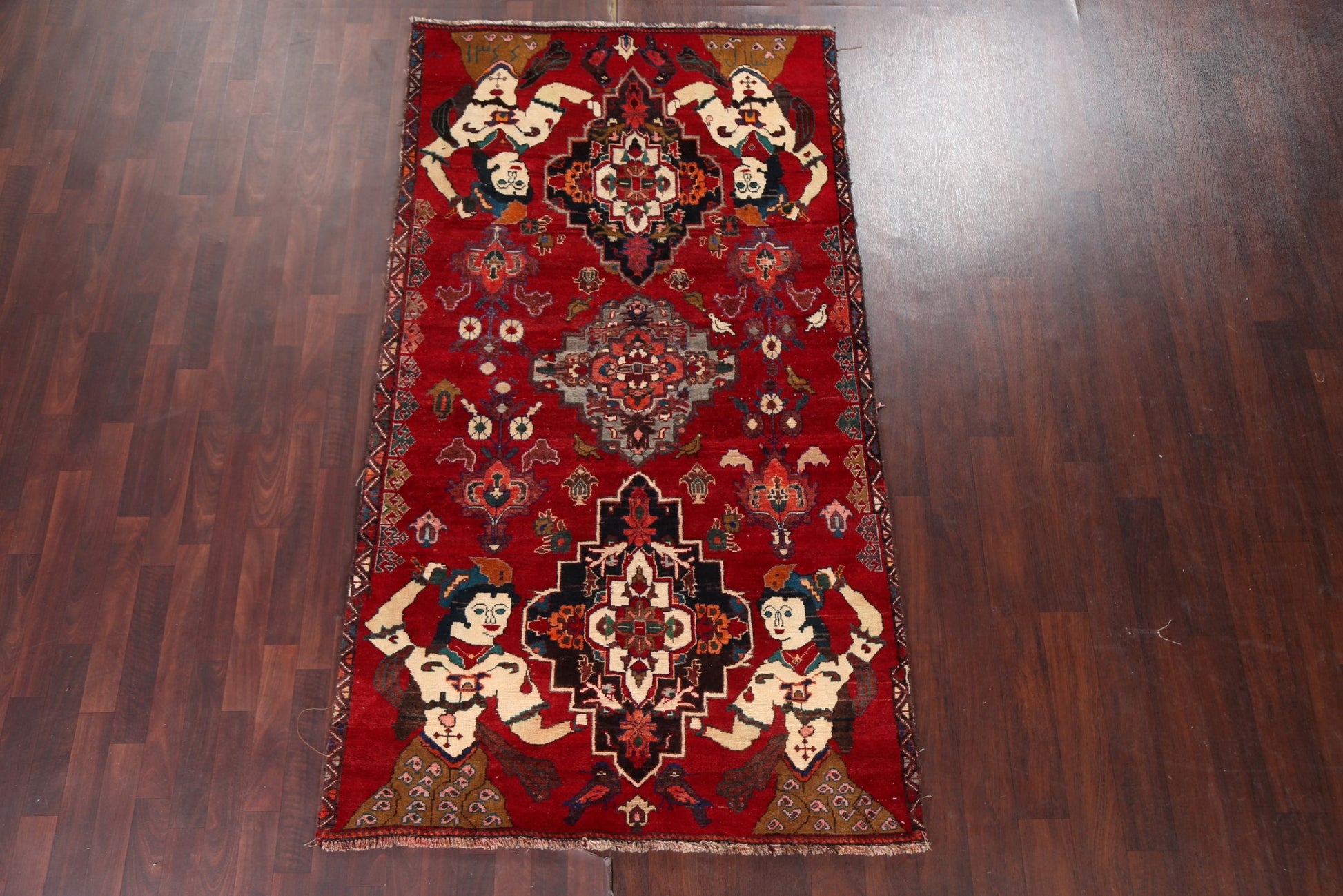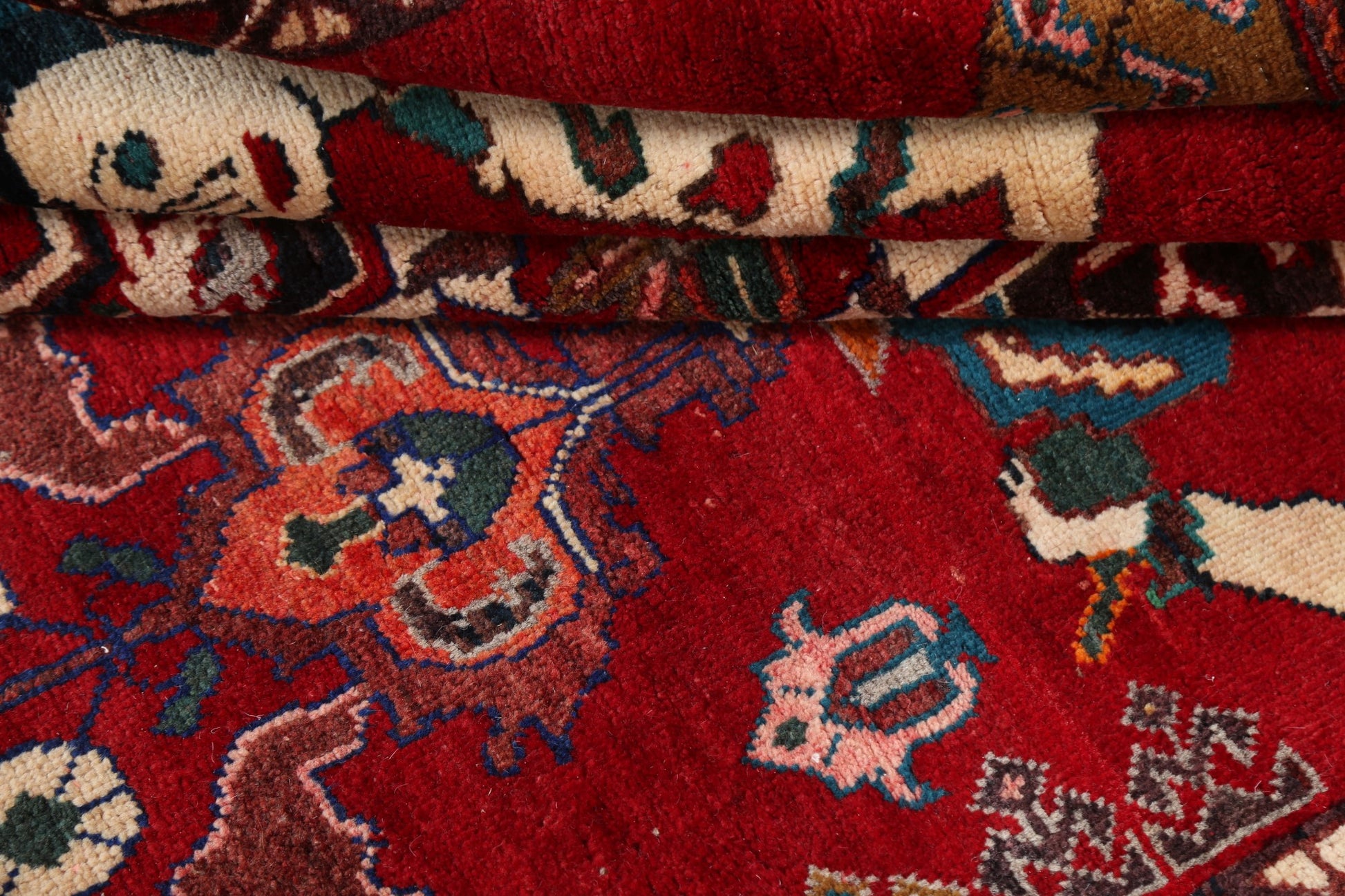 Pictorial Red Vintage Qashqai Persian Area Rug 4x8