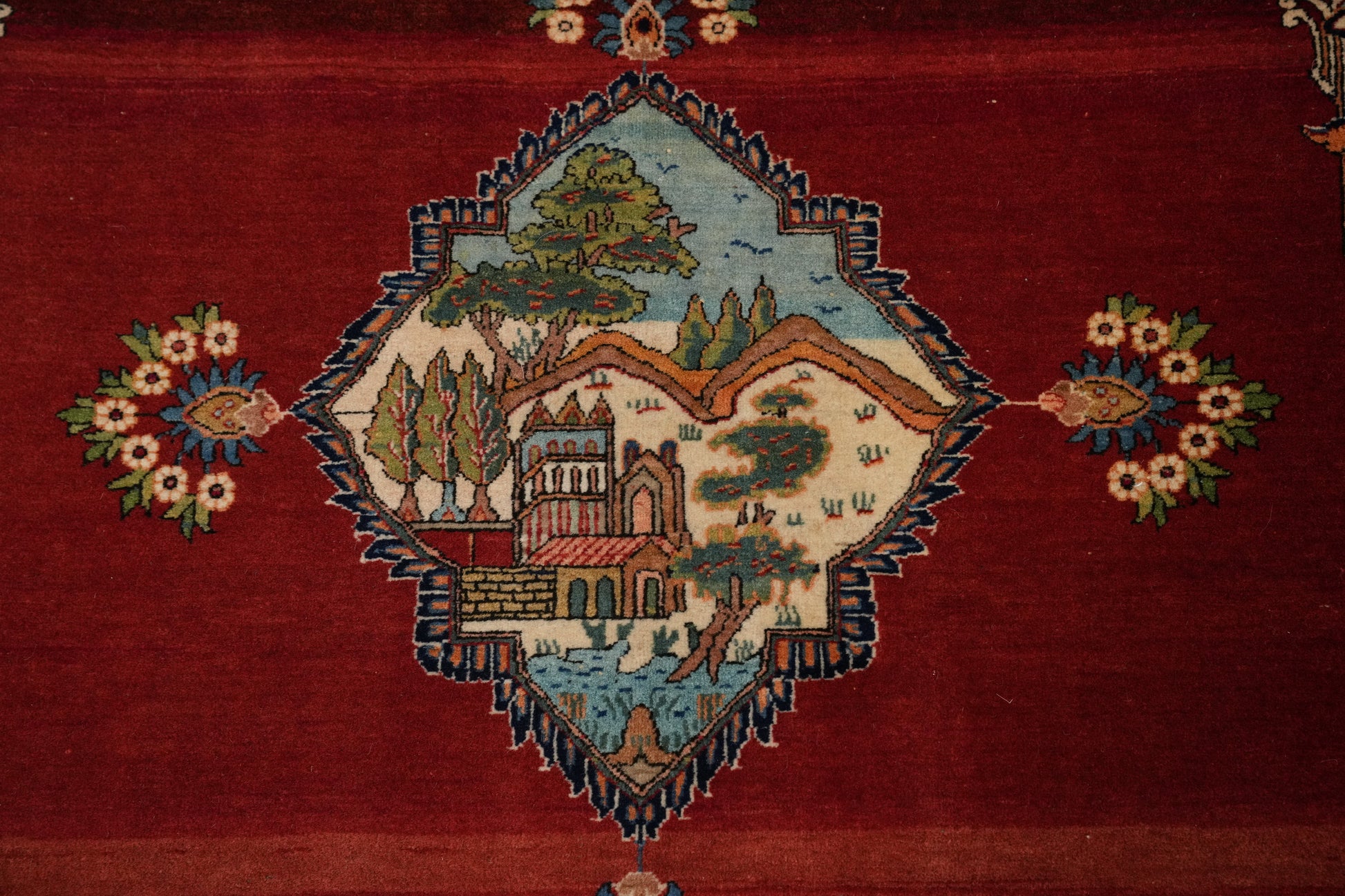 Pictorial Vegetable Dye Kashan Persian Rug 4x7